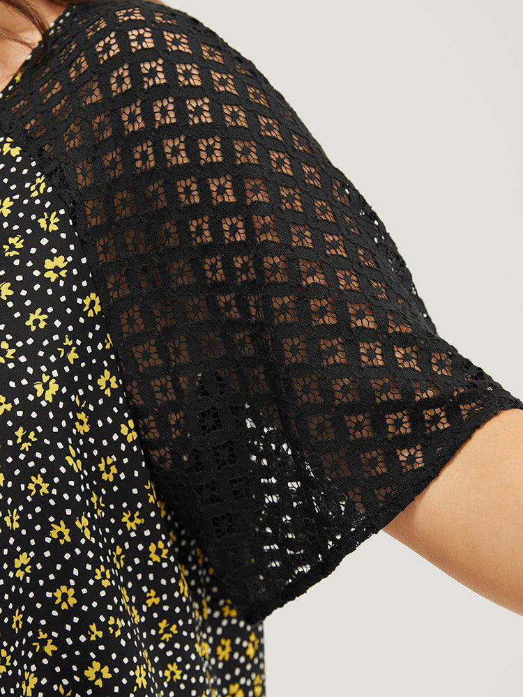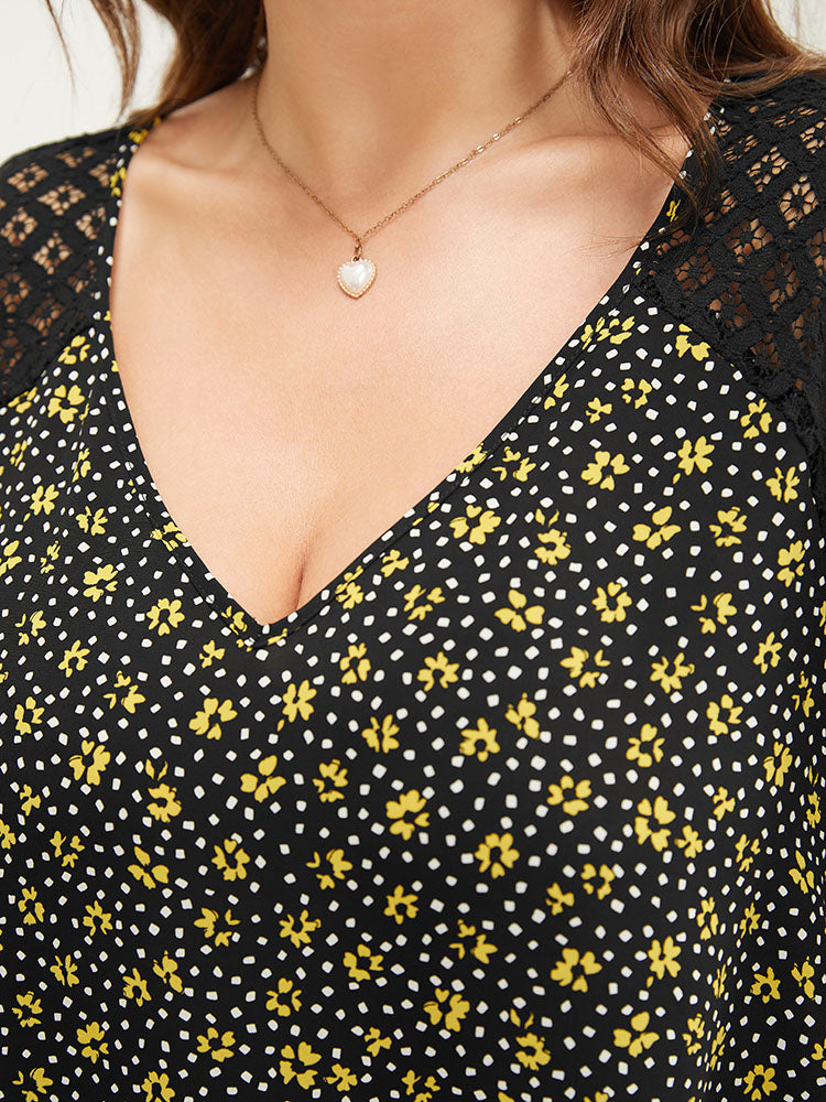 Ditsy Floral Lace Raglan Sleeve Blouse