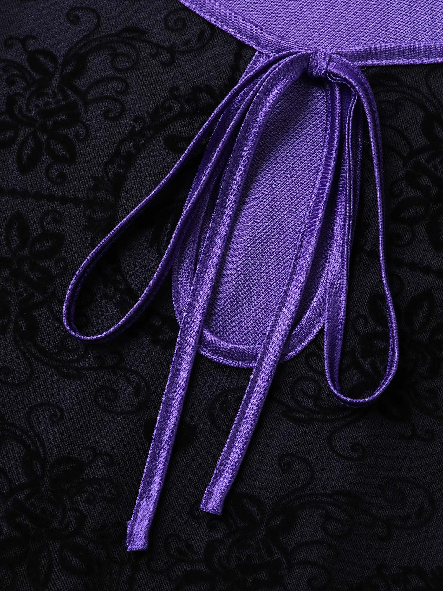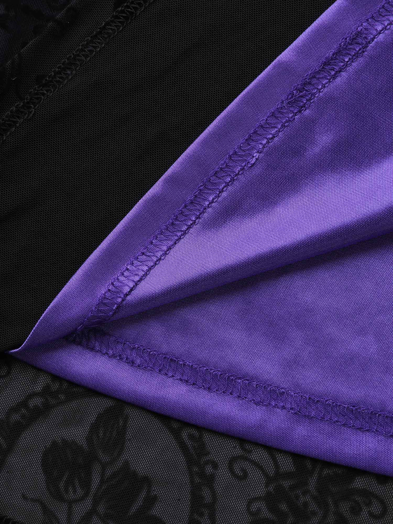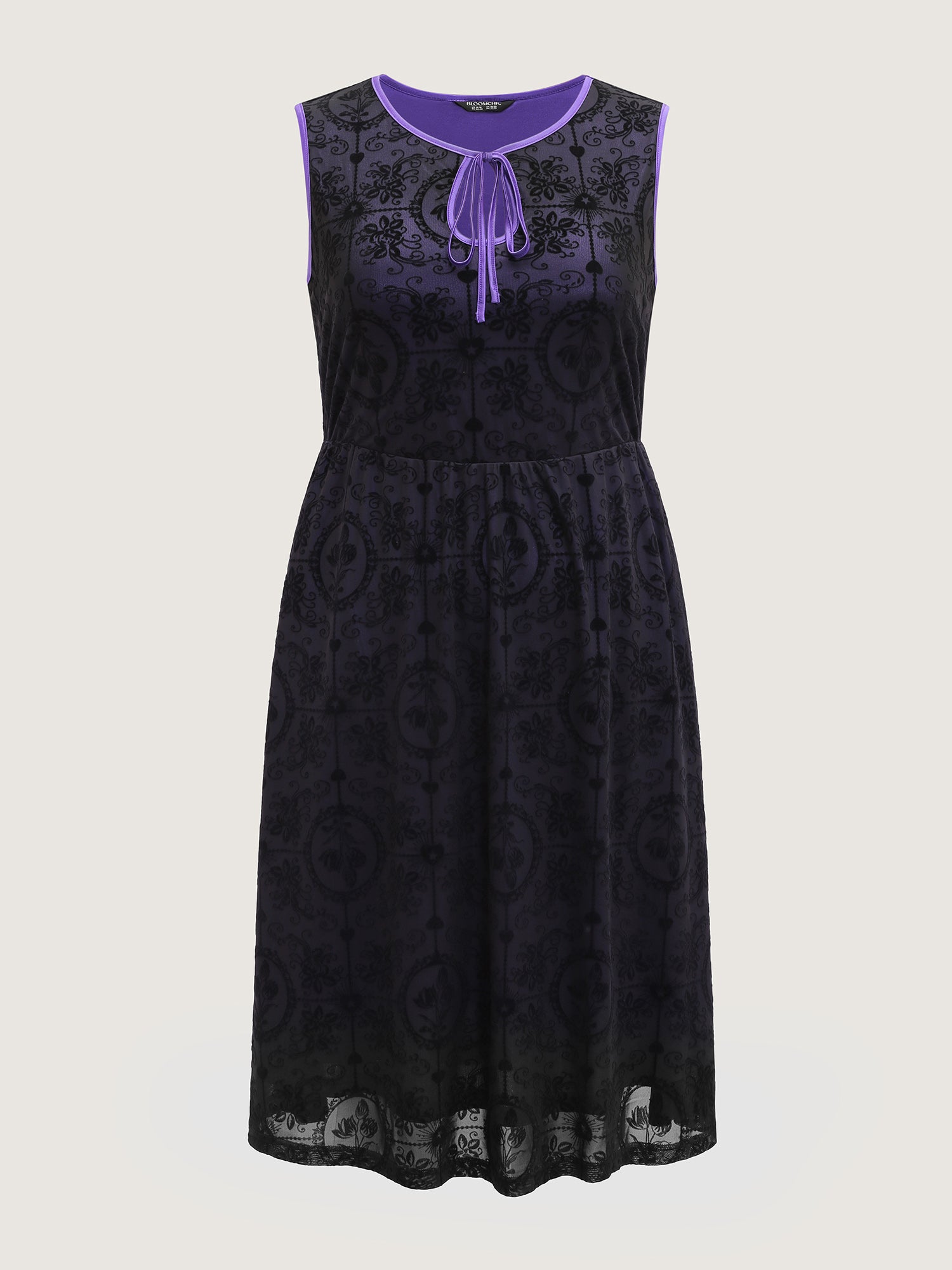 Elastic Flocked Mesh Contrast Lined Midi Dress