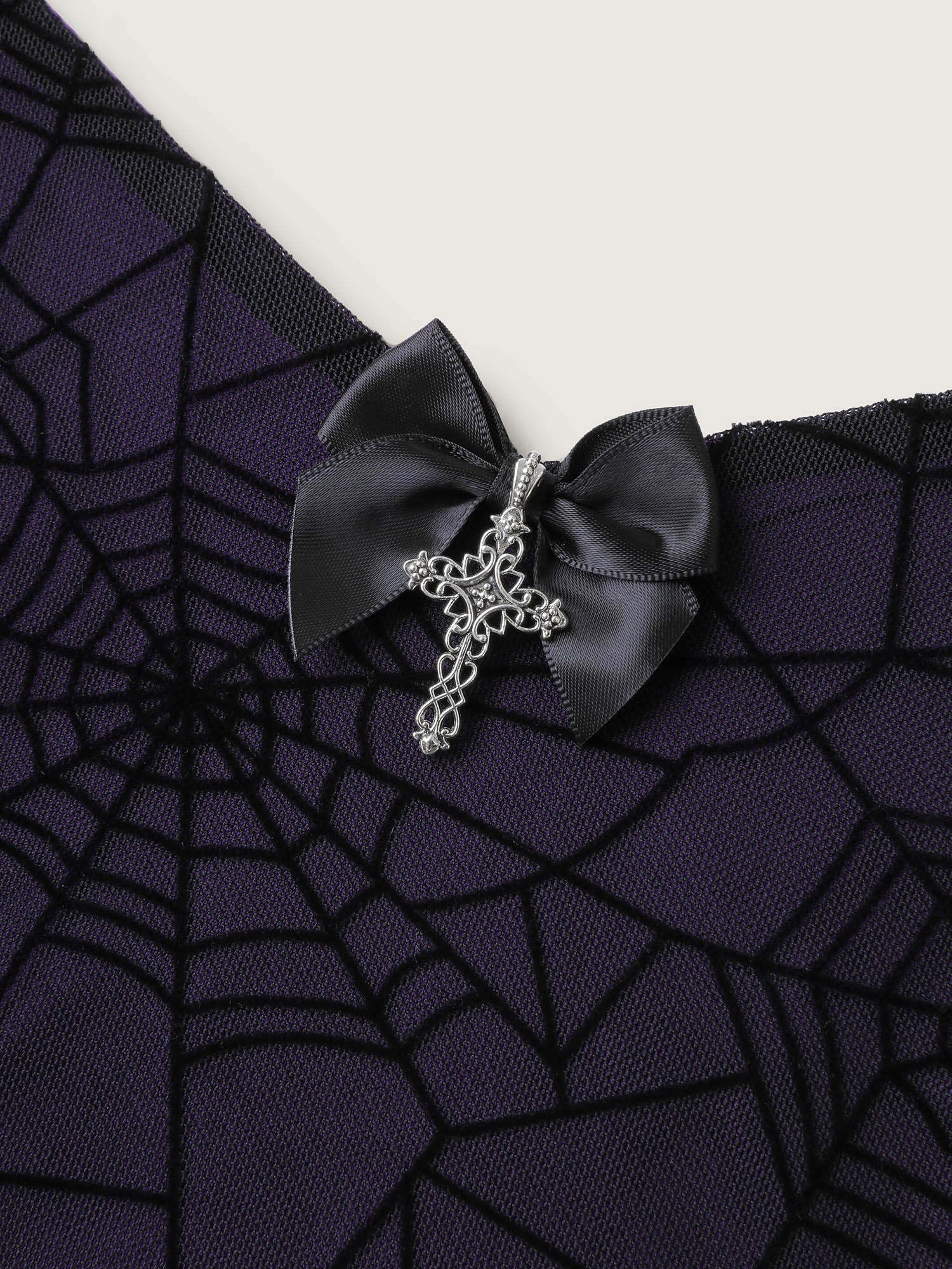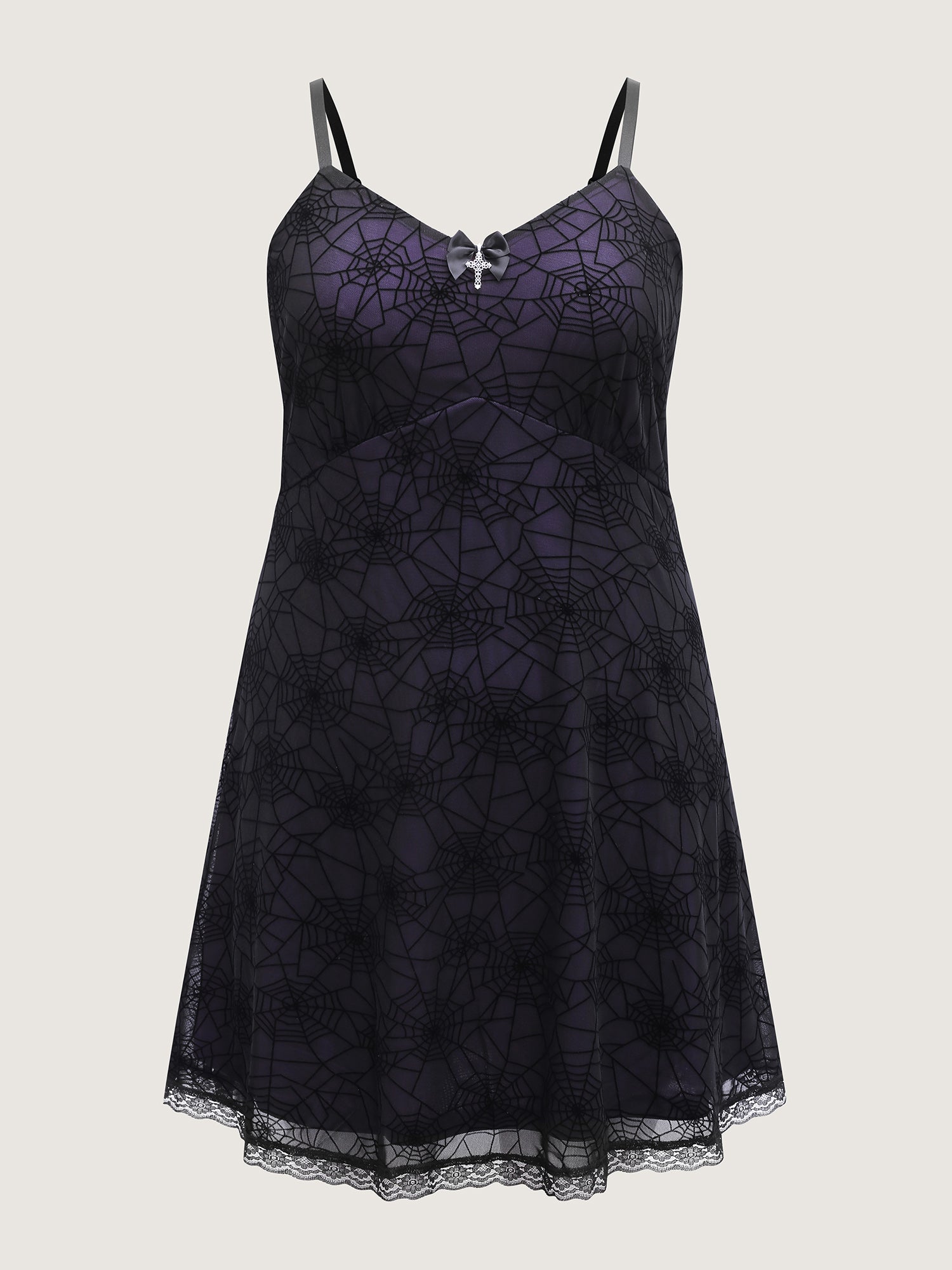 Elastic Flocked Mesh Spiderweb Sleep Dress