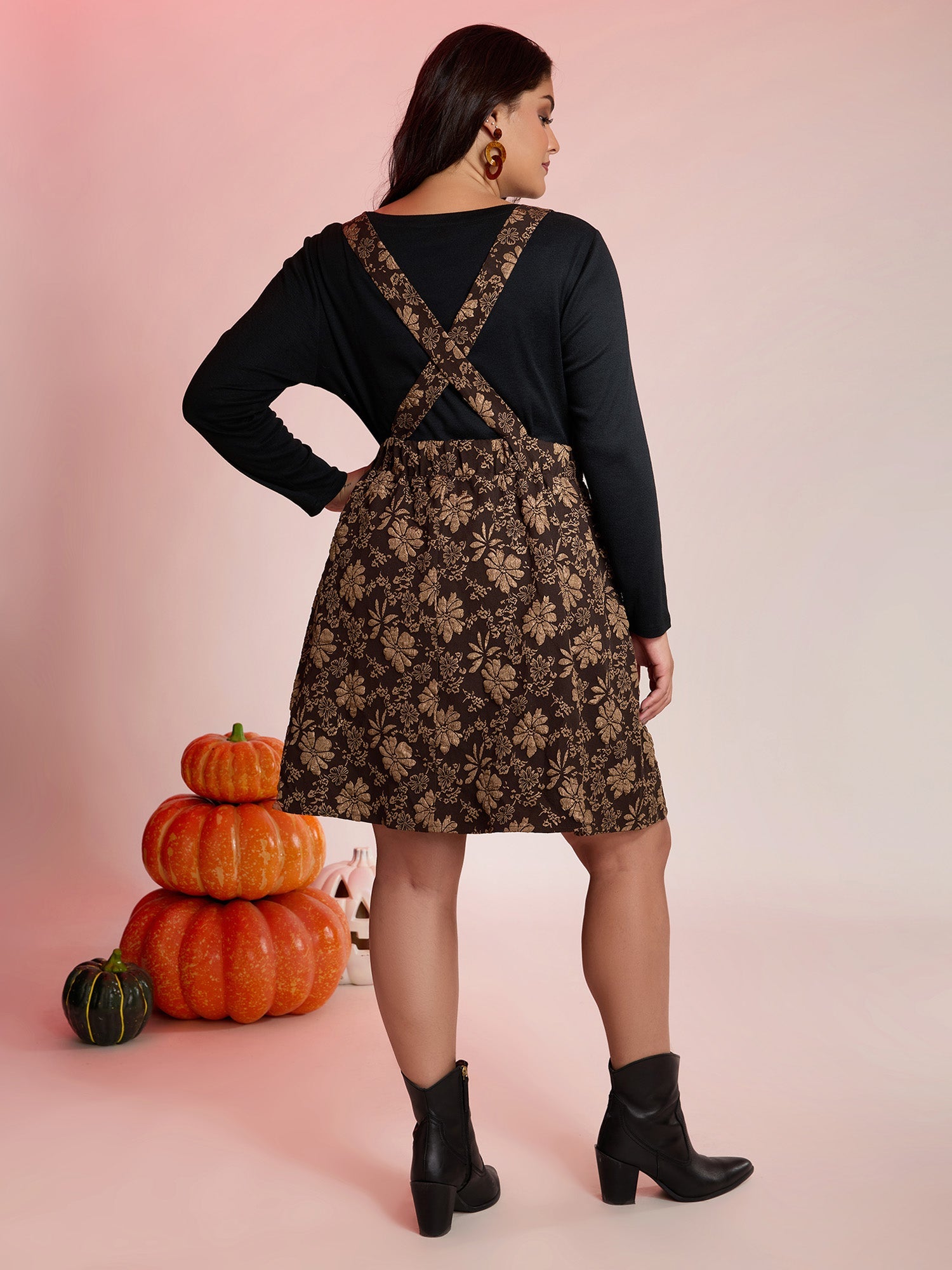 Fall Floral Textured Pockets Midi Dress