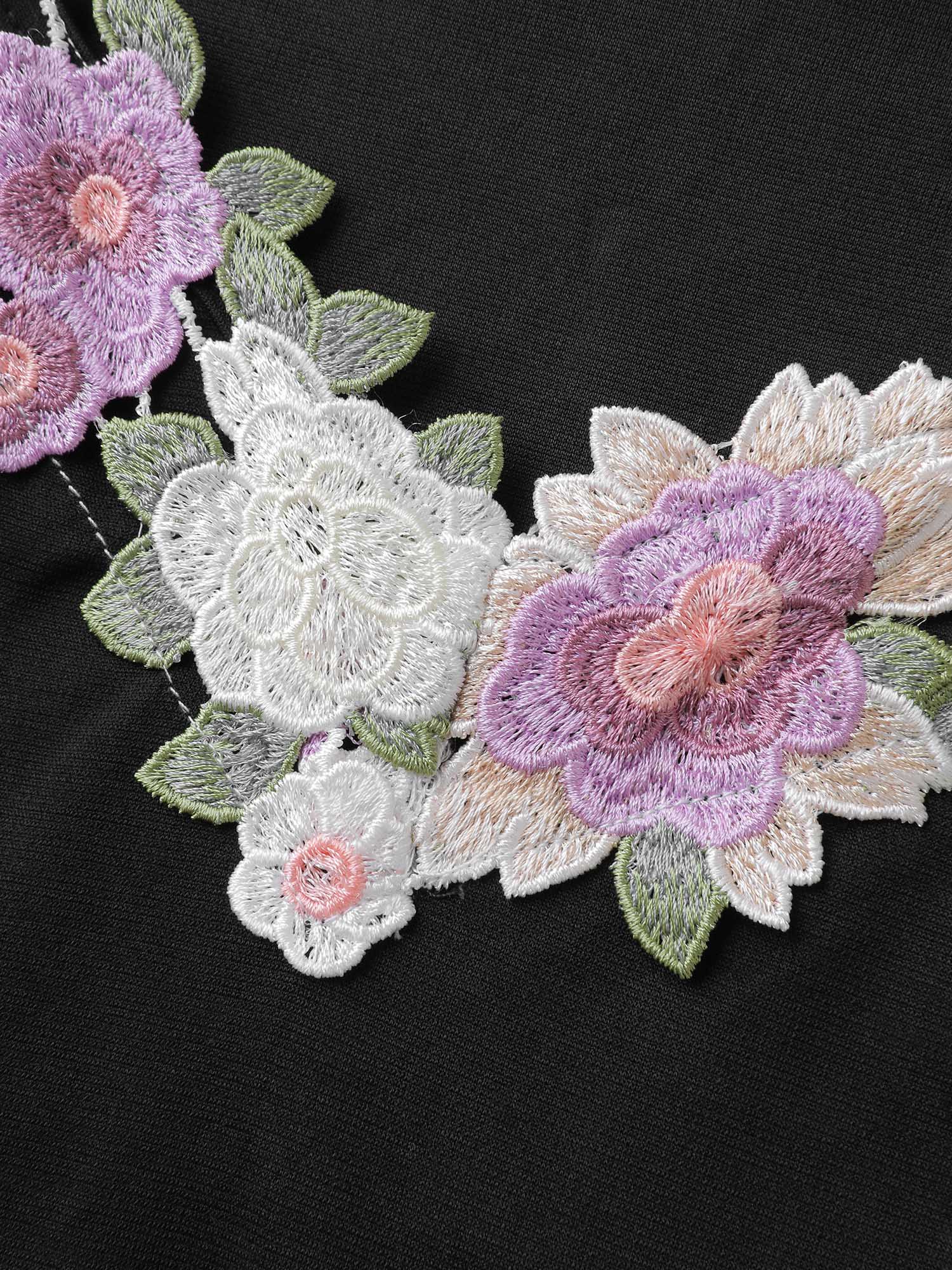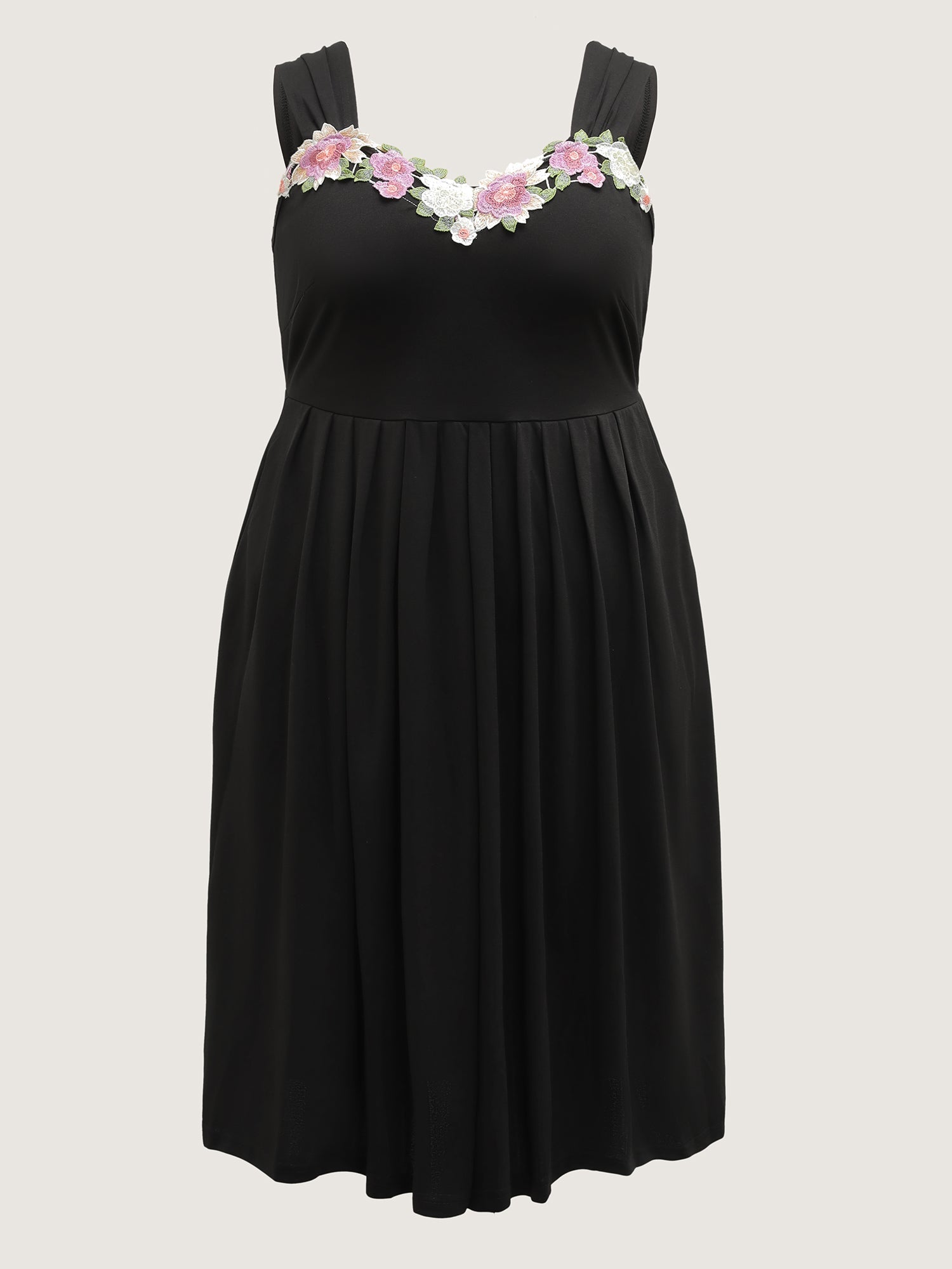 Floral Embroidered Neckline Lace Trim Midi Dress