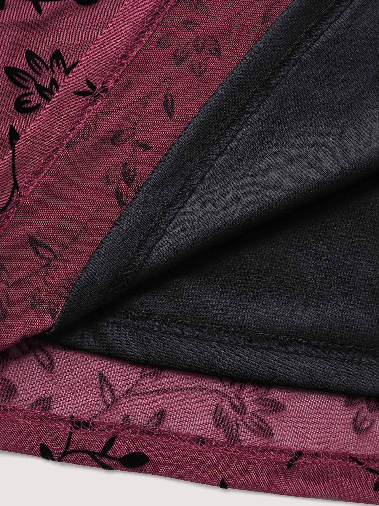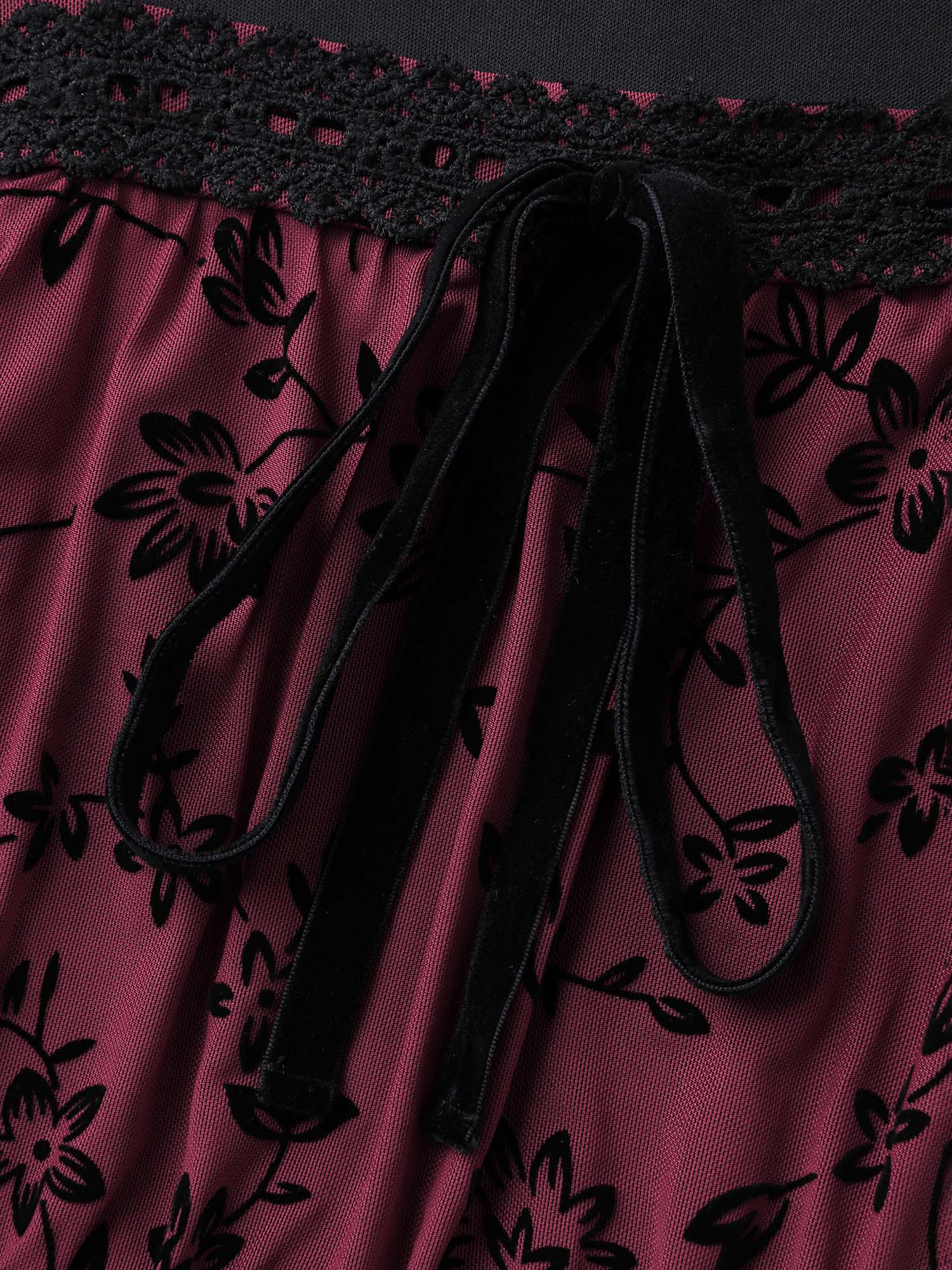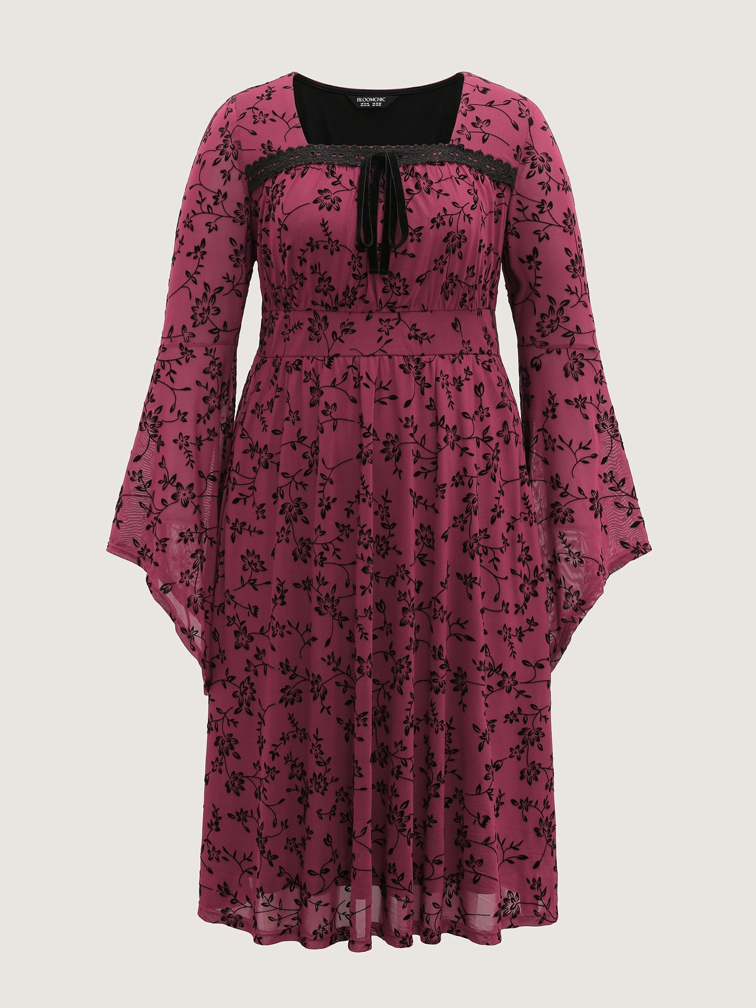 Floral Flocked Lace Cinched-Waist Midi Dress