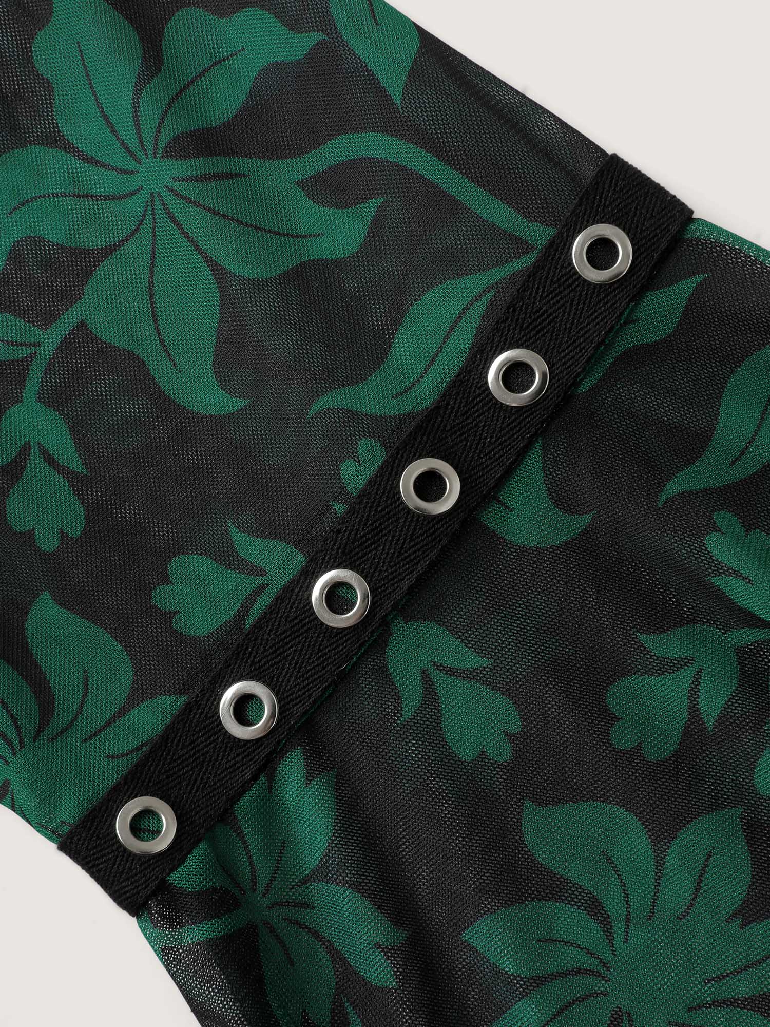 Floral Print Adjustable Bodice Mesh Top