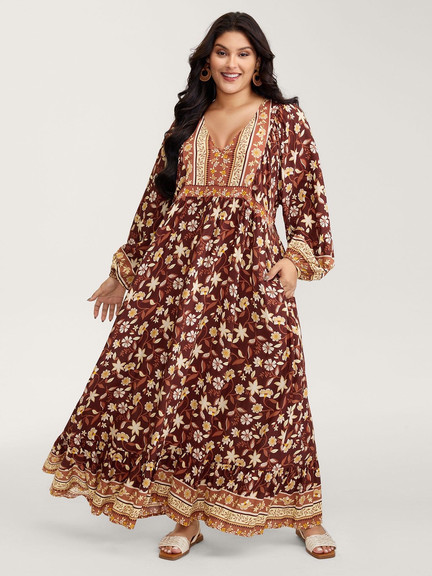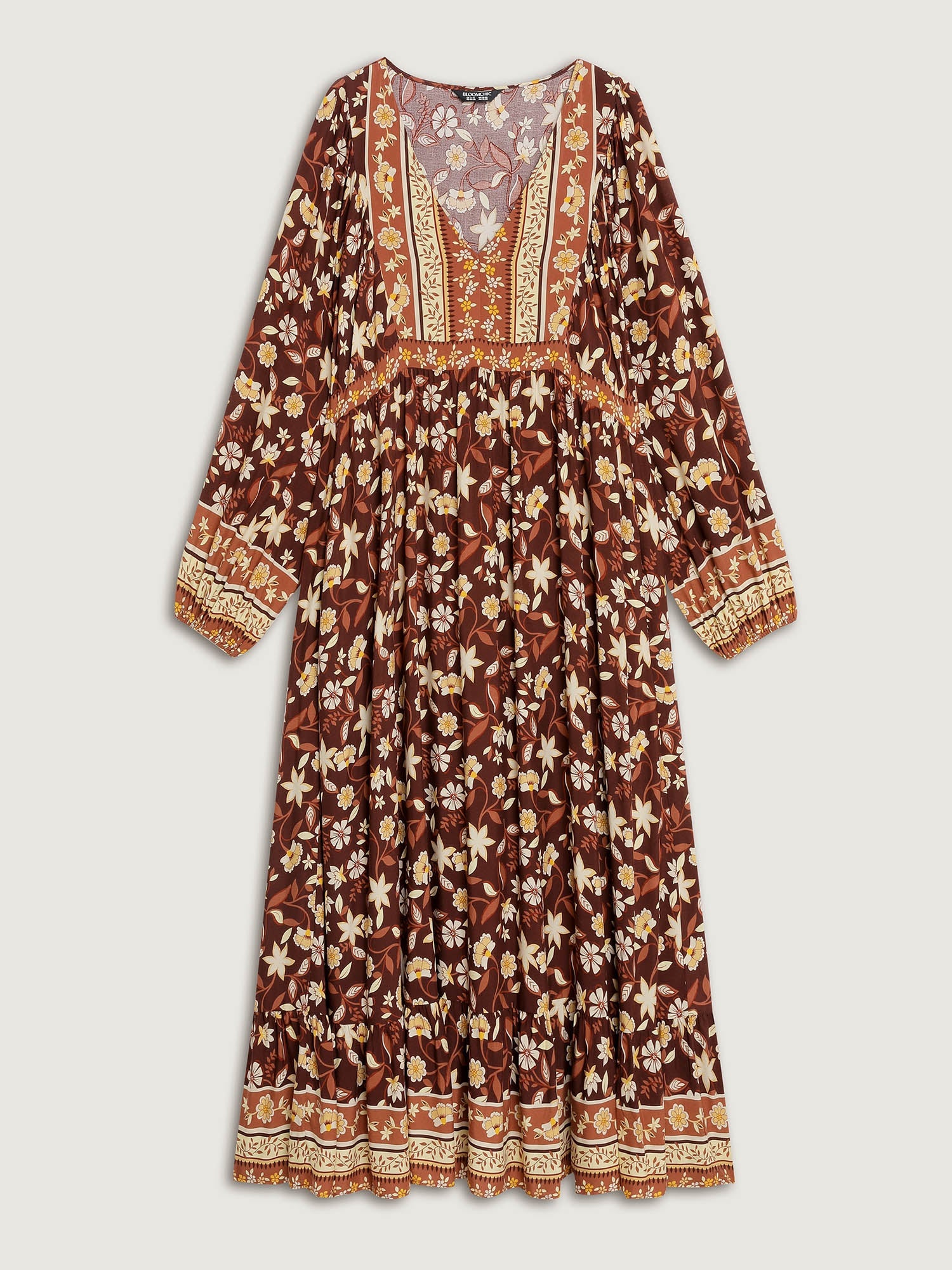 Floral Print Contrast Neckline Maxi Dress