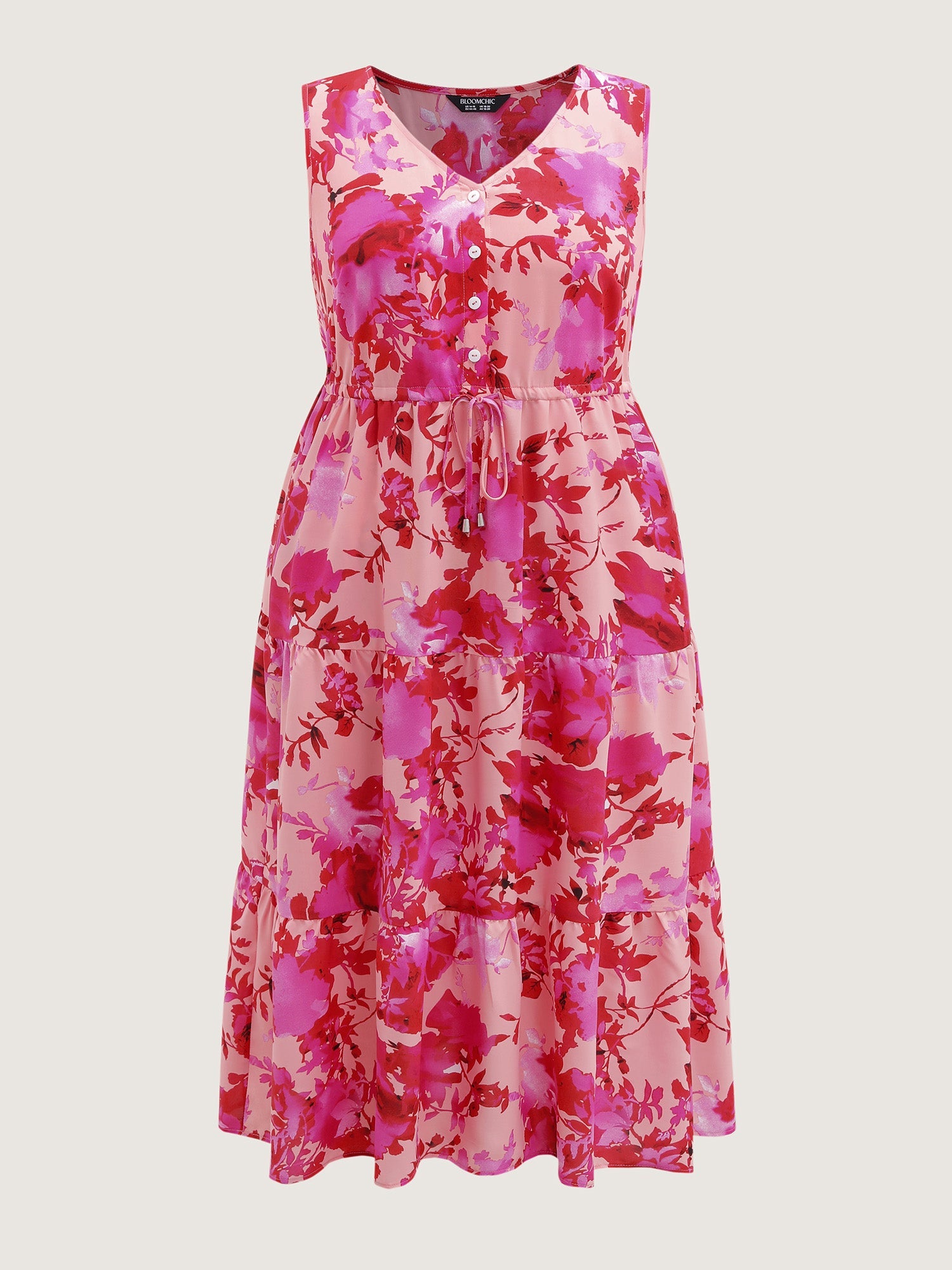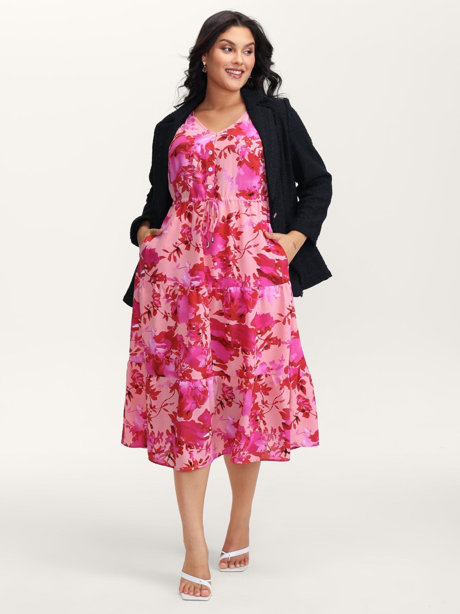 Floral Print Flowy Skirt Drawstring Maxi Dress