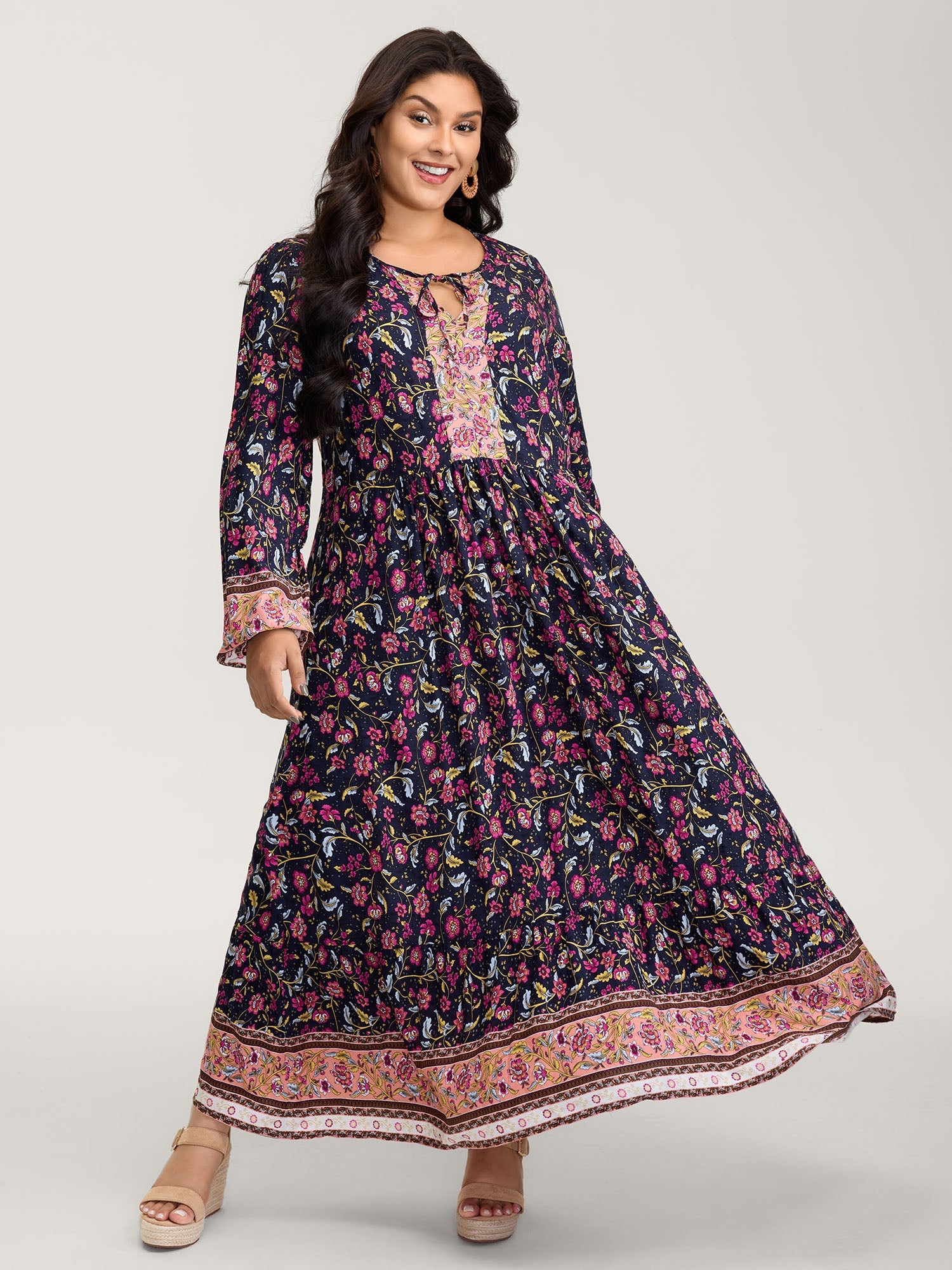 Floral Print Pockets Adjustable Neckline Maxi Dress