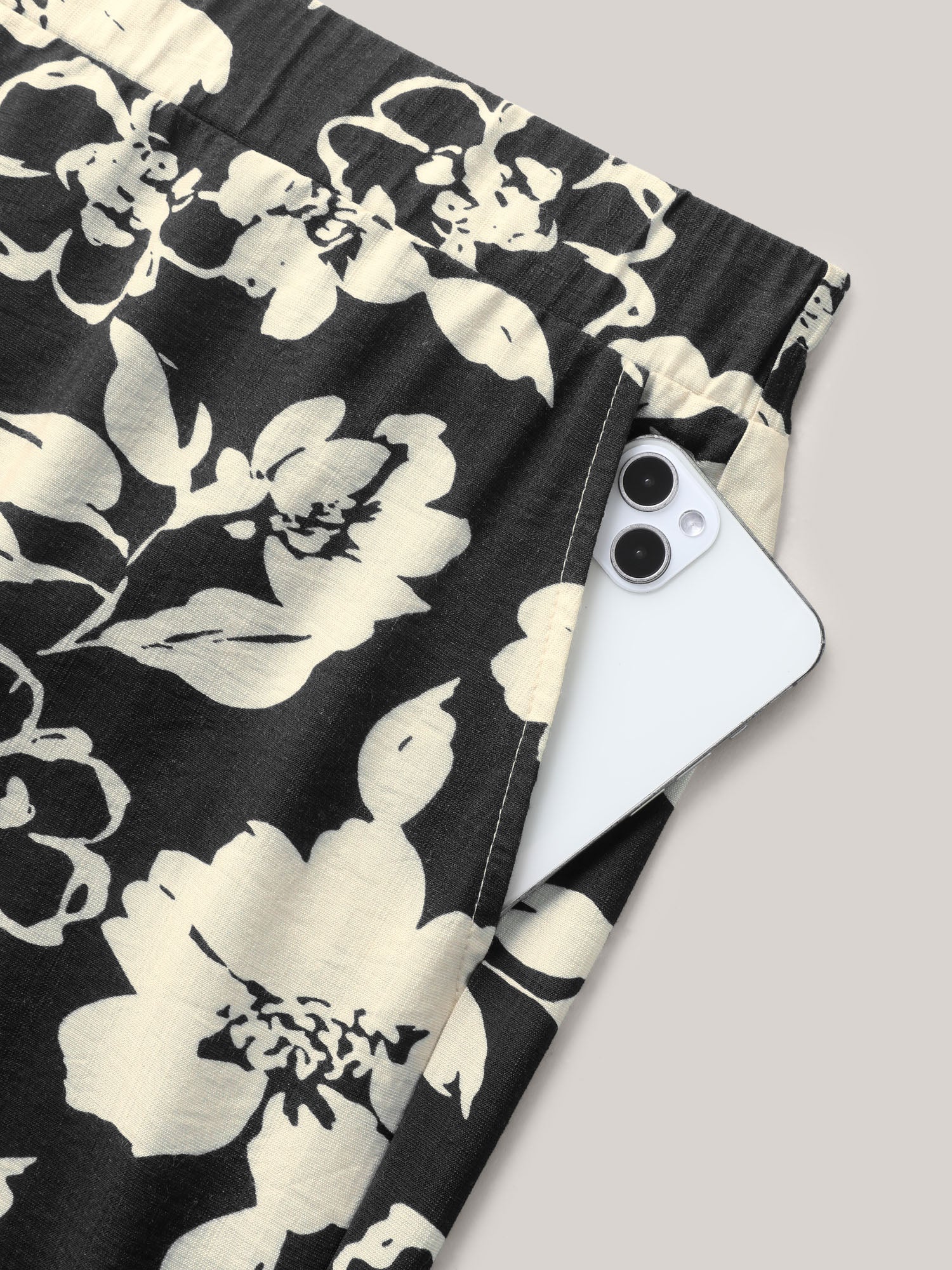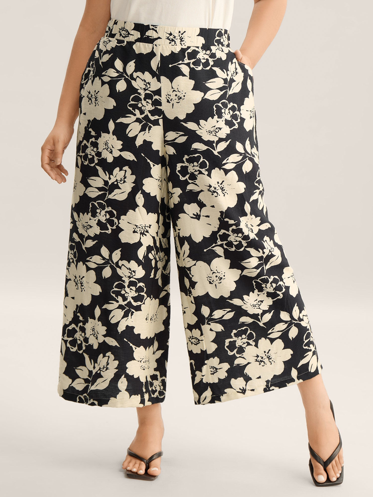 Floral Print Pull-On Wide-Leg Pants
