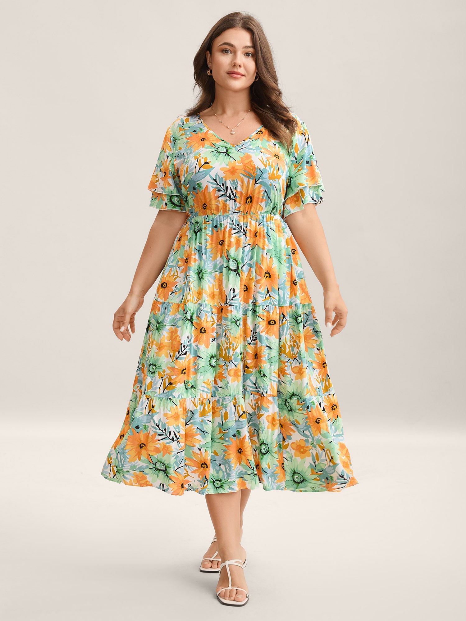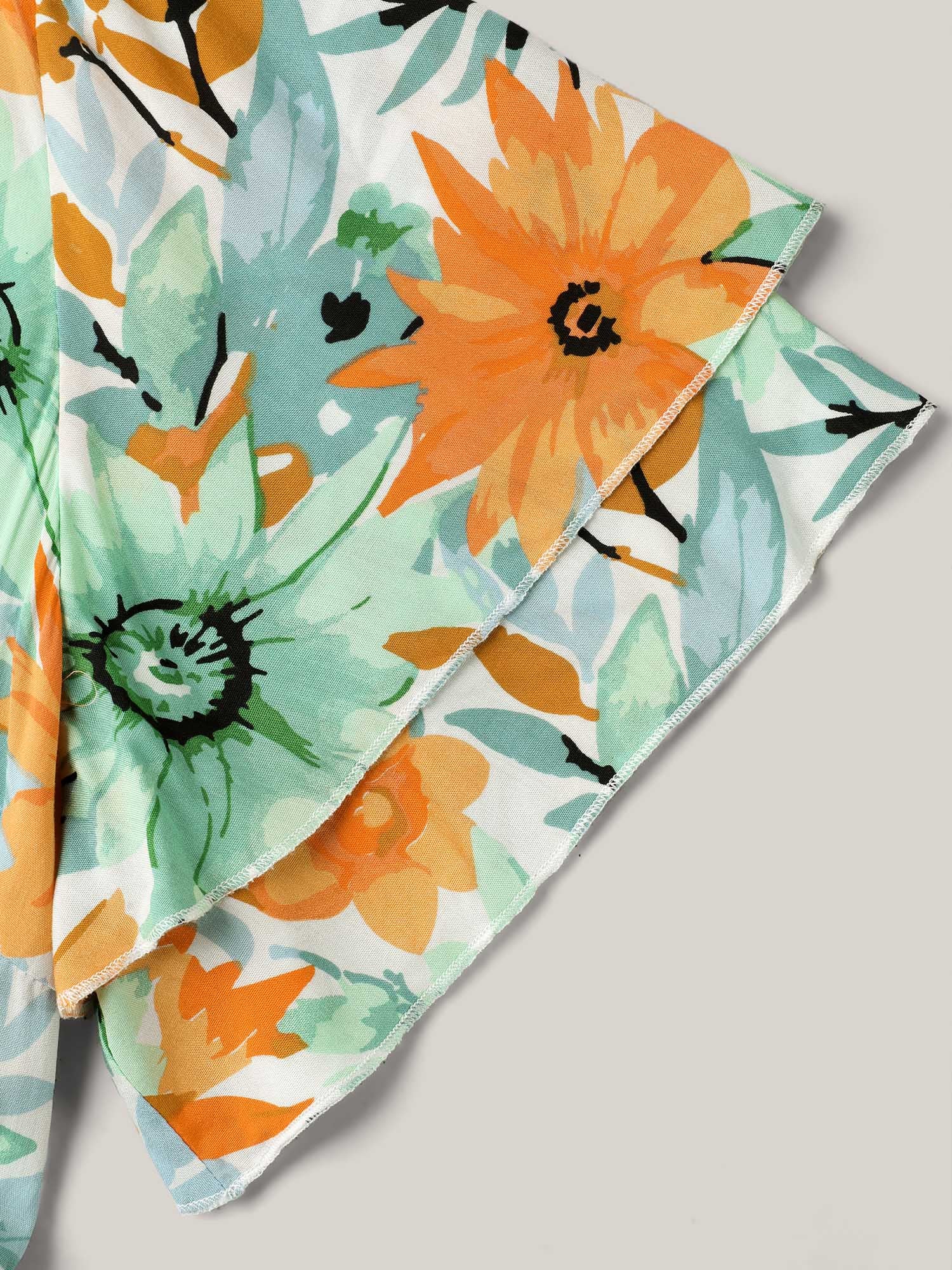 Floral Print Rayon Pockets Tiered Midi Dress