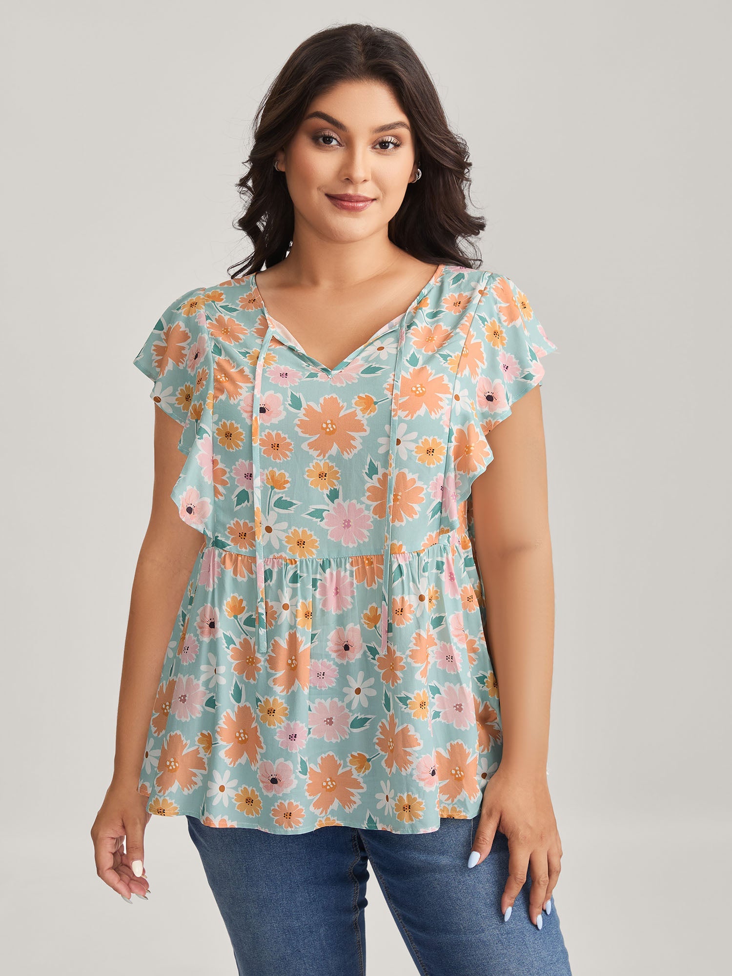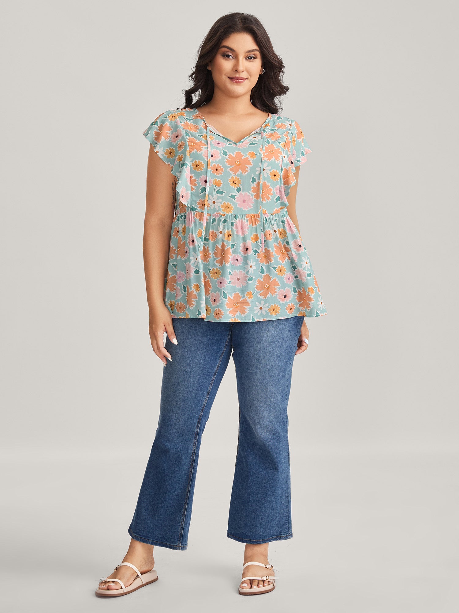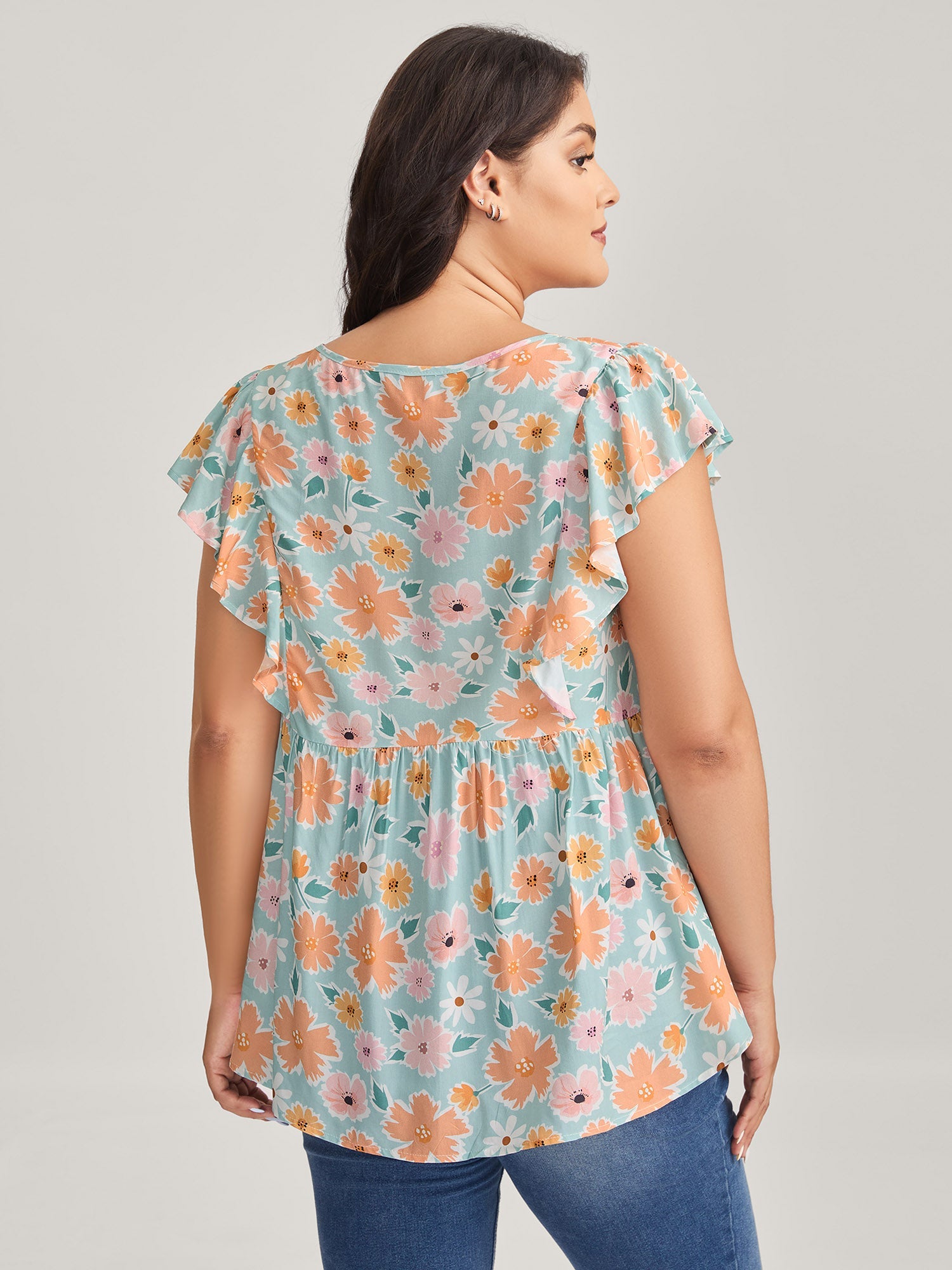 Floral Print Ruffled Sleeve Blouse