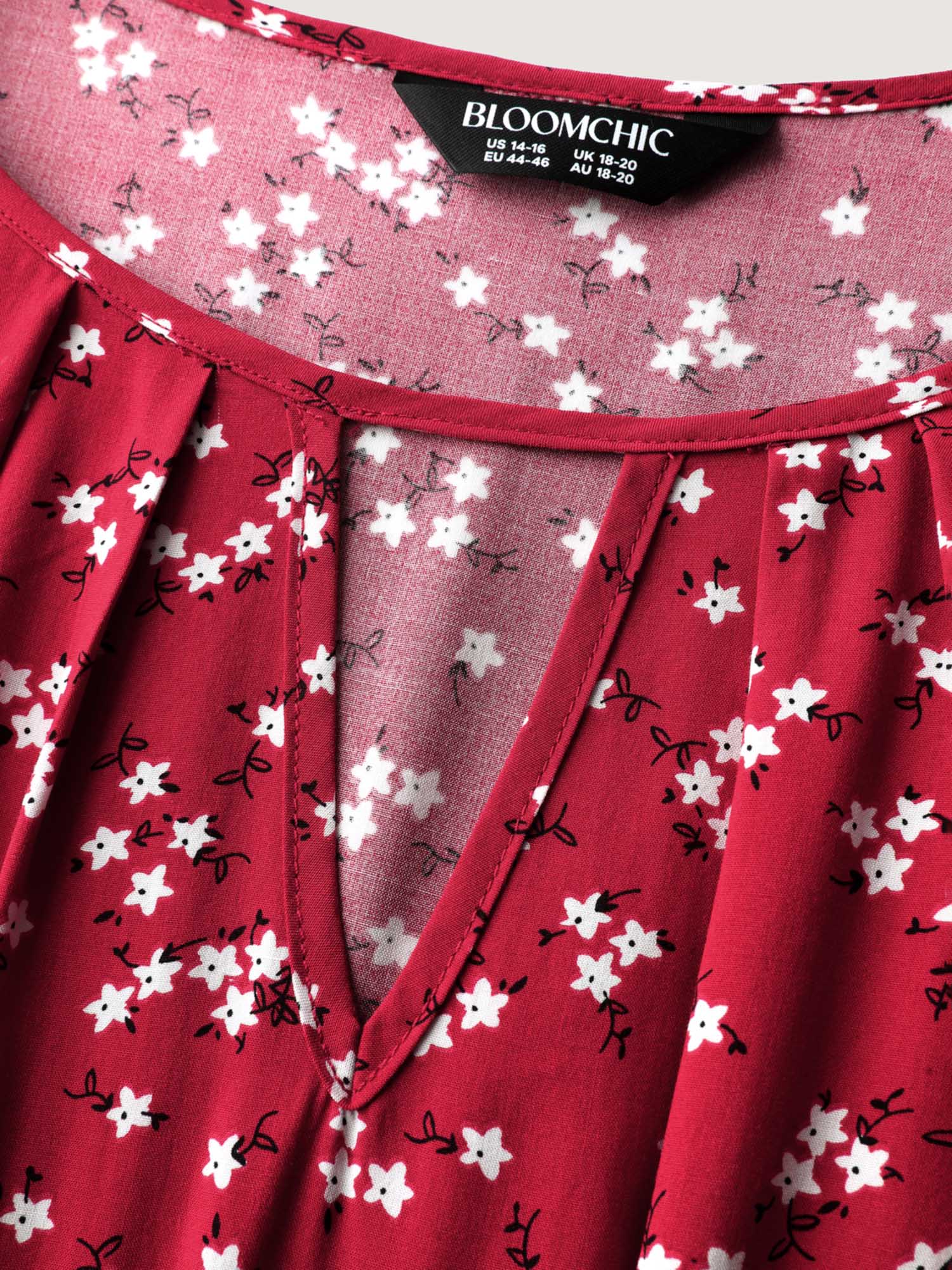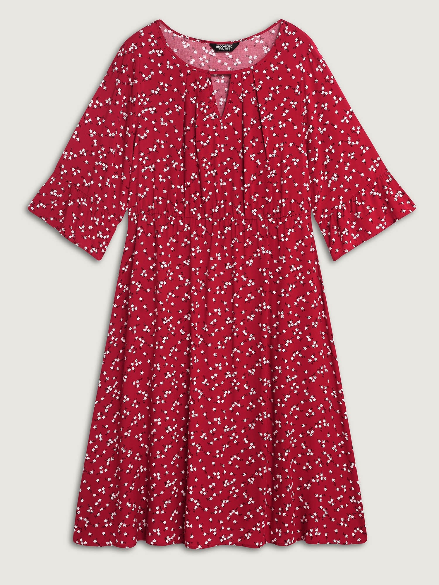 Floral Print Shirred Cut-Out Neck Midi Dress