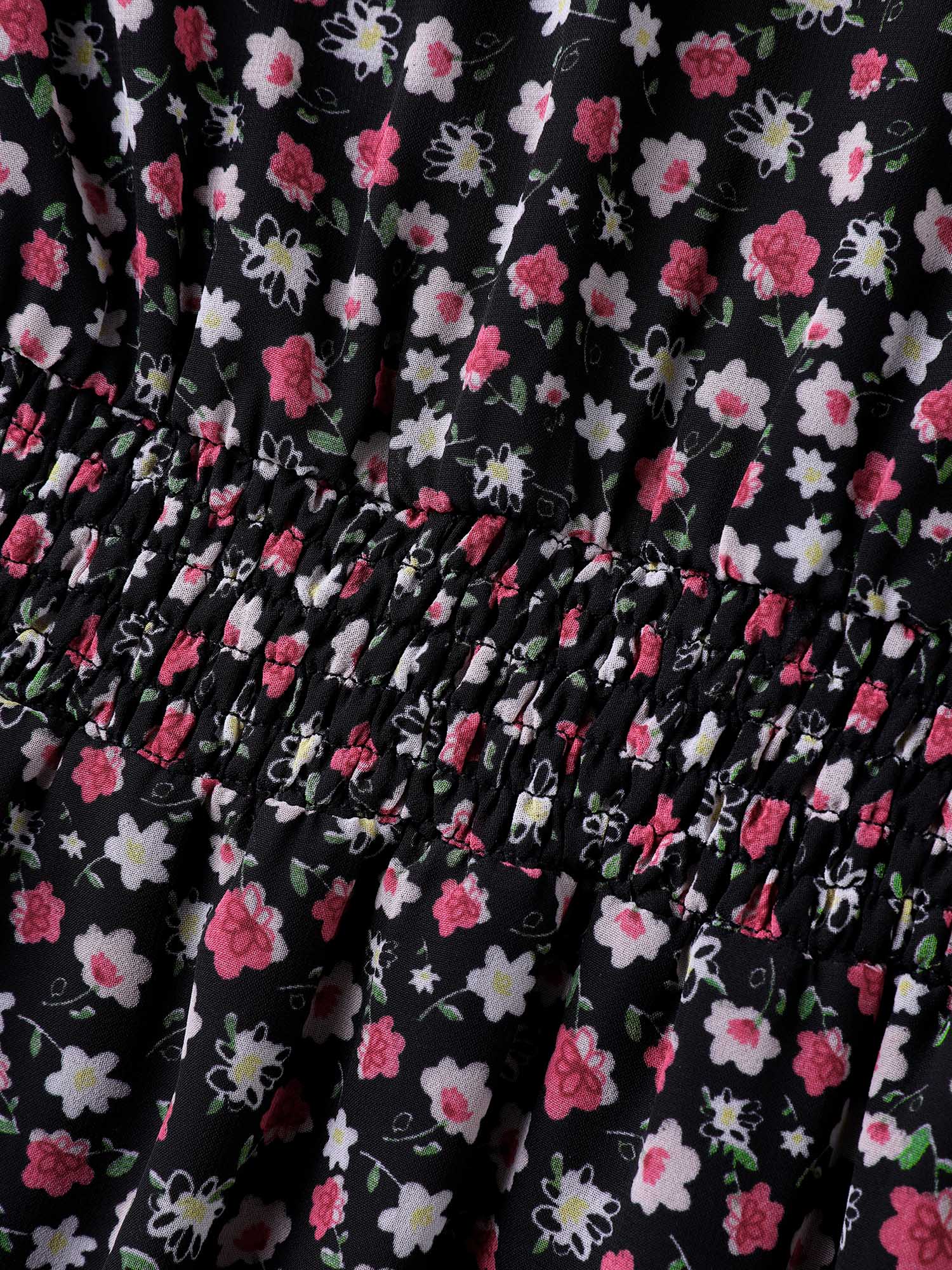 Floral Print Shirred Waist Cinched Shirt