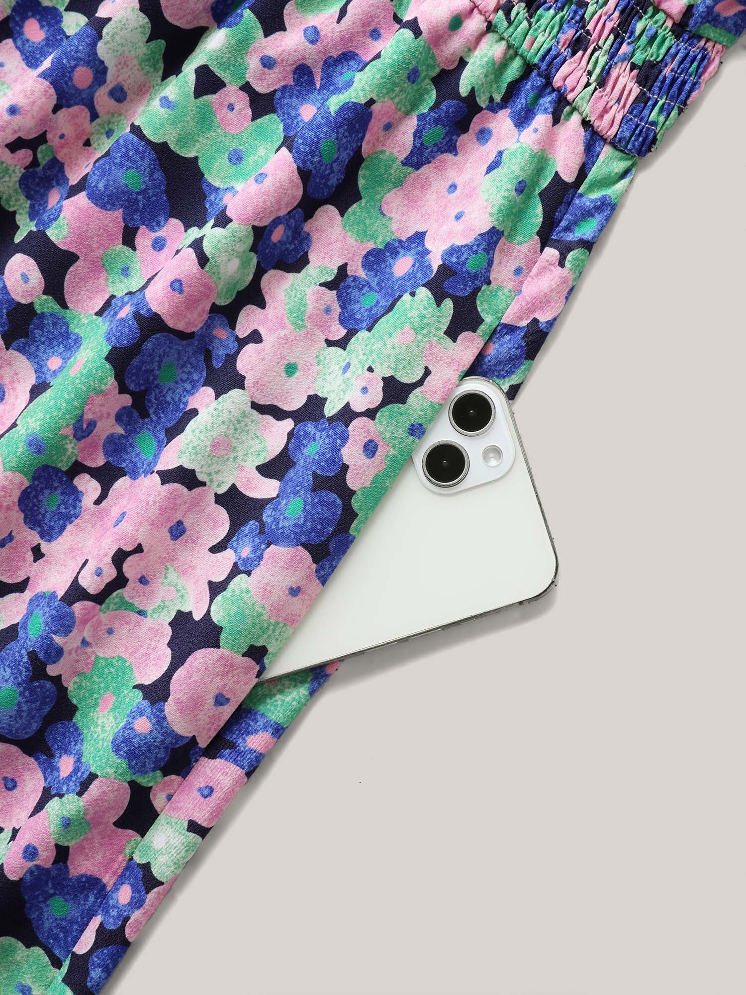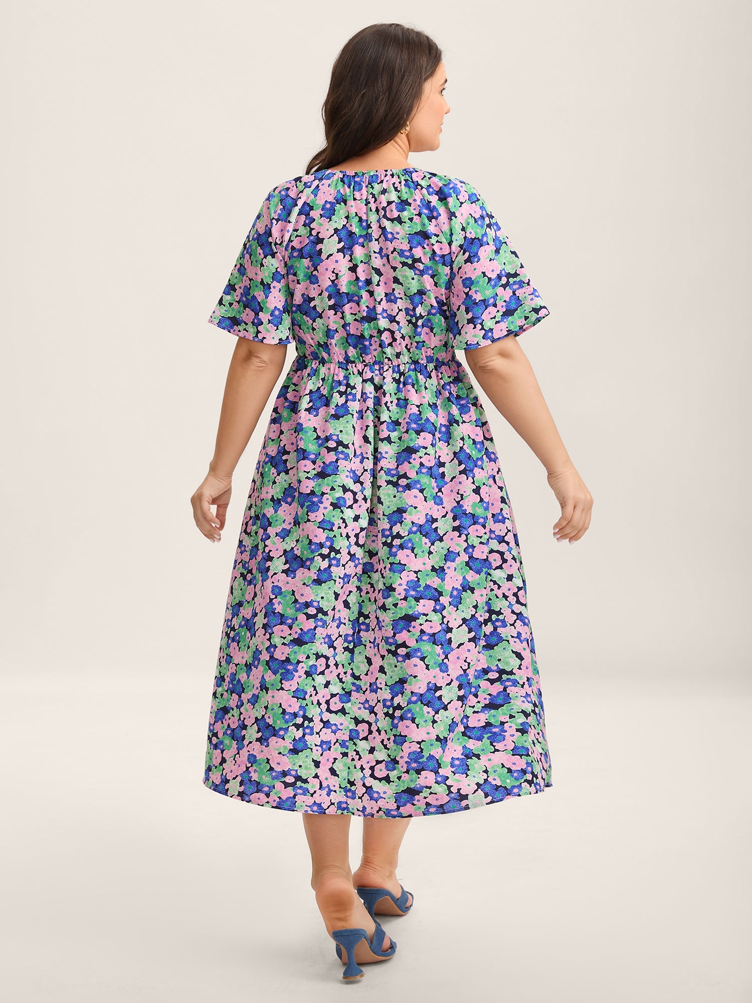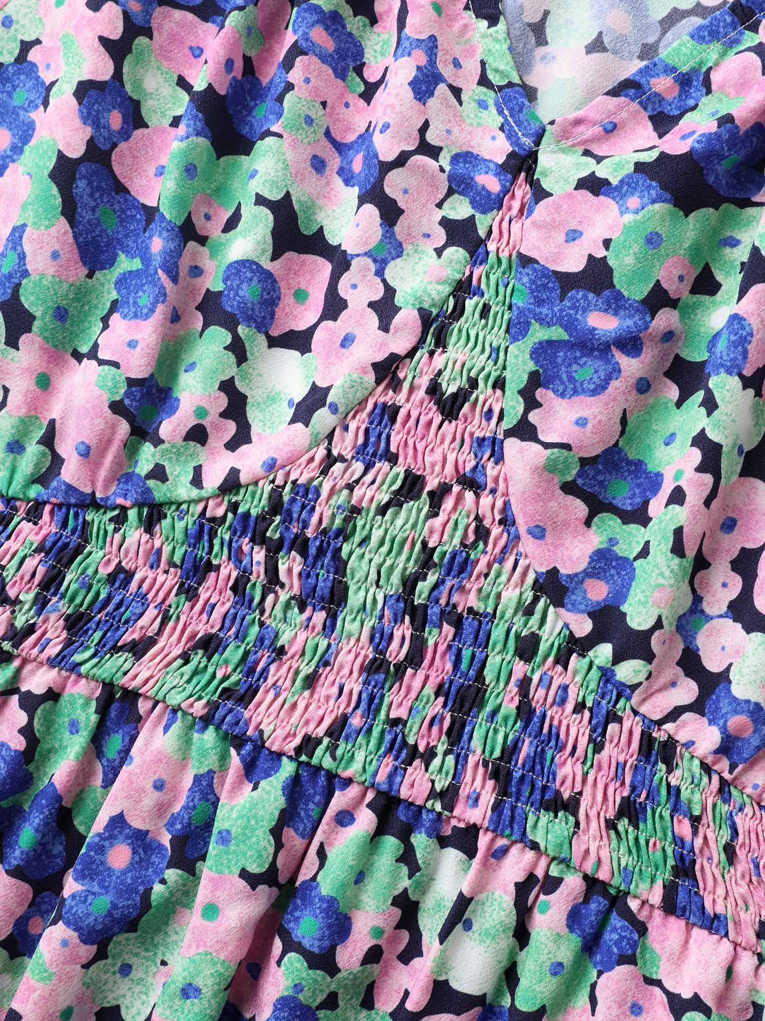 Floral Print Shirred Waist Midi Dress