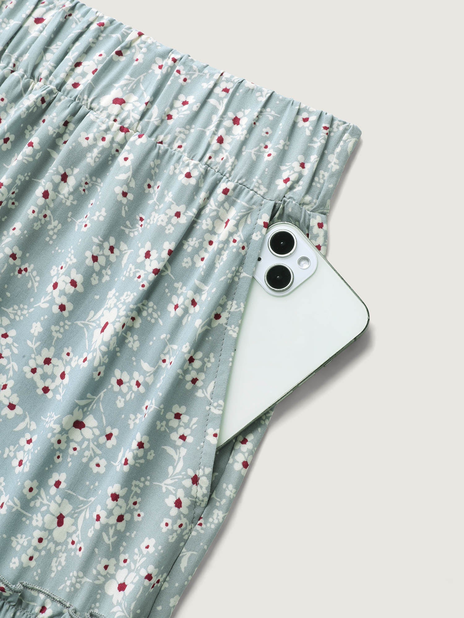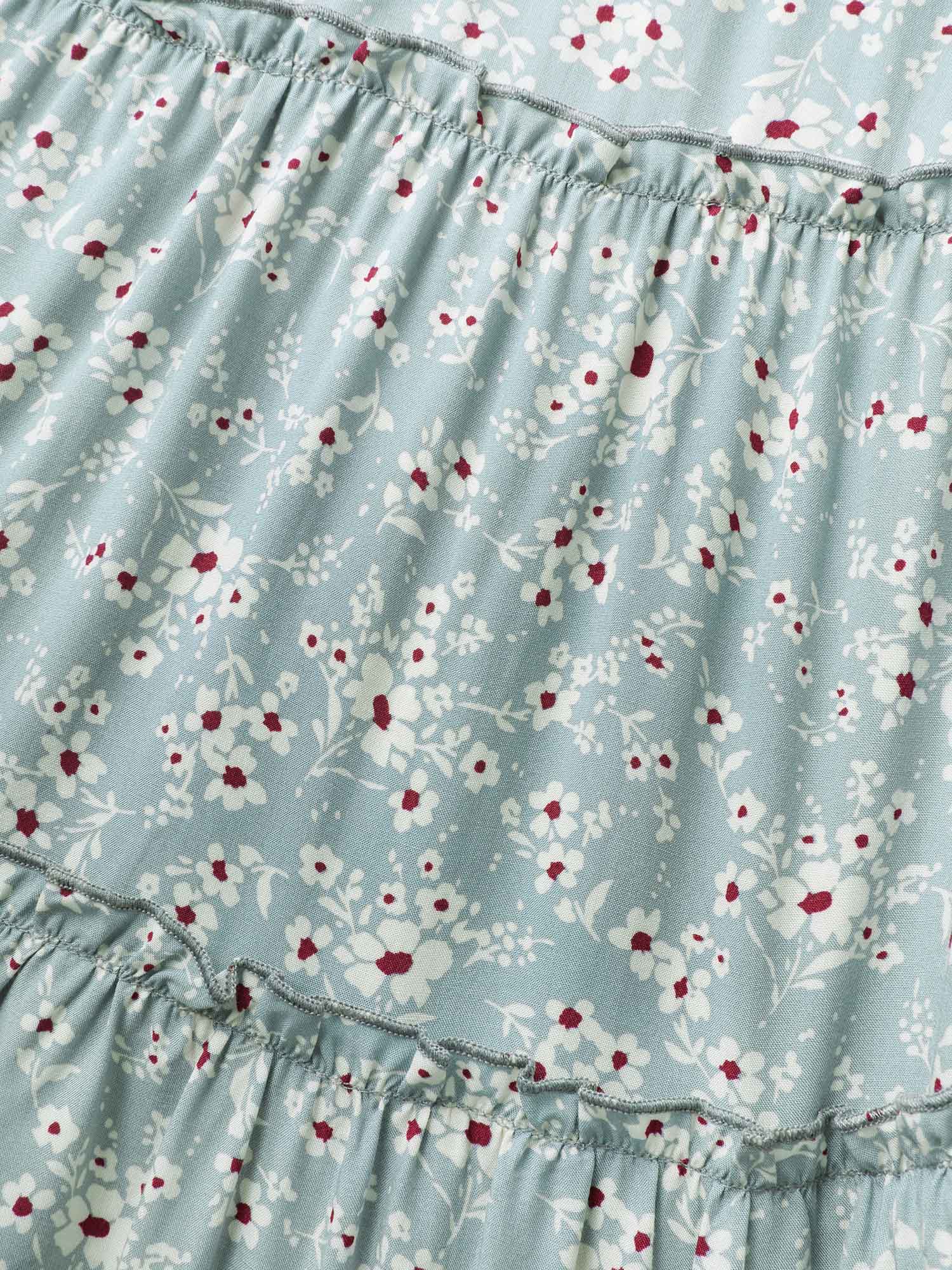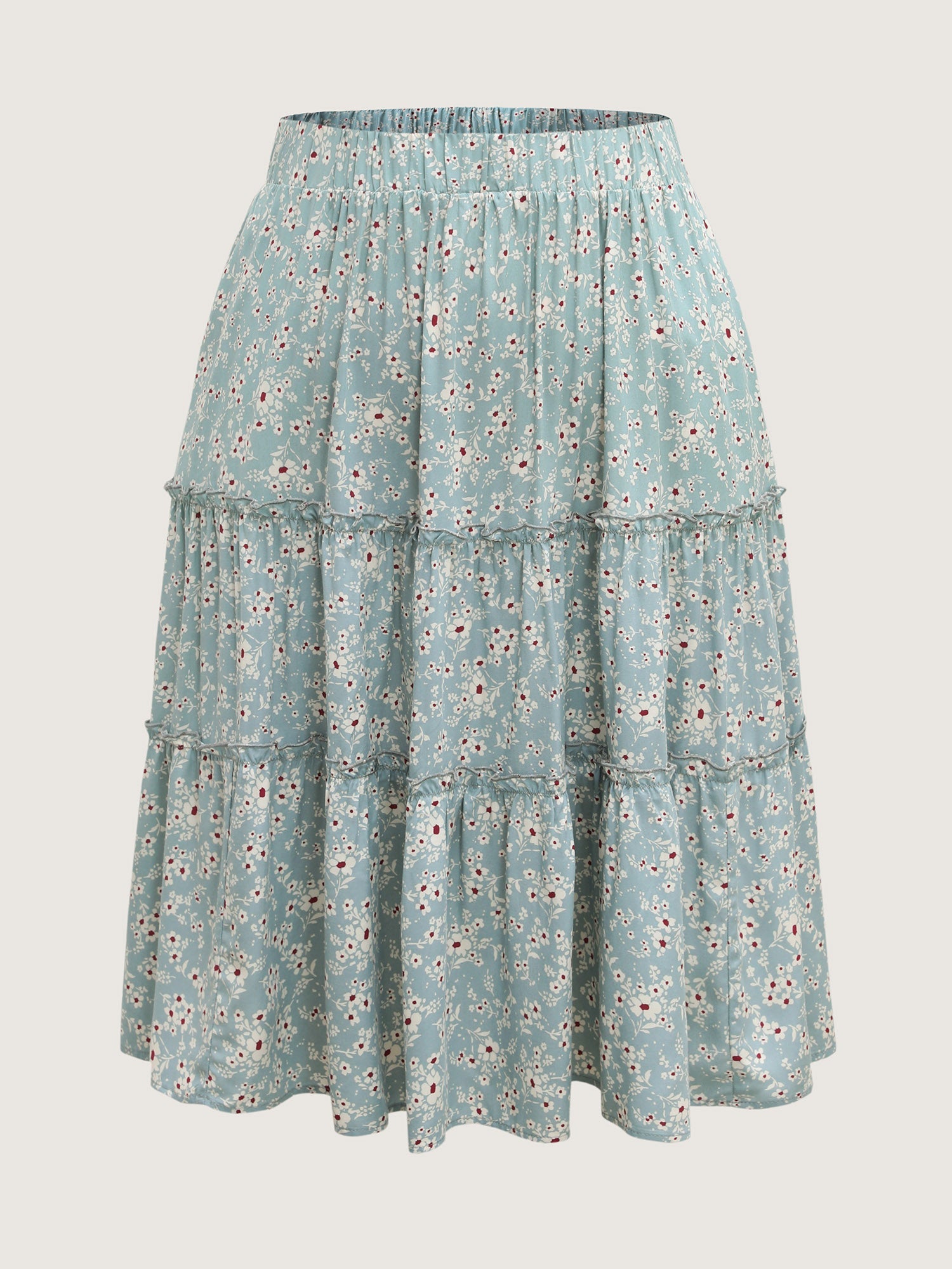 Floral Print Stretchy Waist Tiered Midi Skirt