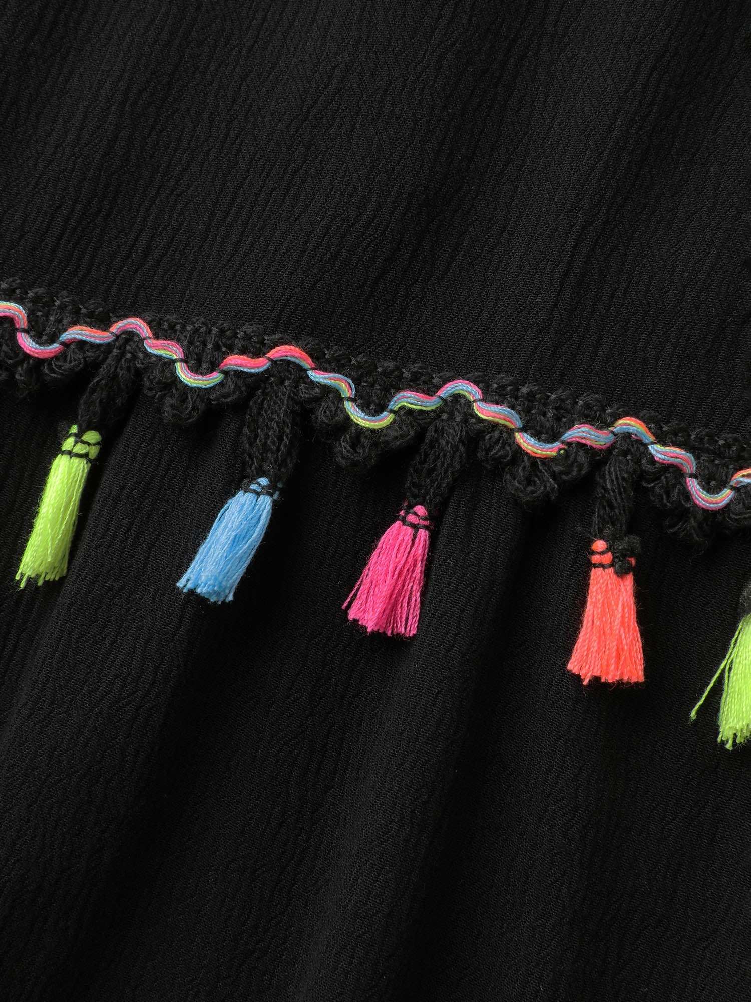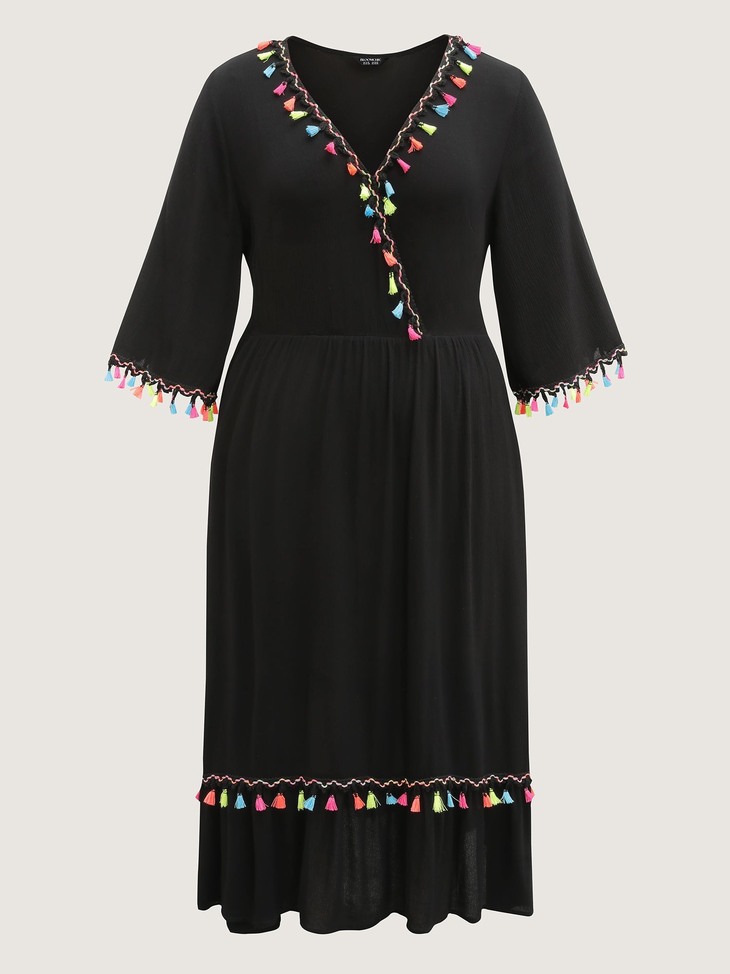 Floral Stretchy Embroidery Tassels Maxi Dress