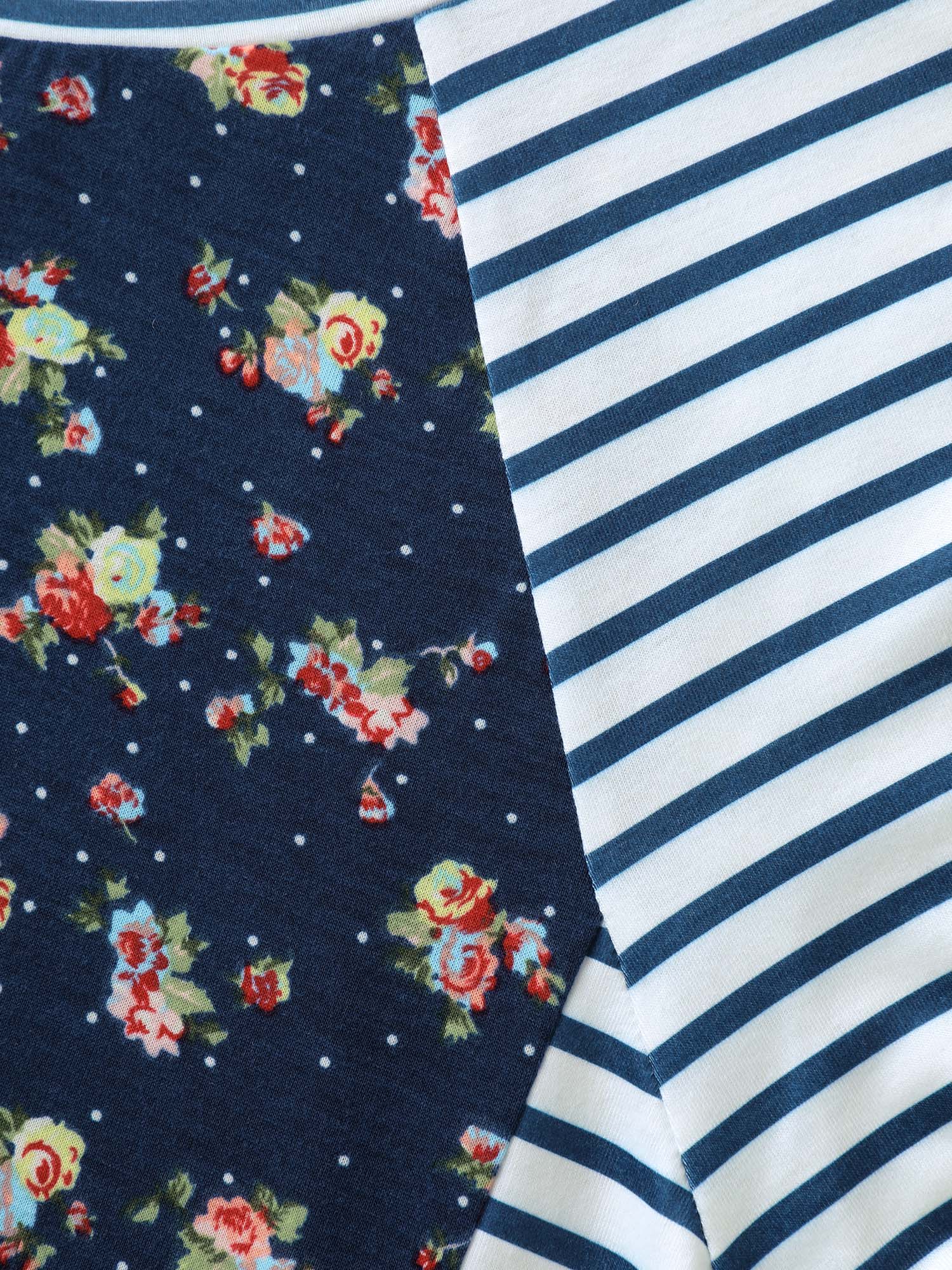 Floral Stripes Raglan Sleeve T-Shirt