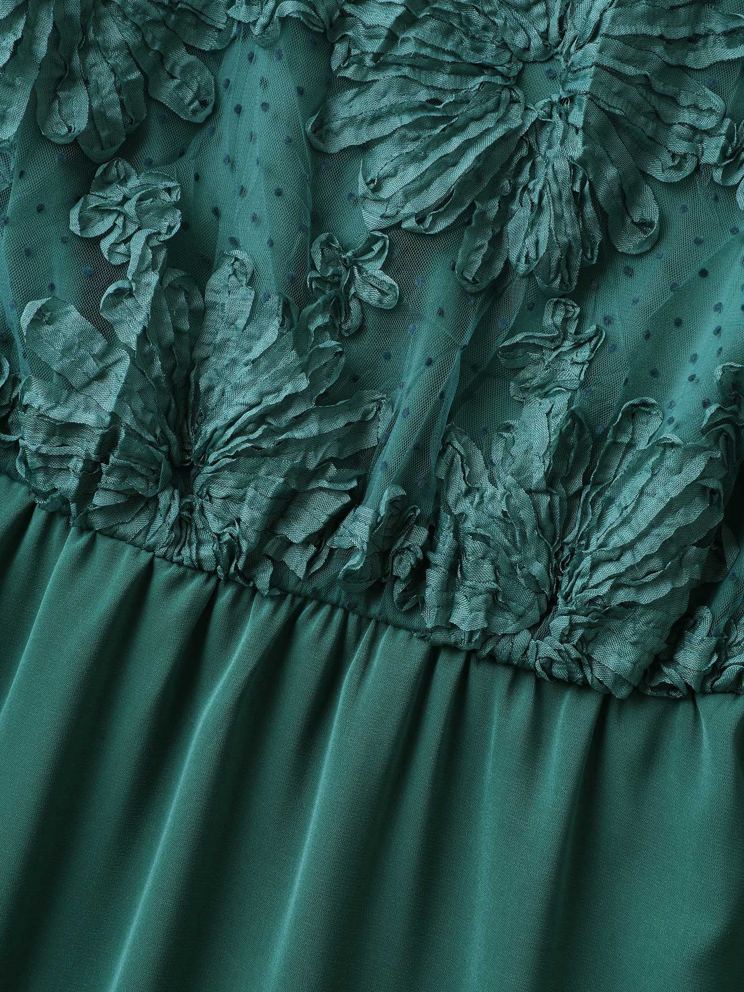 Floral Textured Sheer Pockets Midi Dress