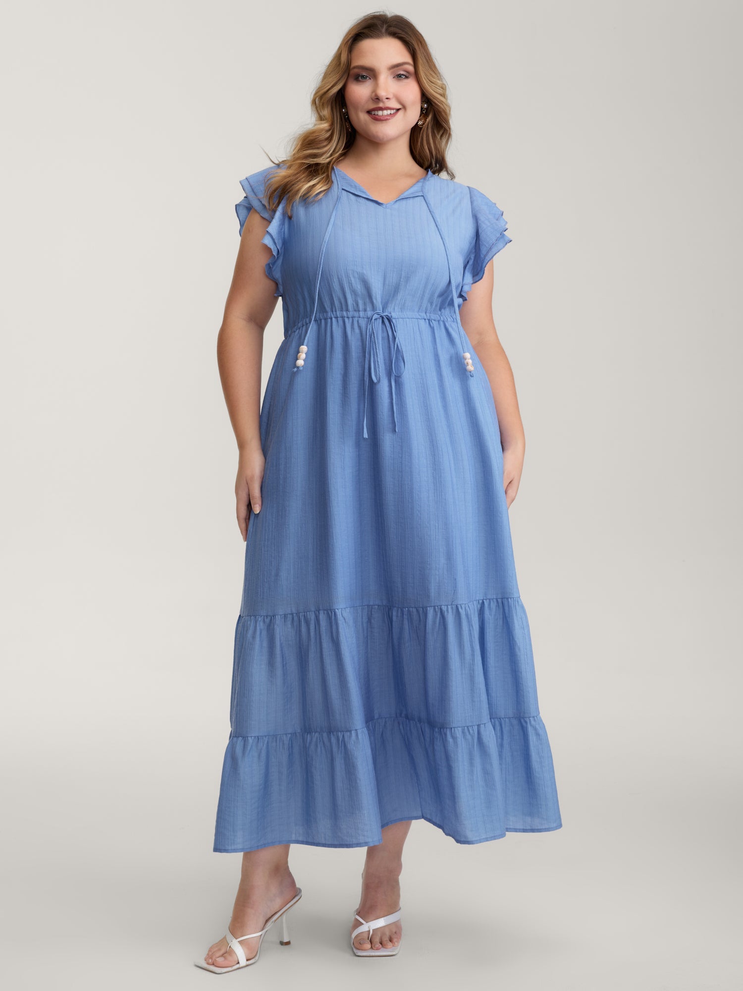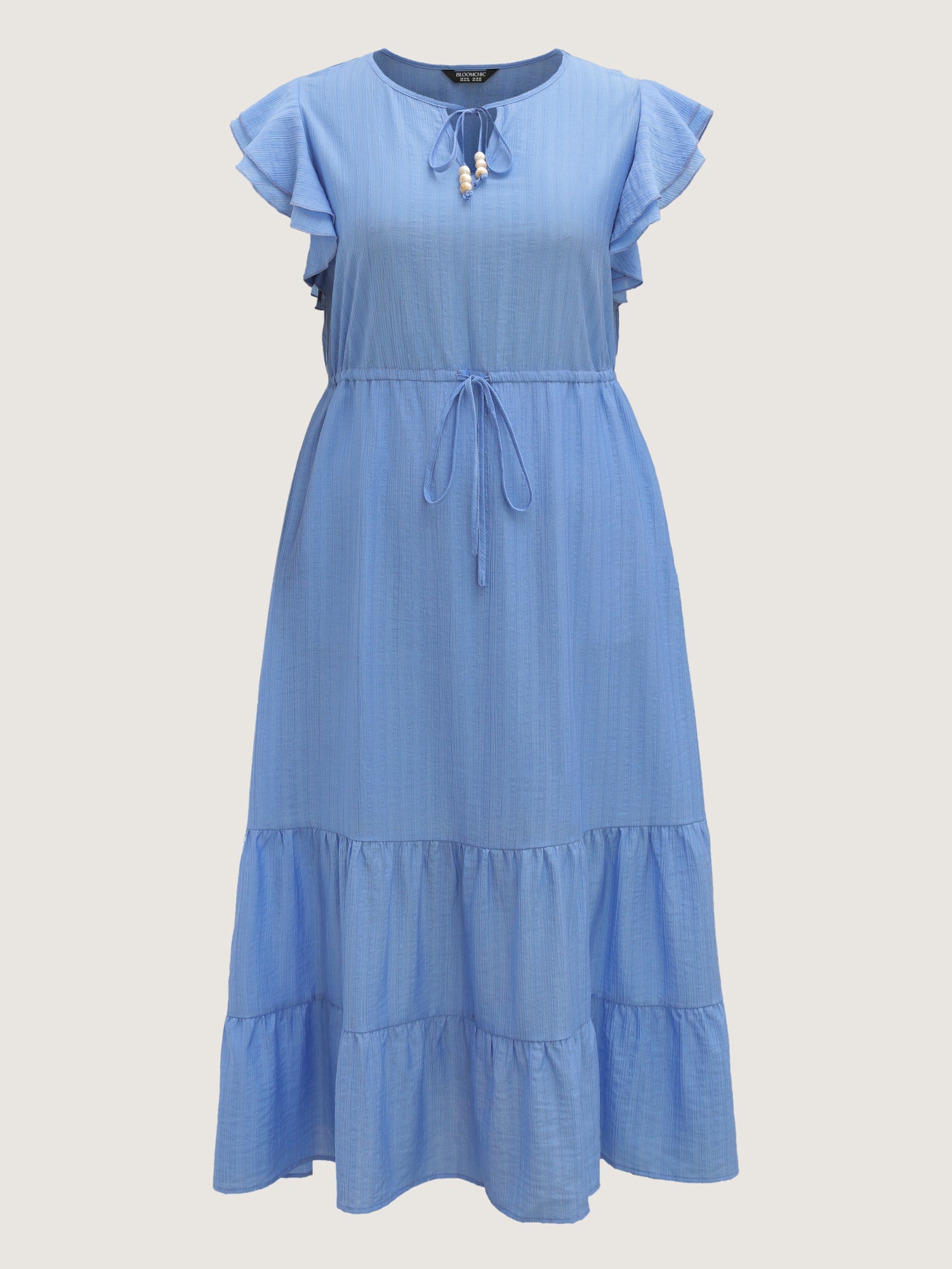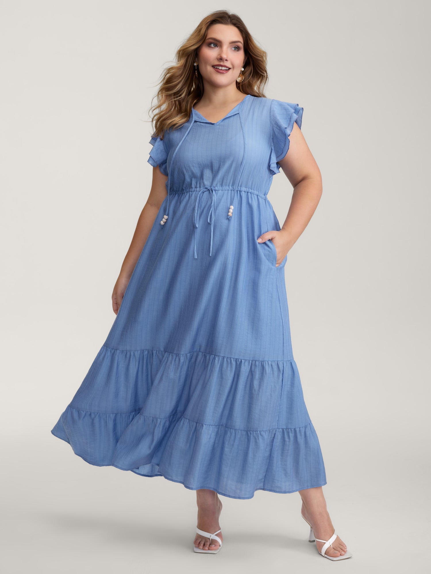 Flutter Sleeve Flowy Waist Drawstring Maxi Dress