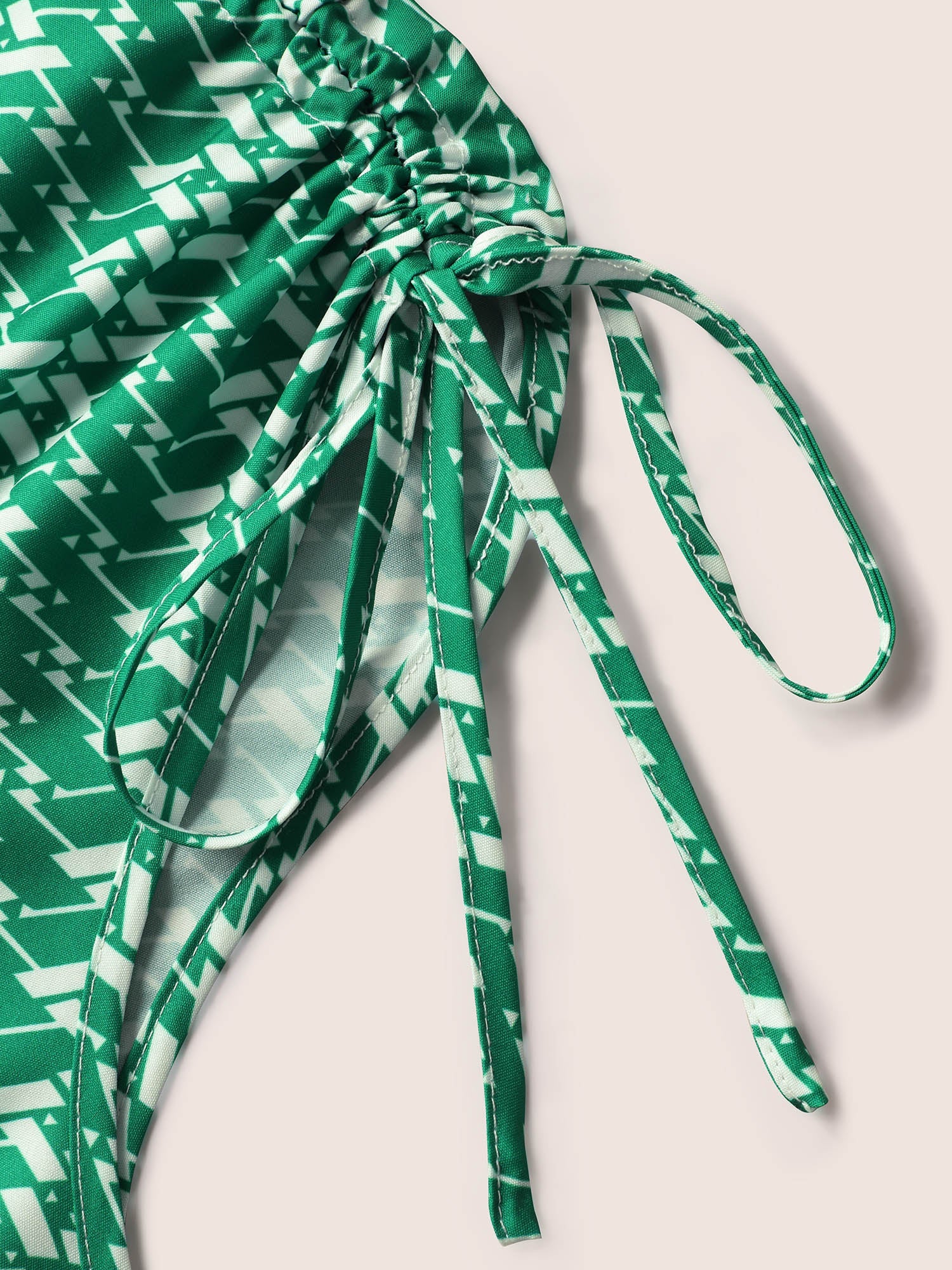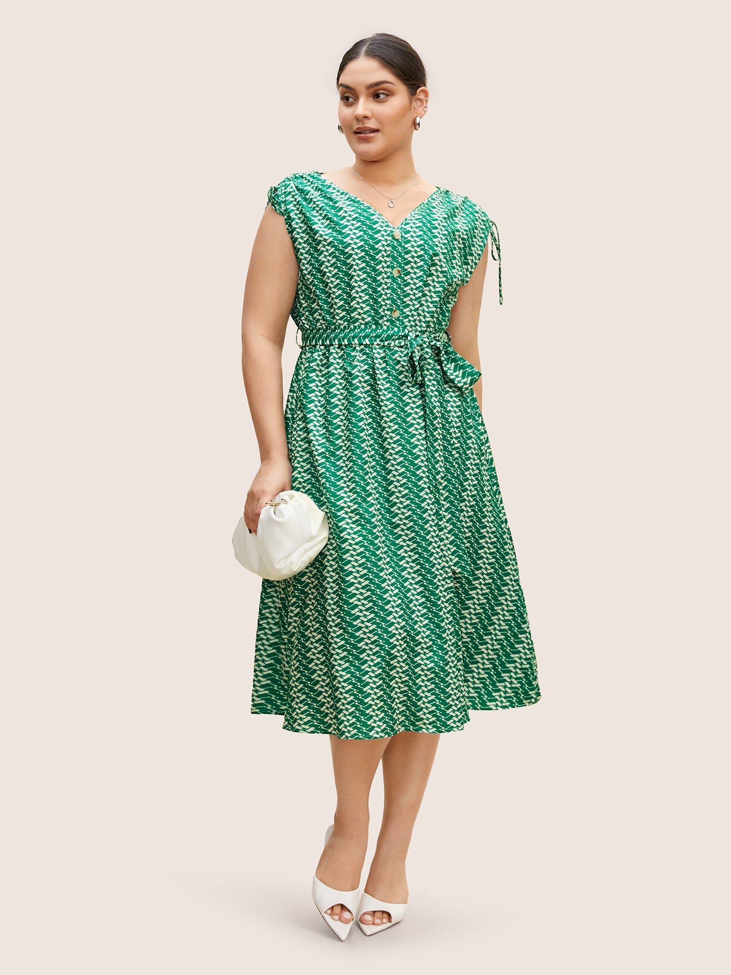 Geometric Drawstring Cap Sleeve Midi Dress