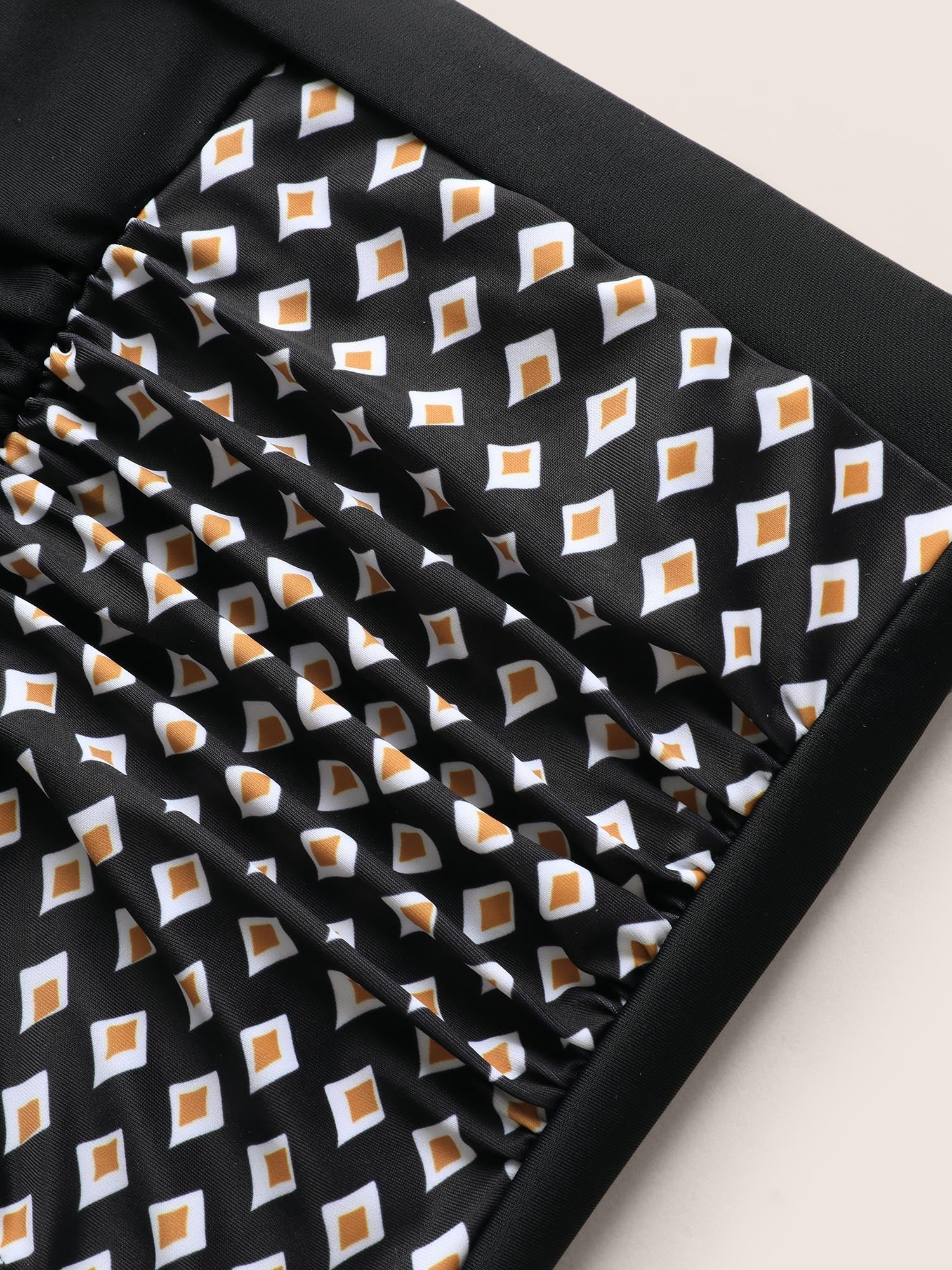 Geometric Patchwork Ruched High Rise Swim Bottom