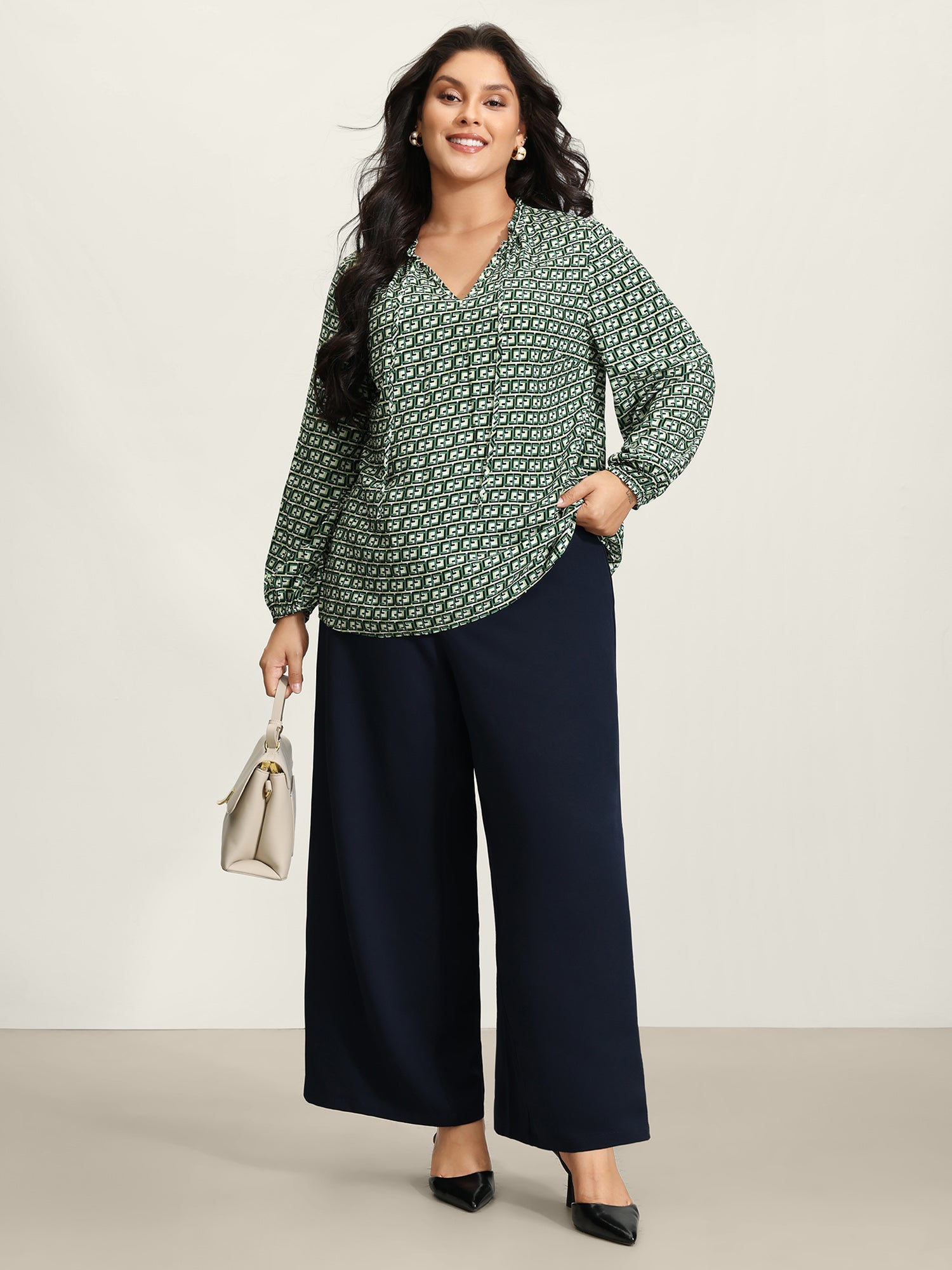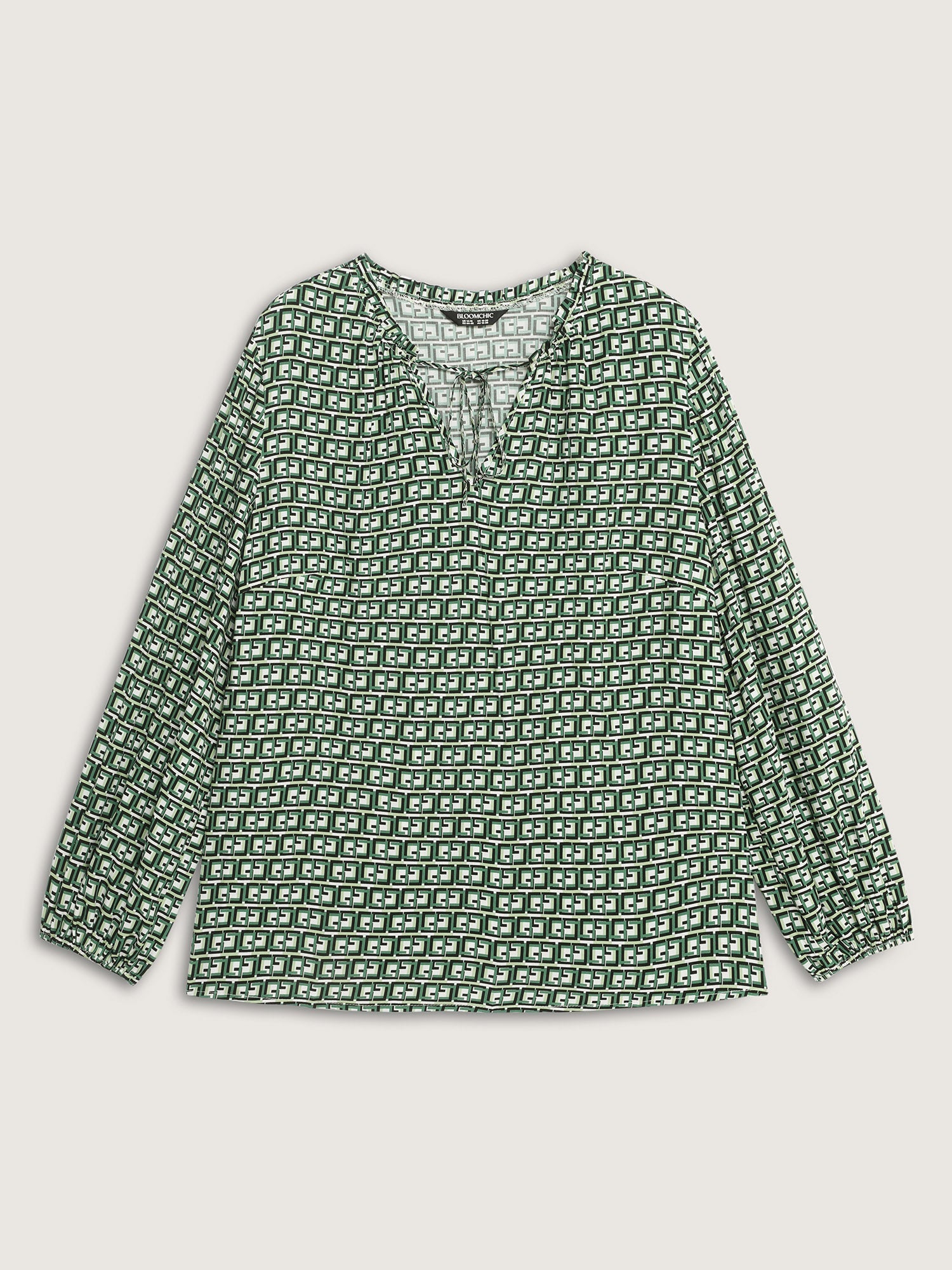 Geometric Print Neck-Tie Relaxed-Fit Blouse