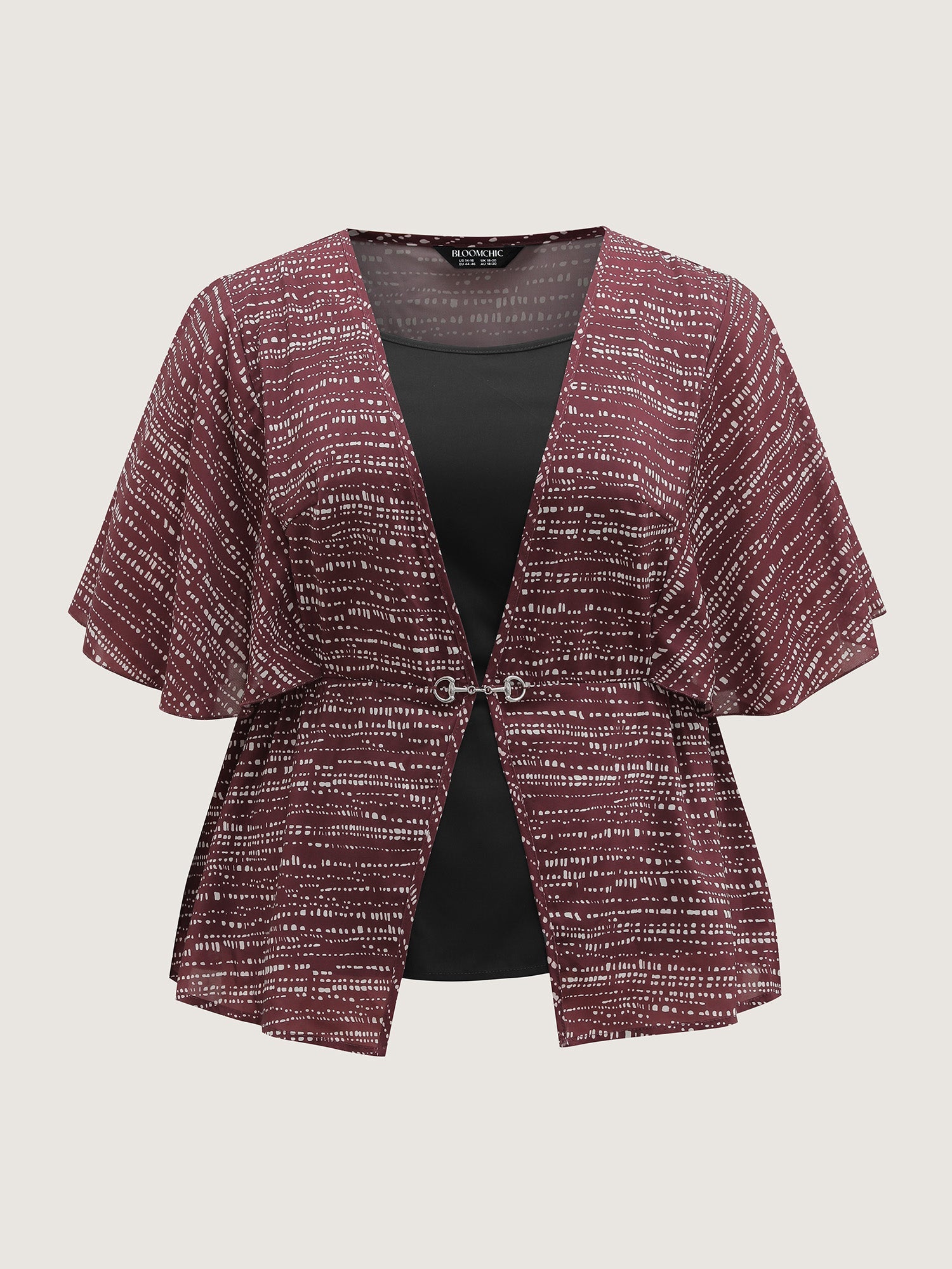 Geometric Print Stretchy Waist Metal Detail Blouse