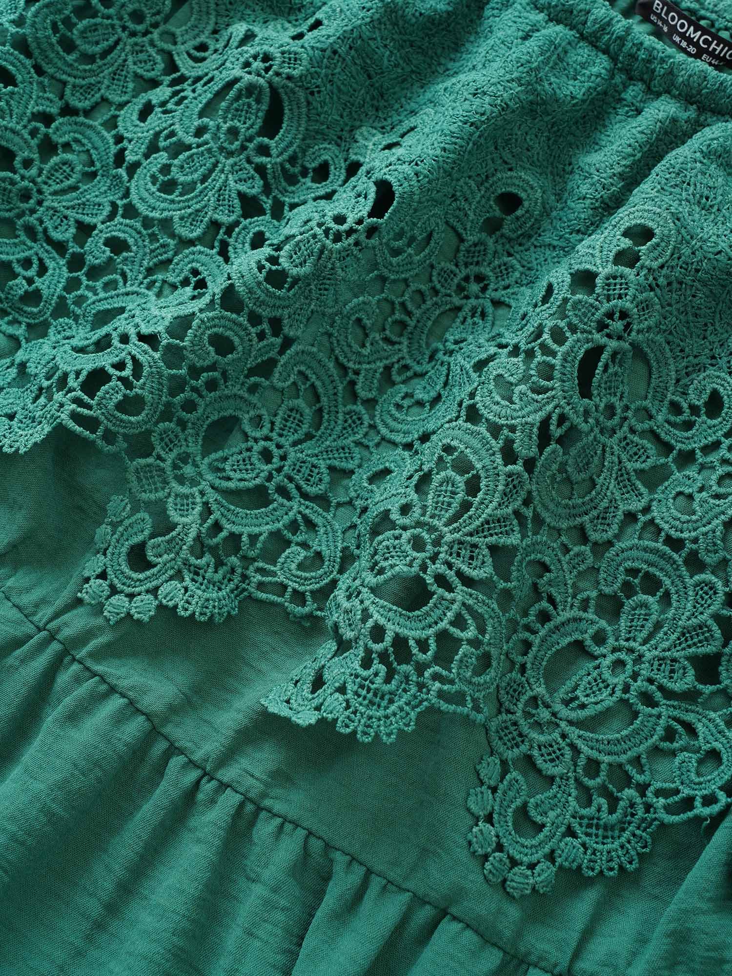 Guipure Lace Off Shoulder Flutter Hem Dress