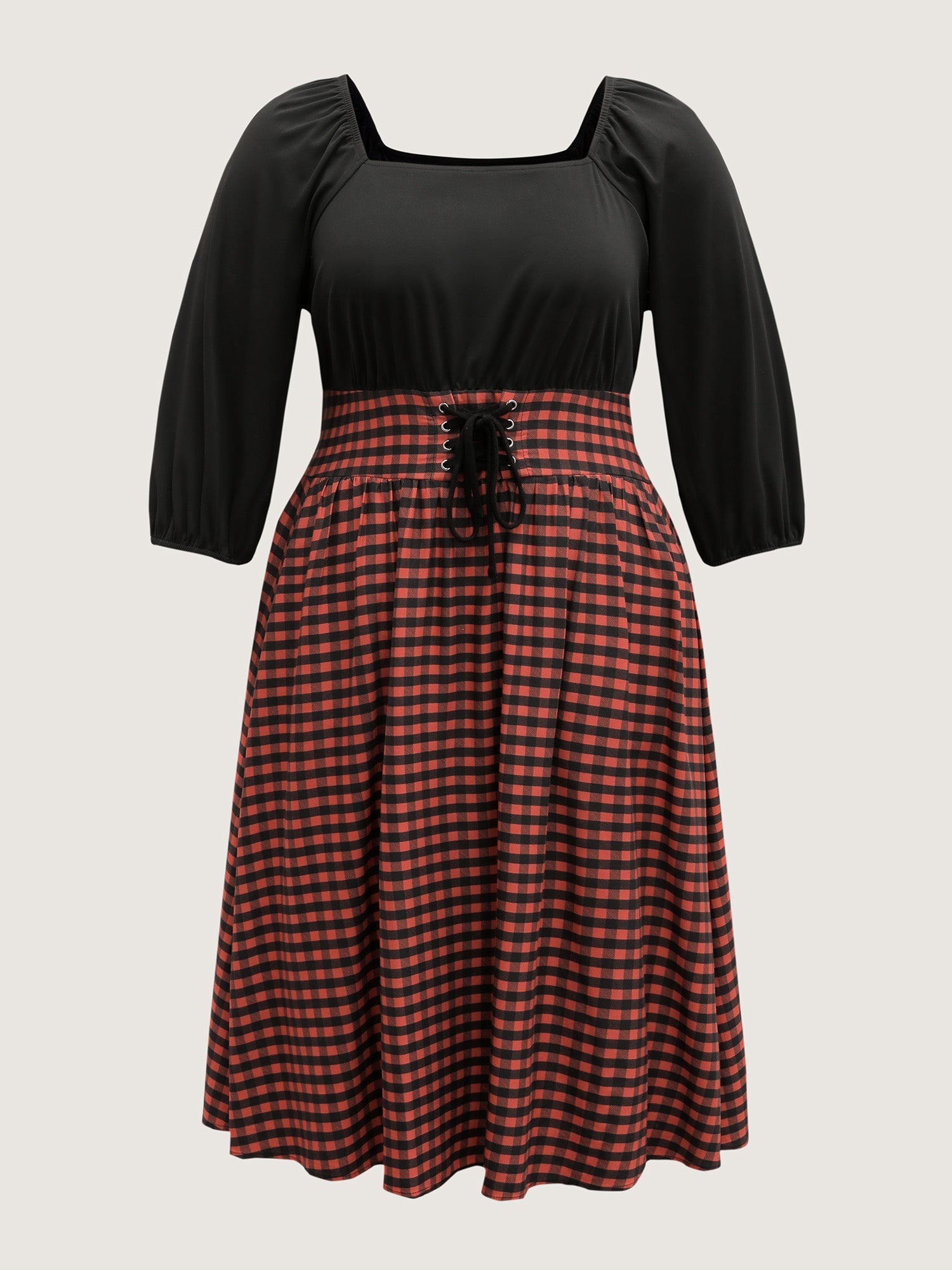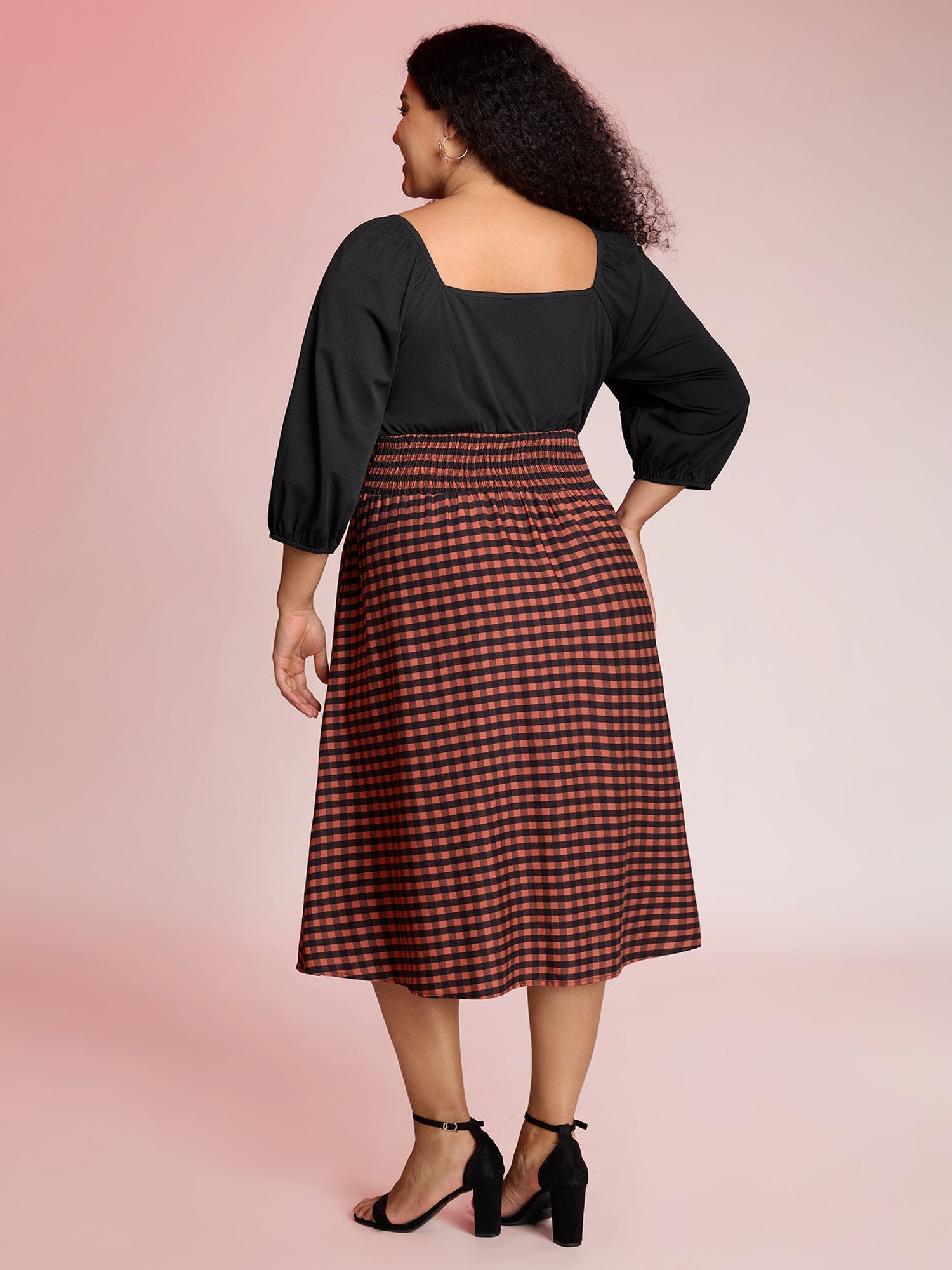 Halloween Plaid Print Crosstie Contrast Midi Dress