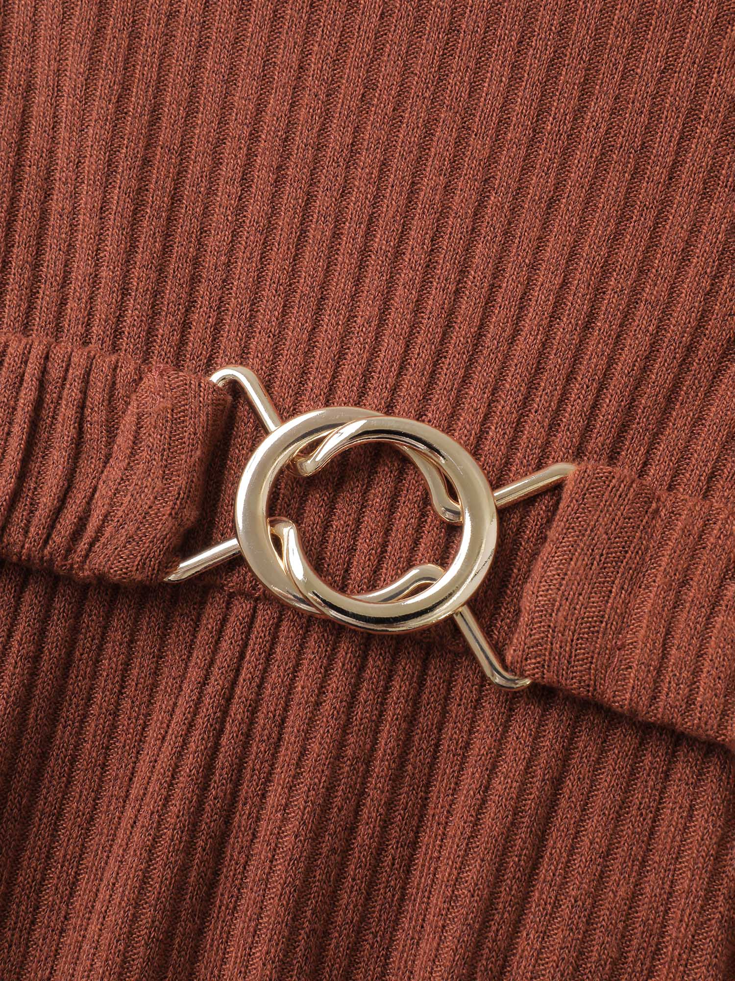 Heather Ribbed Stretchy Metal Buckle Maxi Dress