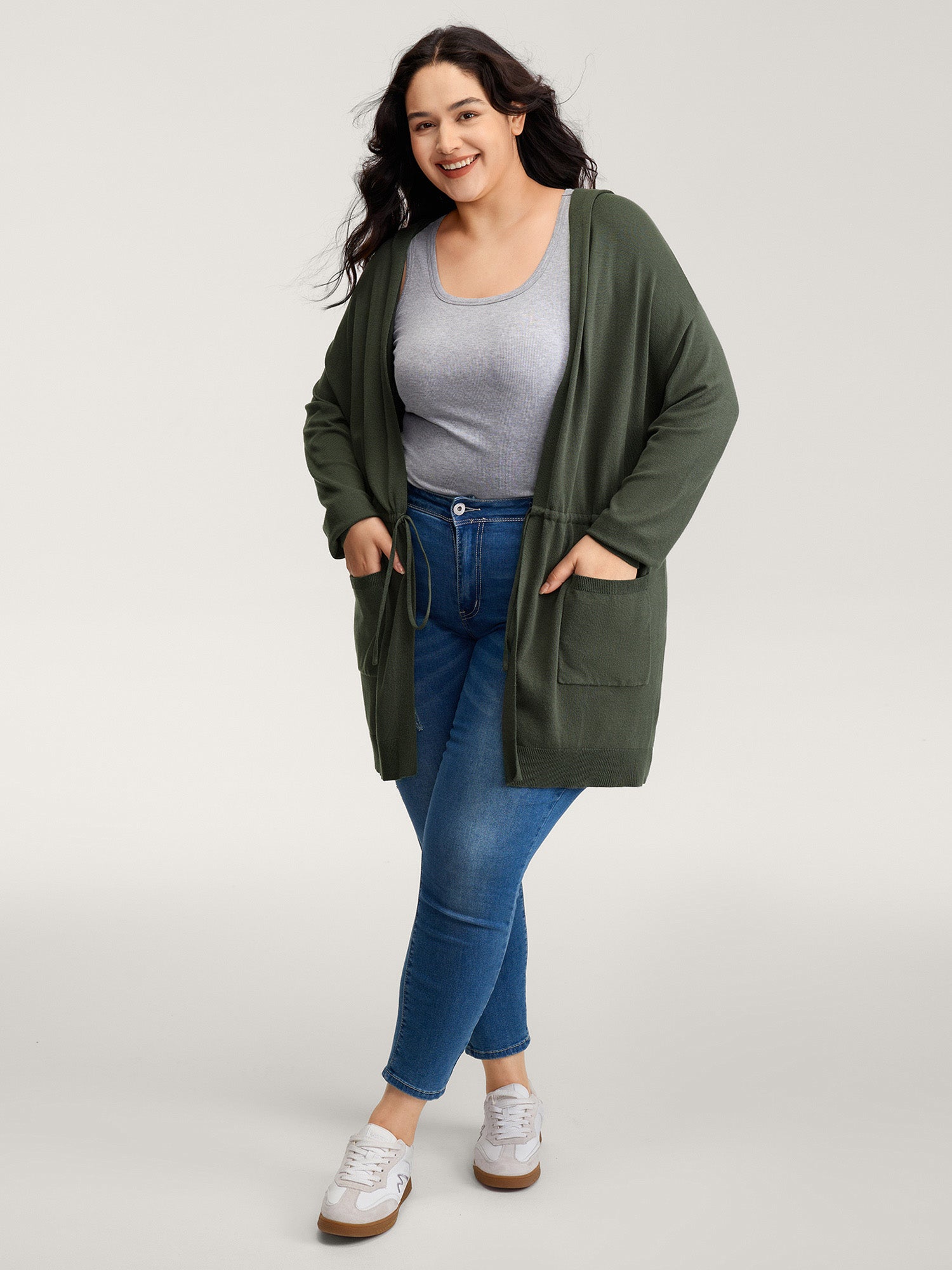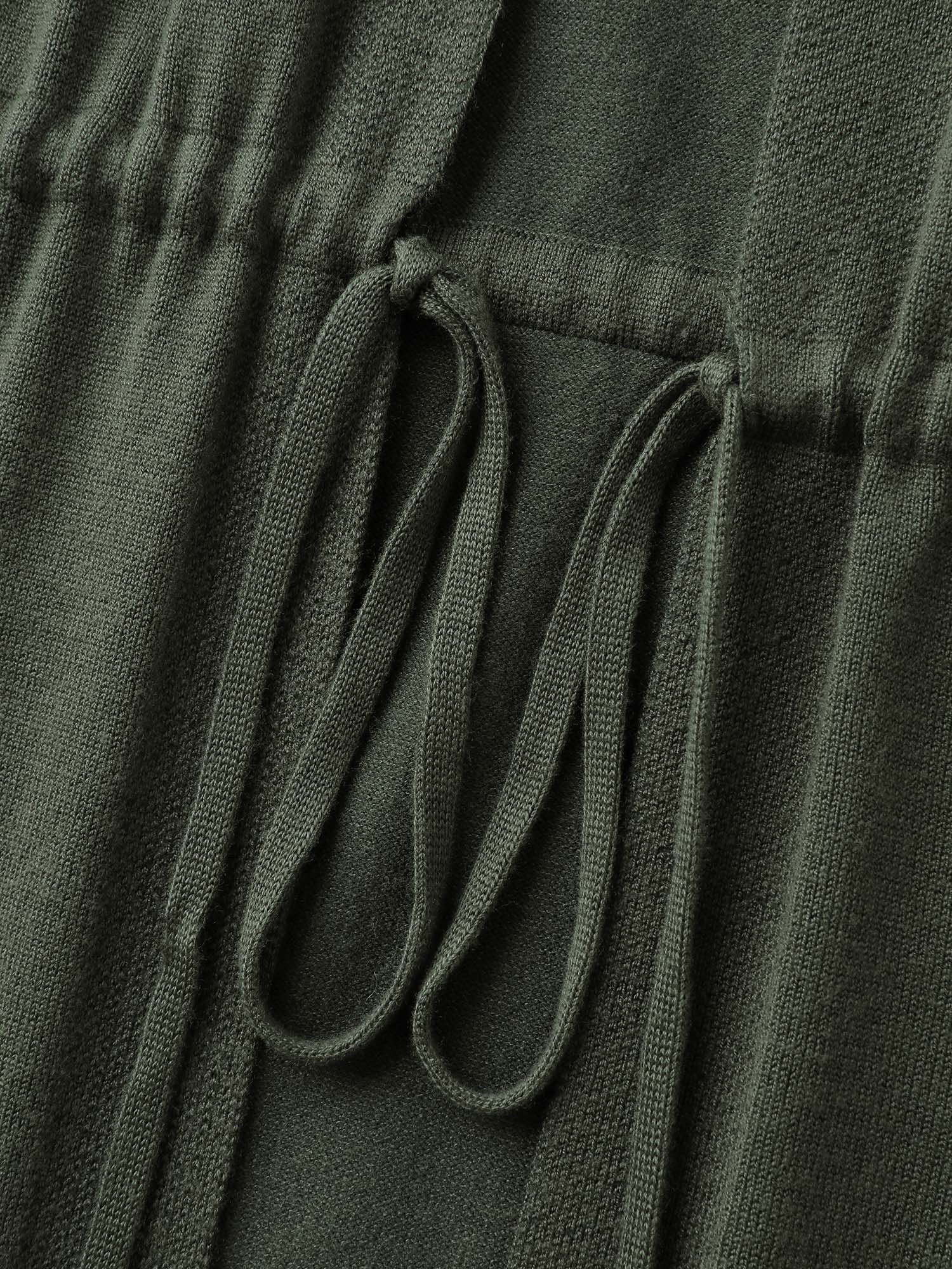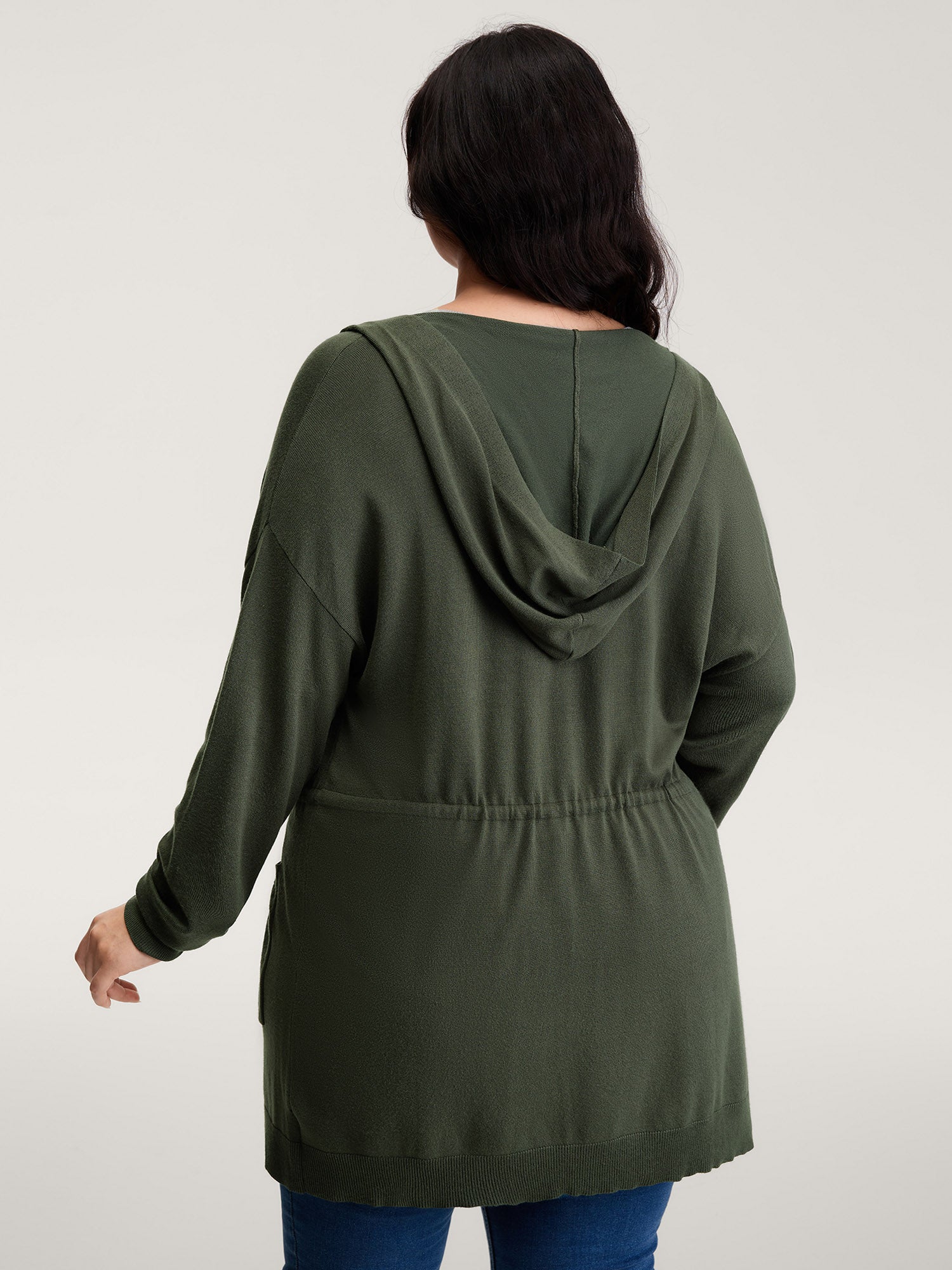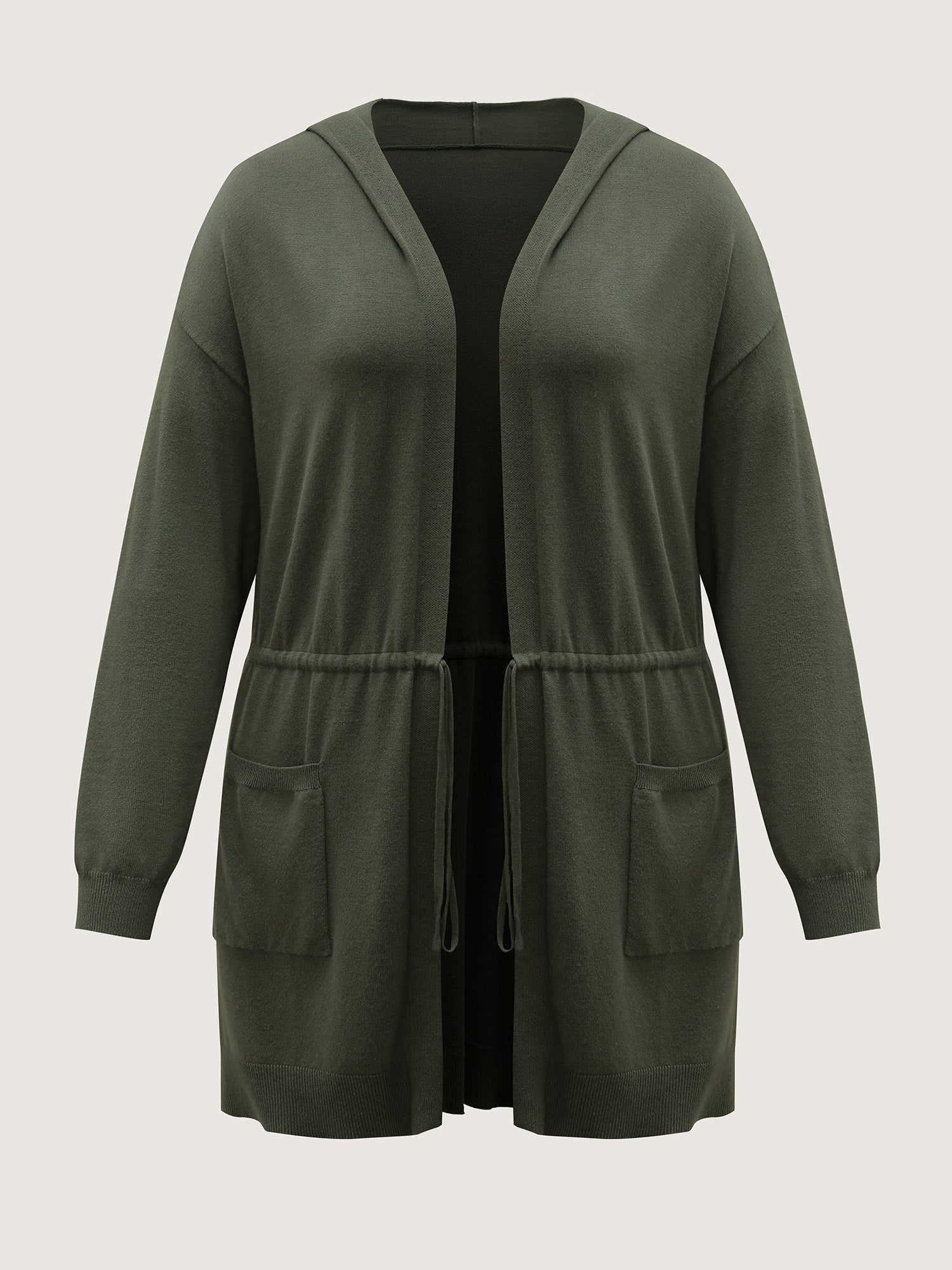 Hooded Drawstring Waist Pockets Knit Cardigan
