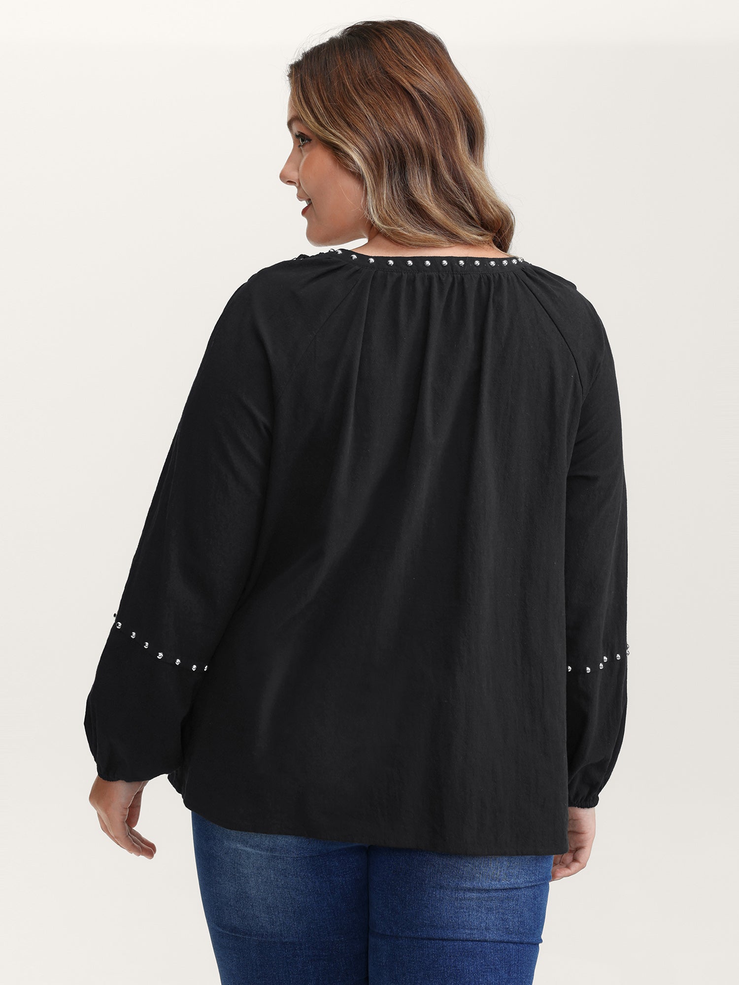 Lace Trim Rivets Cut-Out Blouse