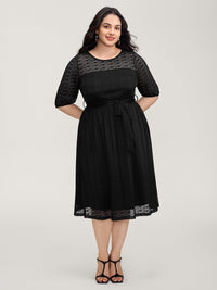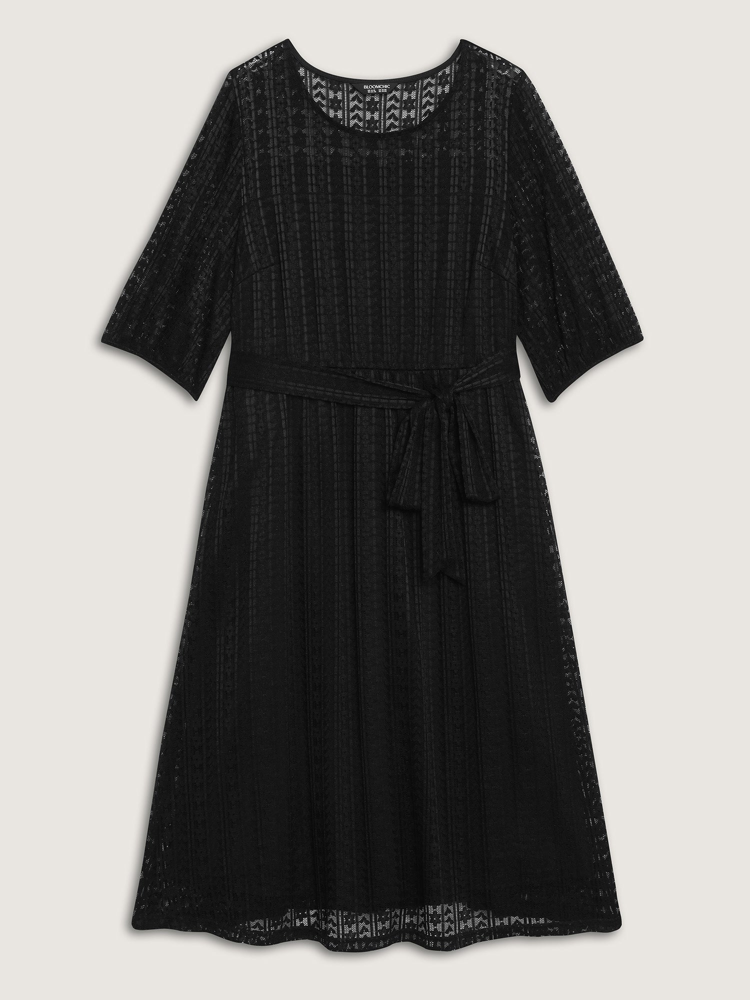 Lace Trim Sheer Stretchy Waist Midi Dress
