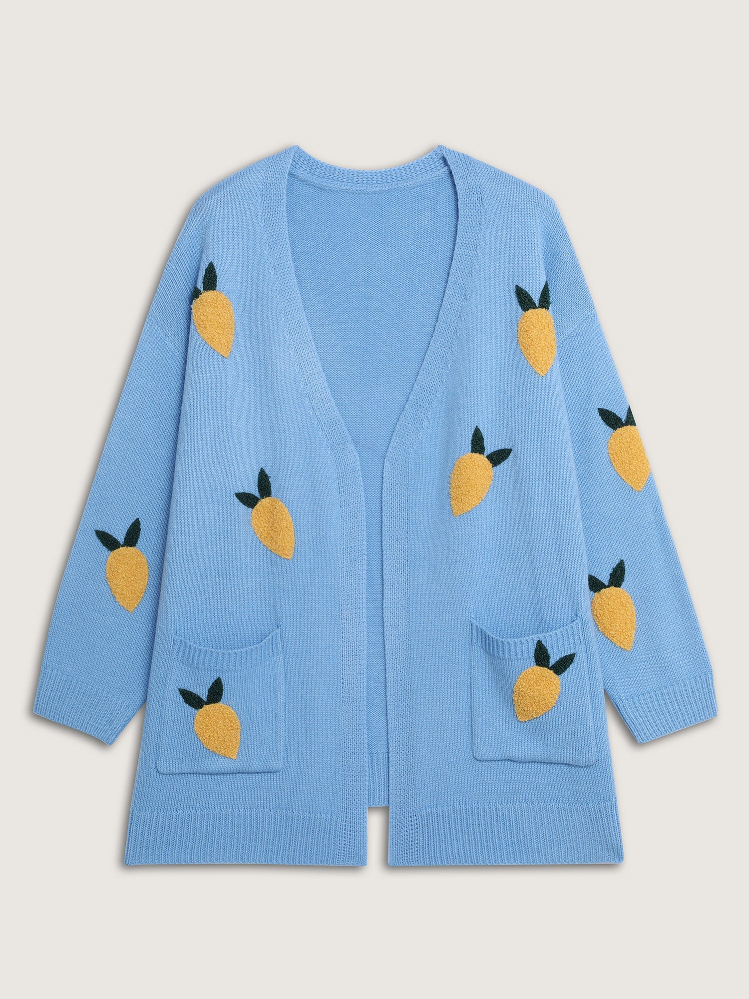 Lemon Embroidery V-Neck Pockets Knit Cardigan