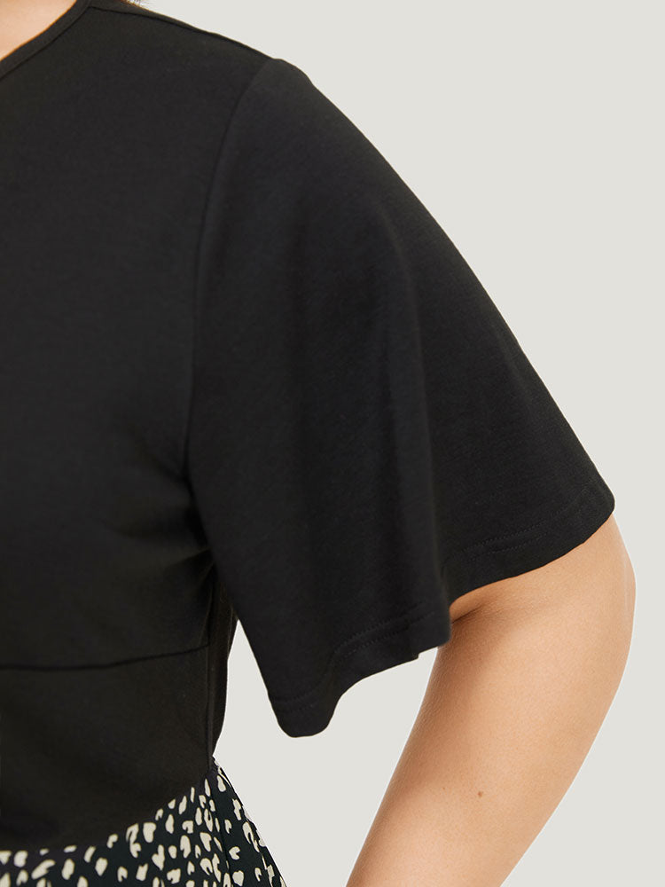 Leopard Patchwork Twist Ruffle Sleeve Blouse