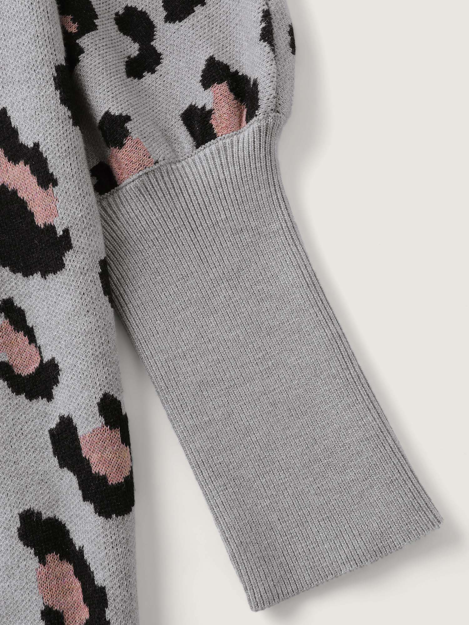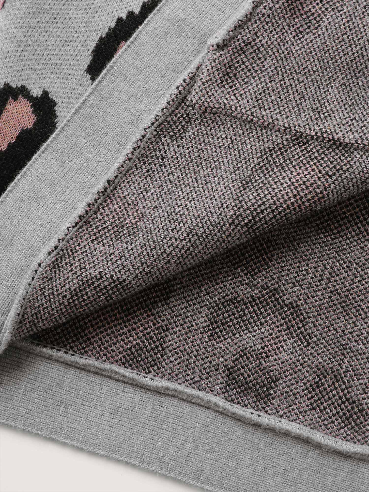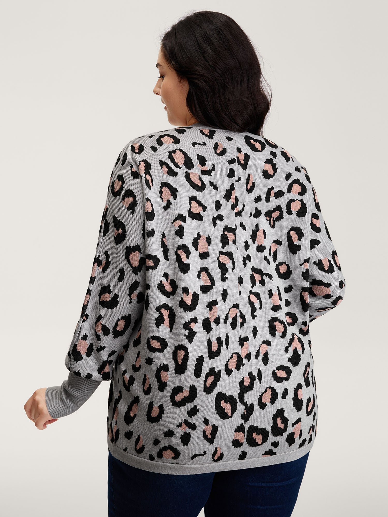Leopard Print Arc Hem Pockets Knit Cardigan