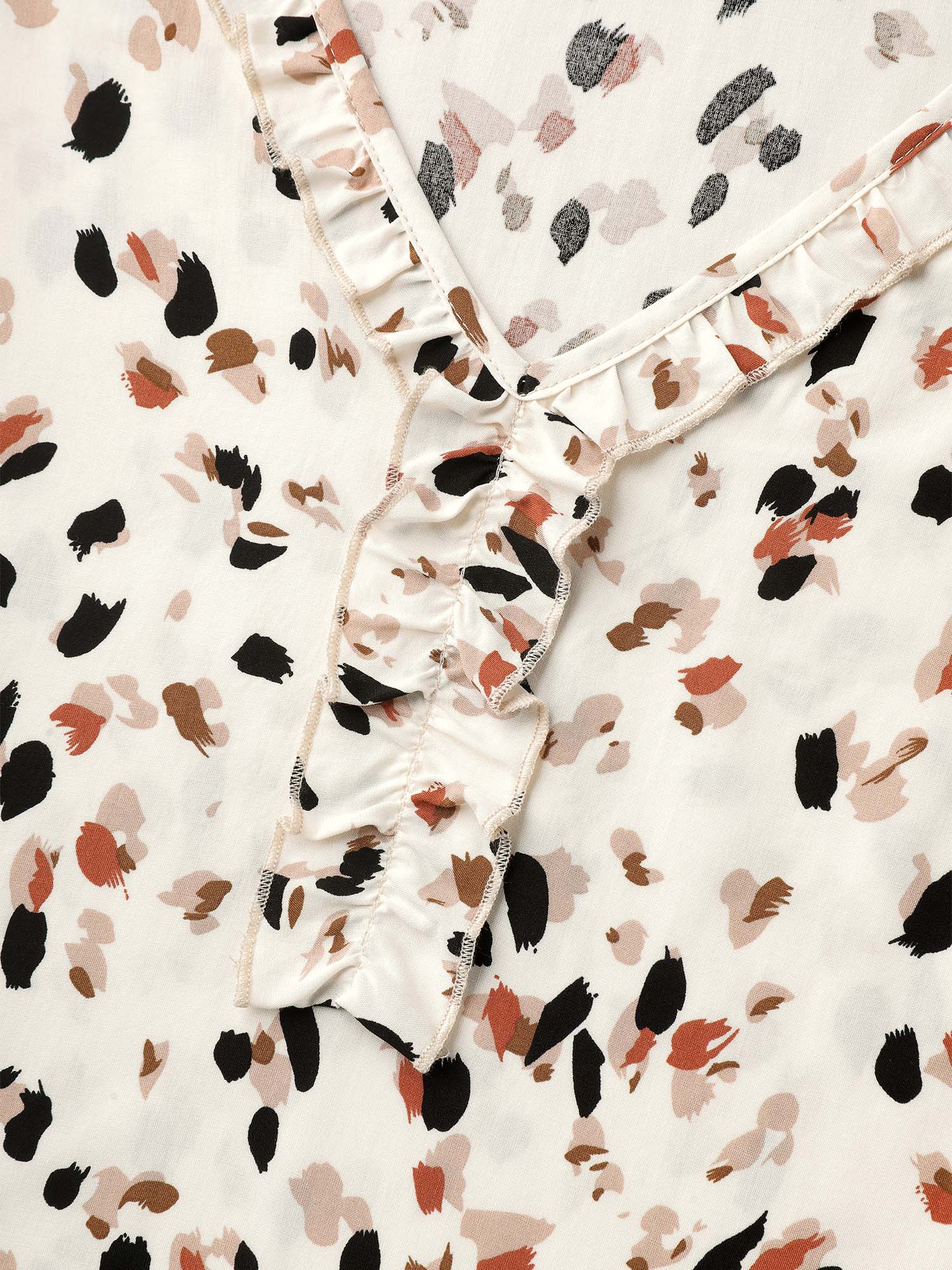 Leopard Print Ruffled Detail Shirt