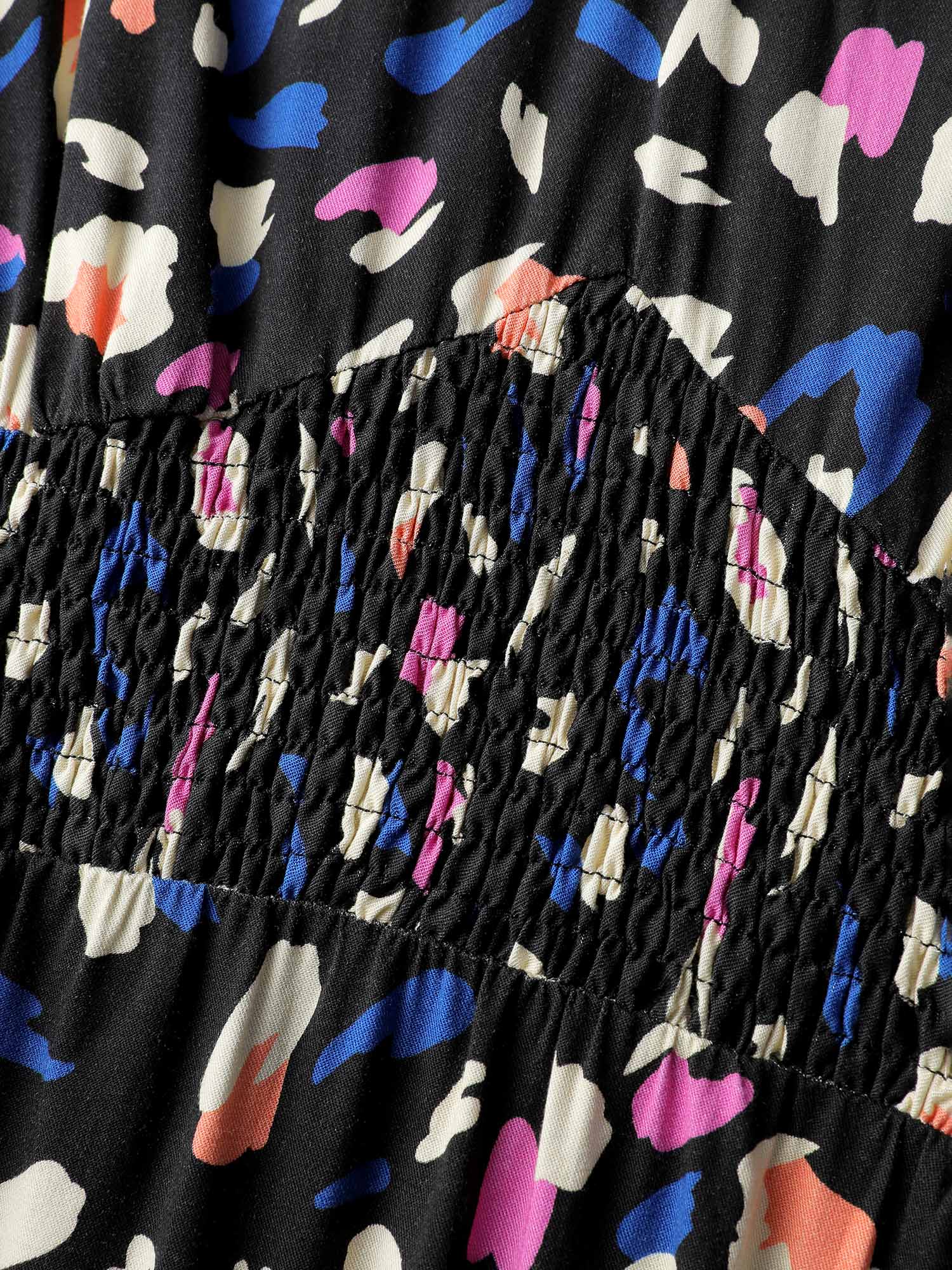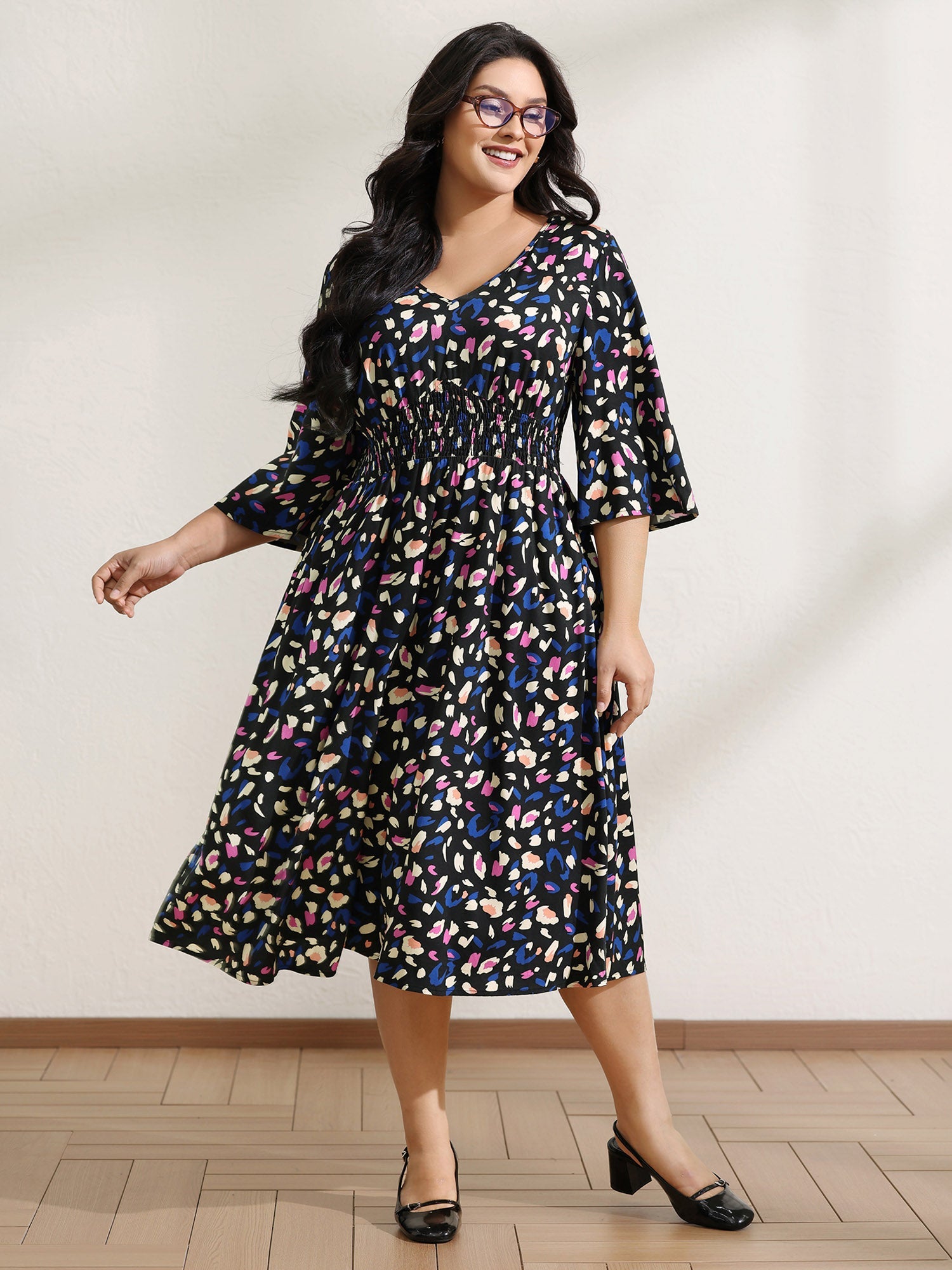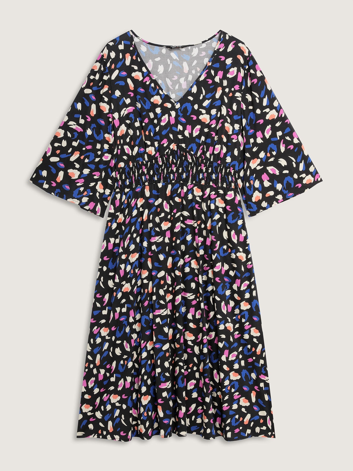 Leopard Print Shirred Waist V-Neck Midi Dress