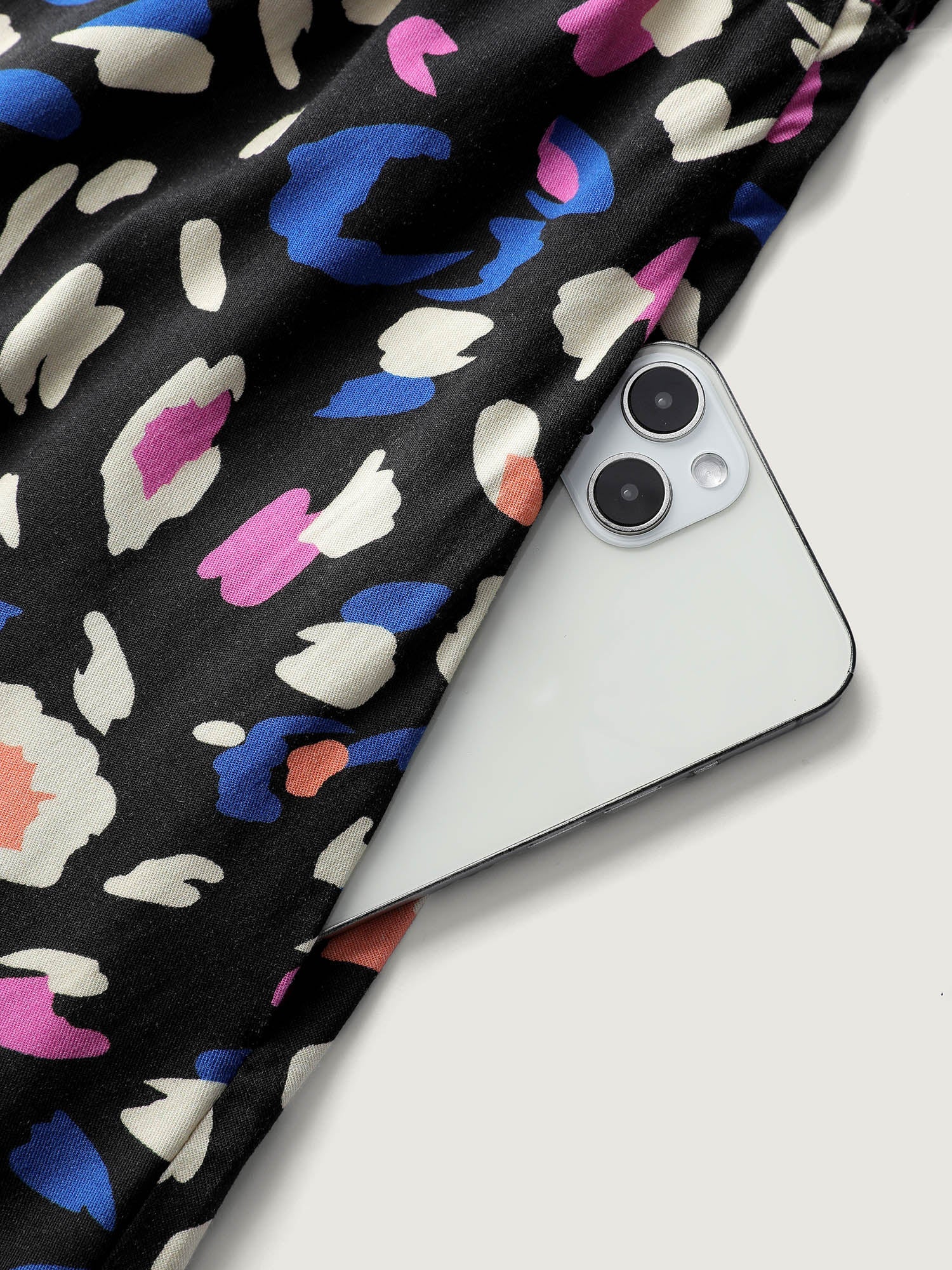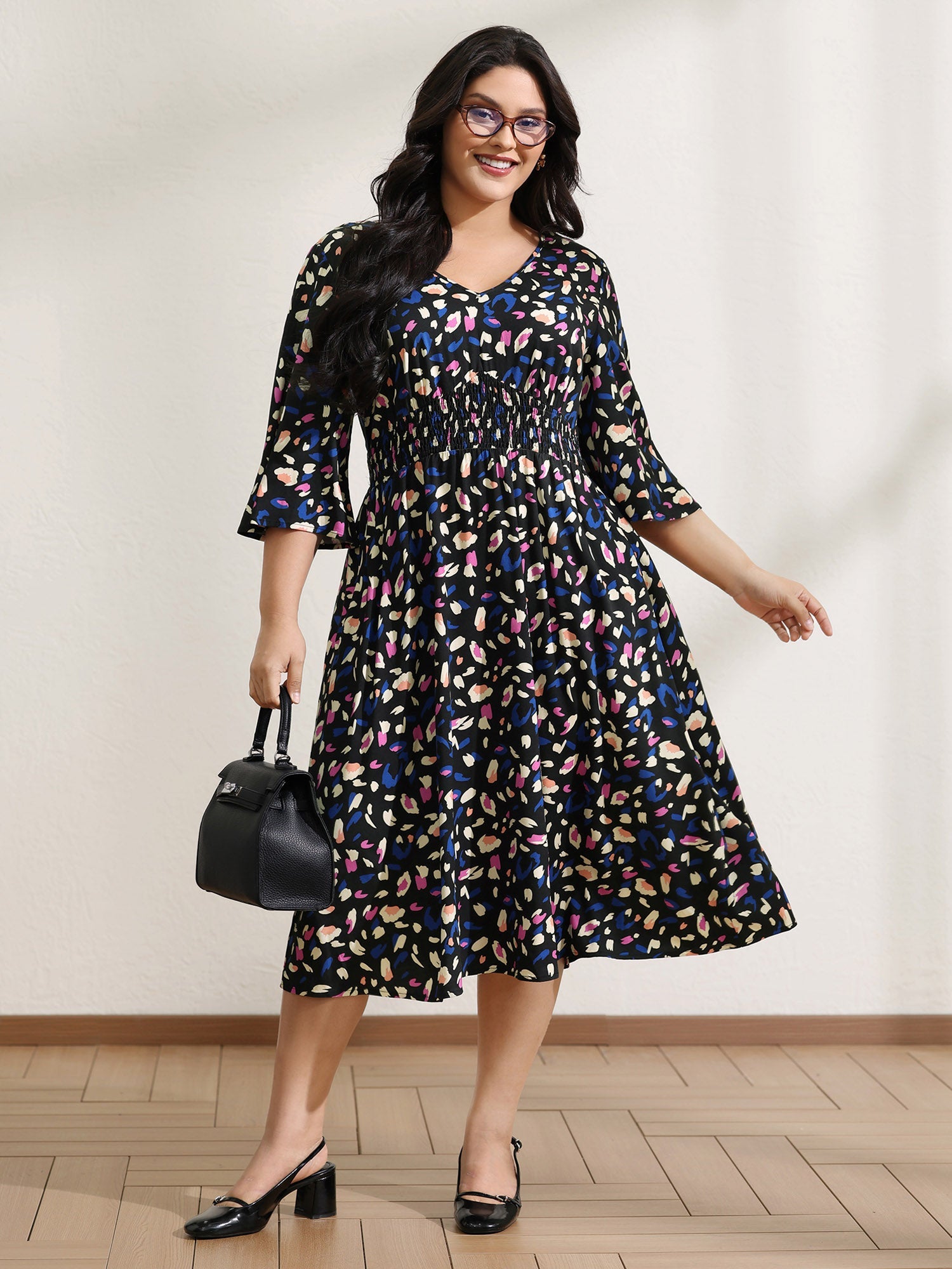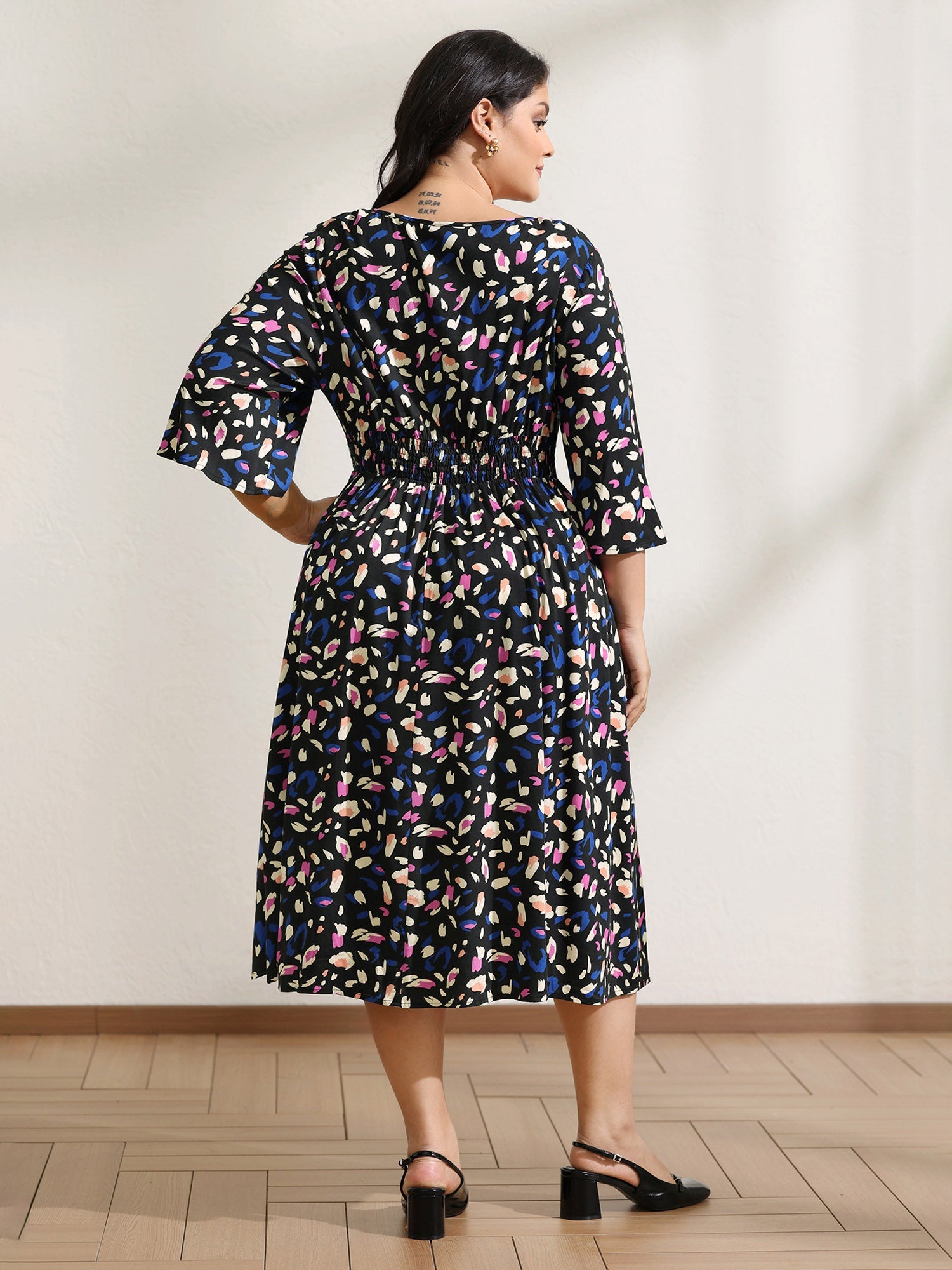 Leopard Print Shirred Waist V-Neck Midi Dress