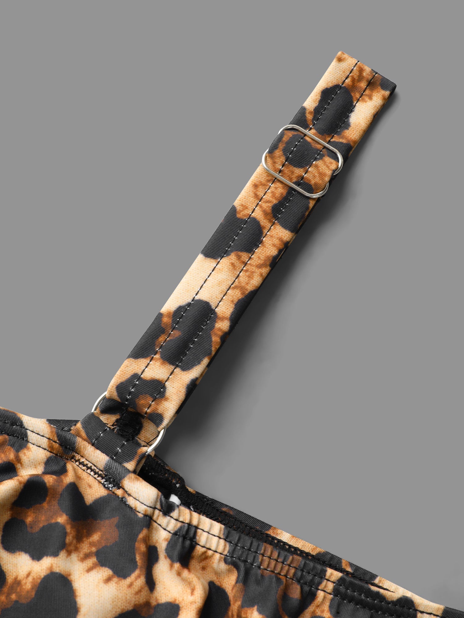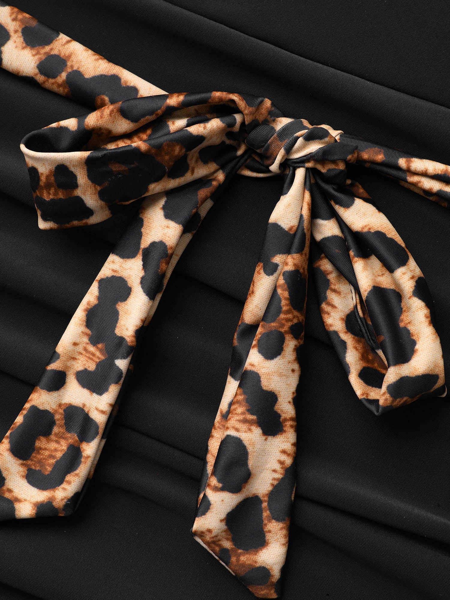 Leopard Print Tiered Ruffles Belted One-Piece Swimsuit