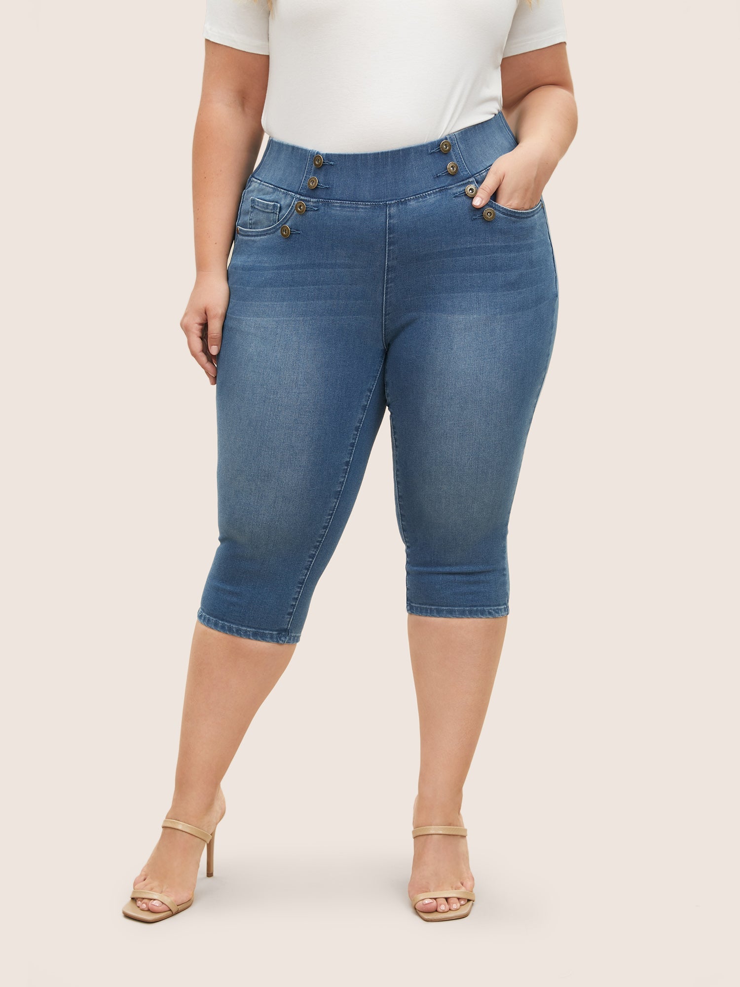 Light Wash Button Detail Pull On Jegging Jeans