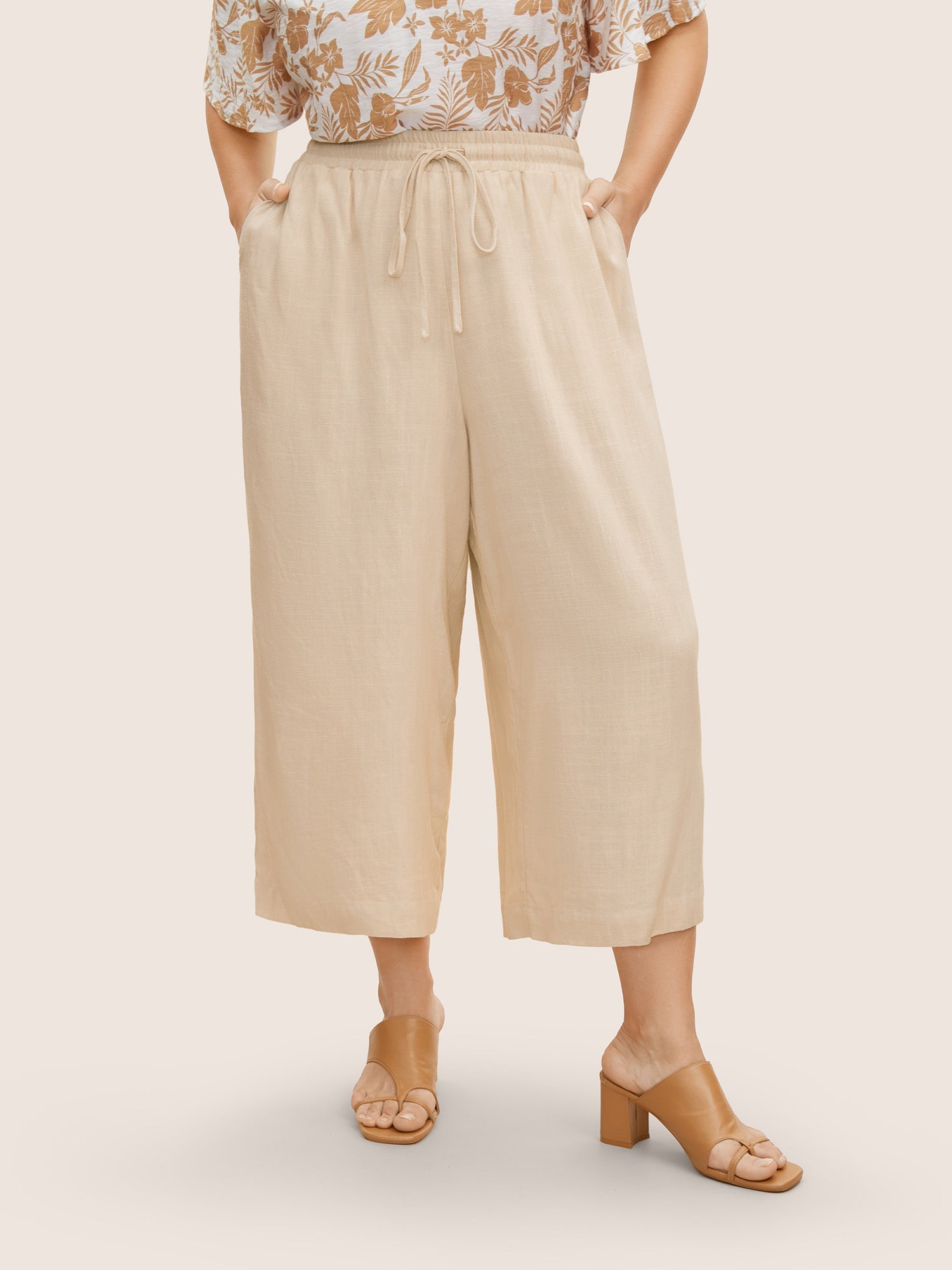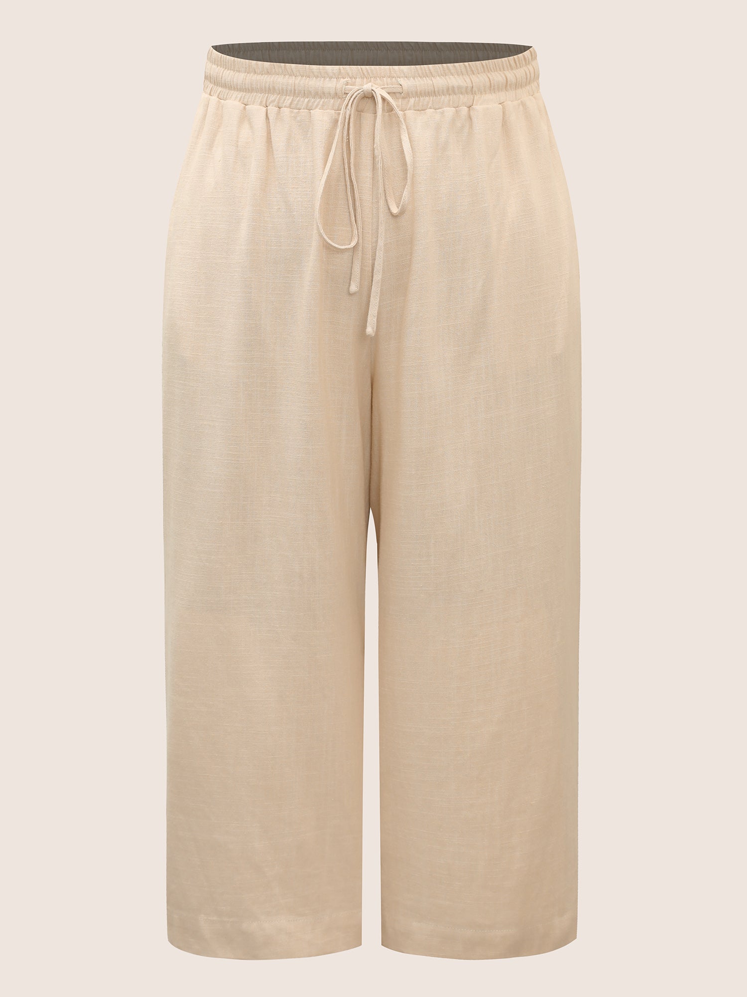 Linen Blend Drawstring Mid Rise Wide Leg Pants