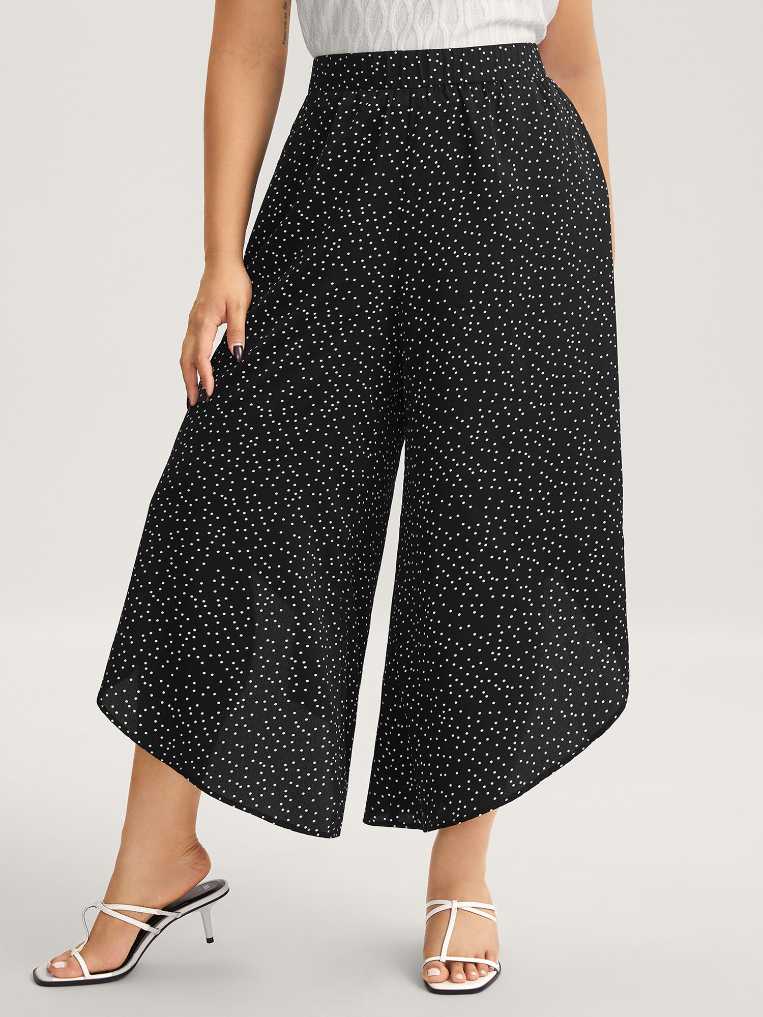 Little Dots Asymmetrical Hem Slit Pants