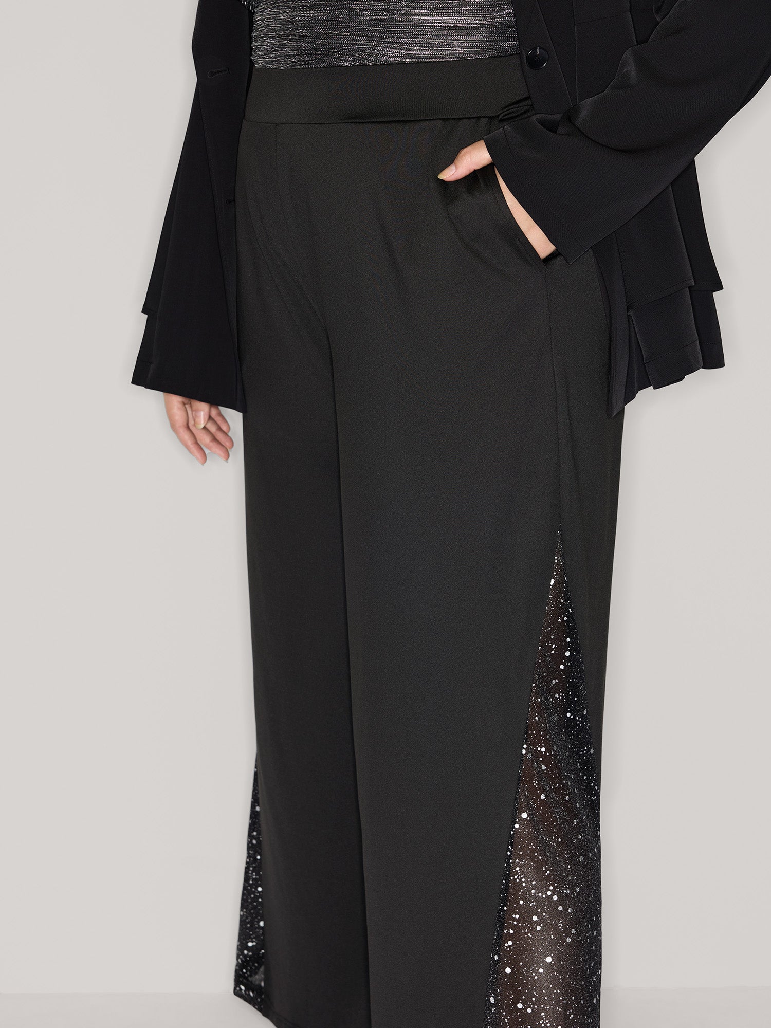 Mesh Spliced Wide-Leg Pants