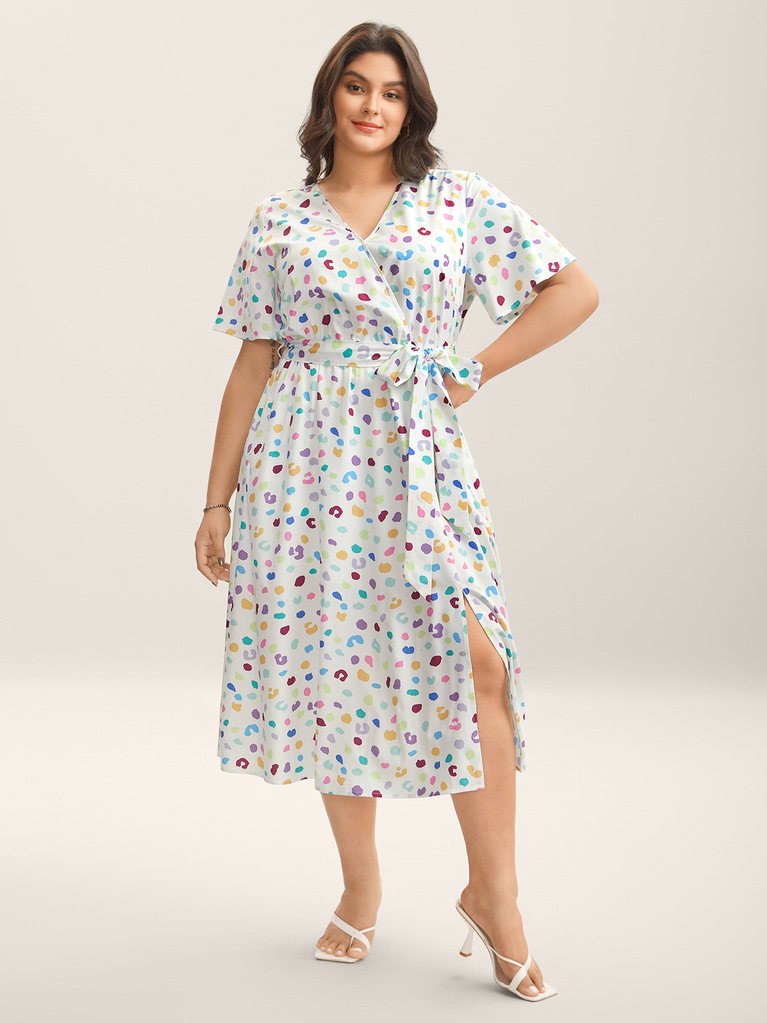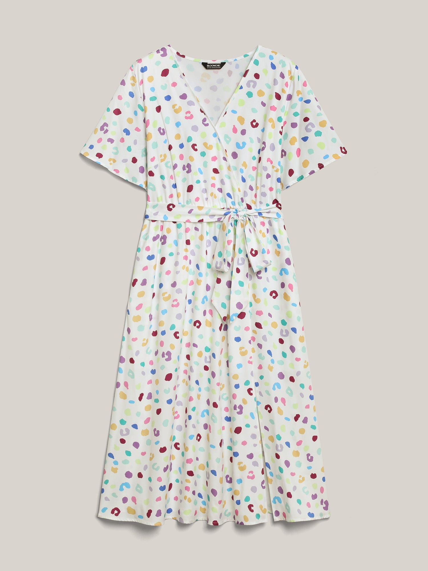 Multi-Color Leopard Print Surplice Midi Dress