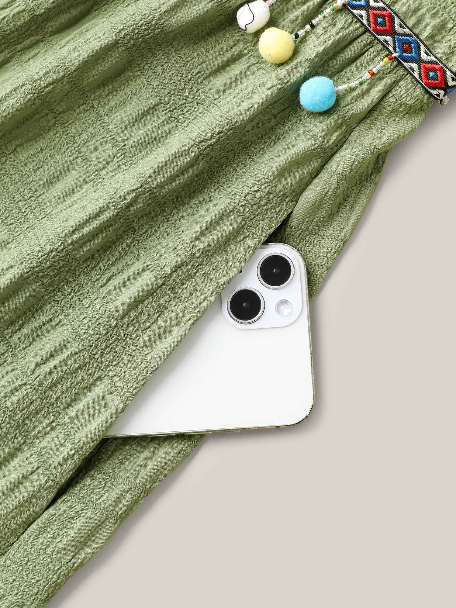 Multi-Color Tassels Textured Tiered Midi Dress