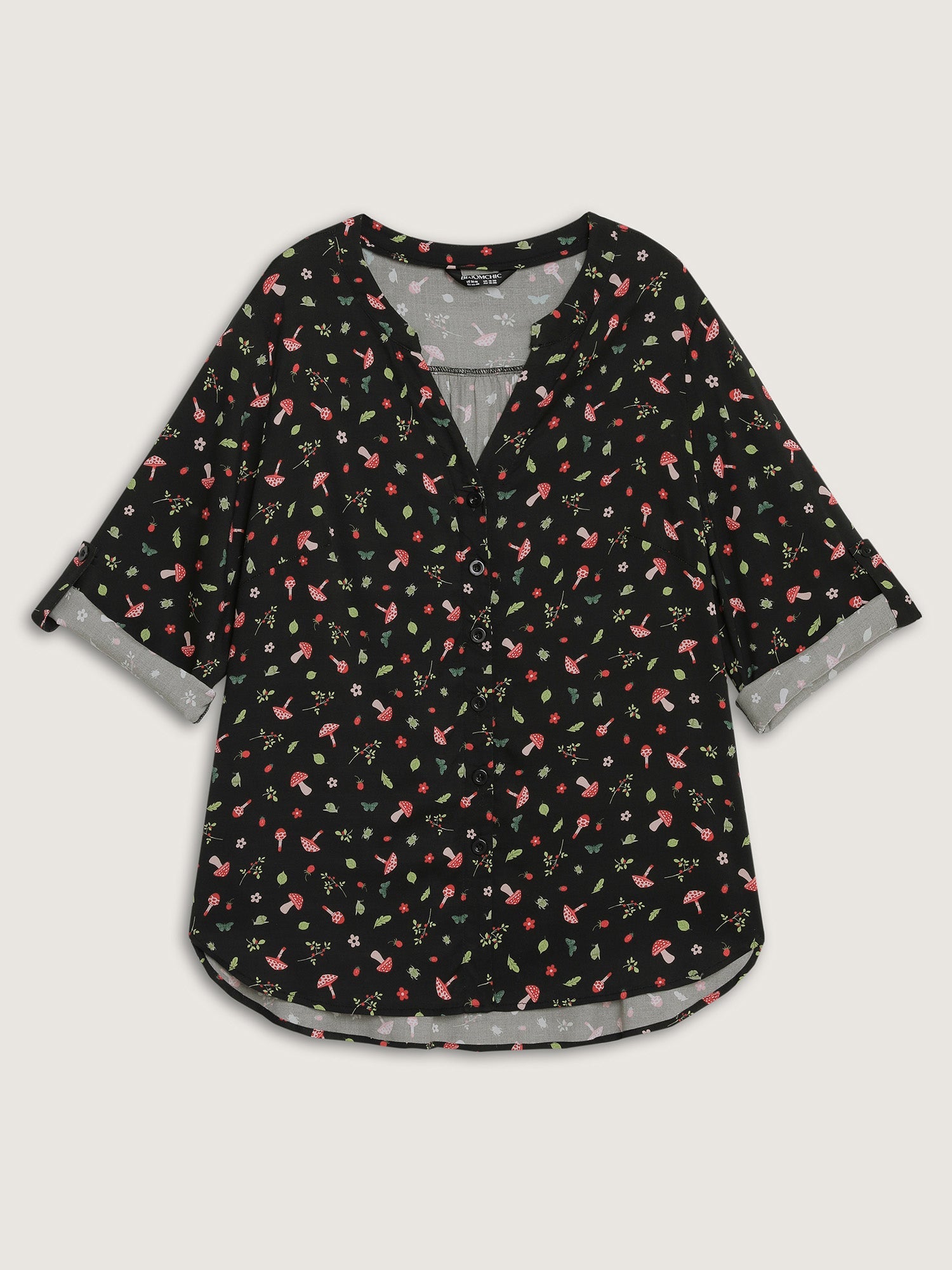 Mushroom Print Adjustable Sleeve Placket Blouse