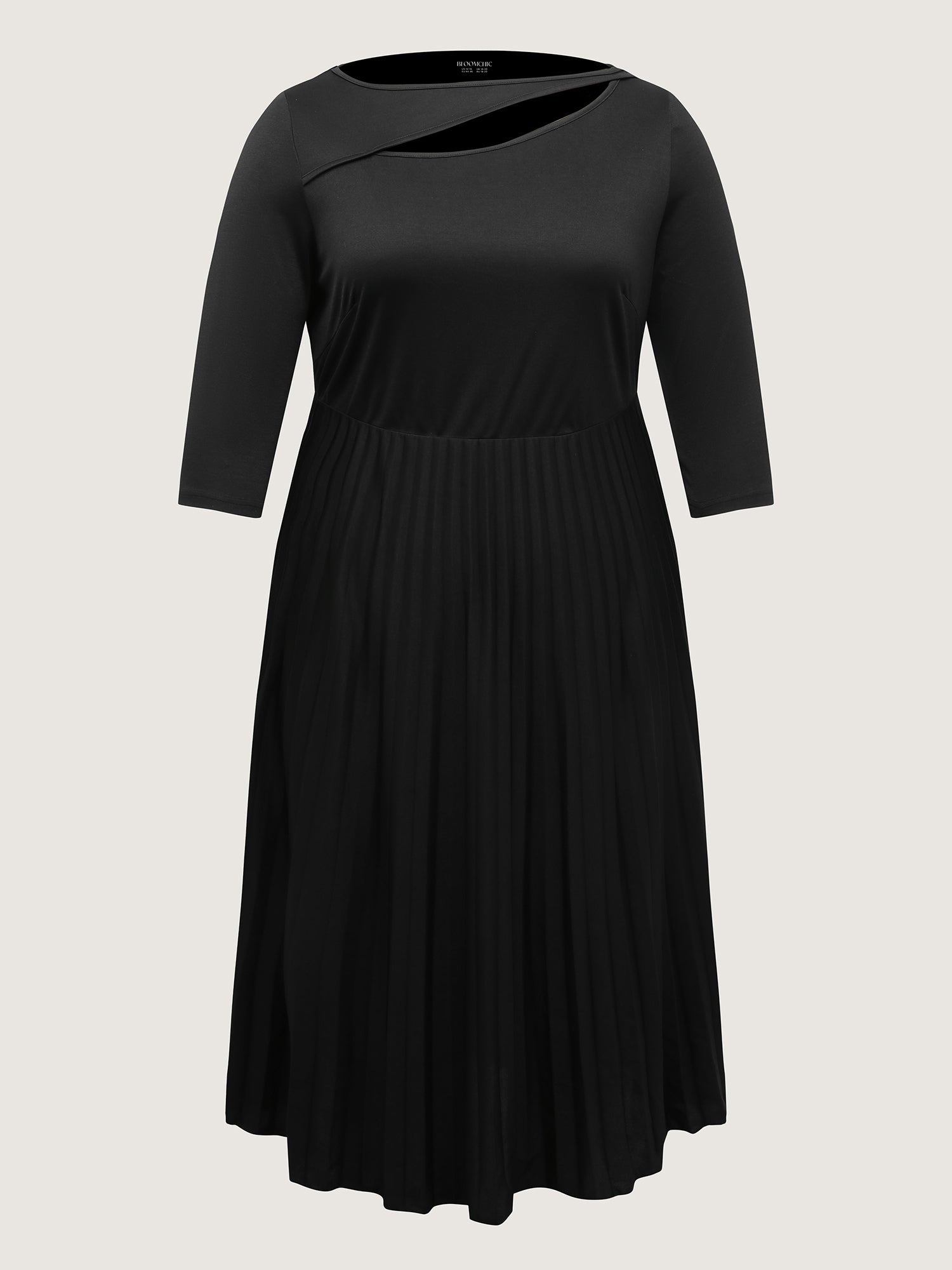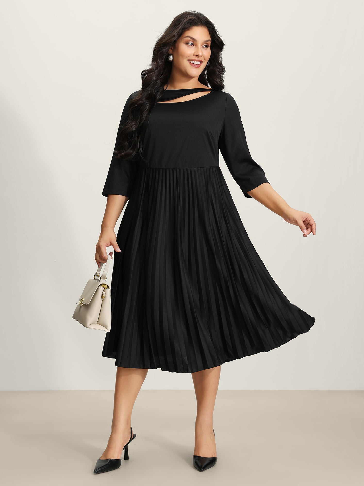 Neck Cut-Out Pleated Stretchy Midi Dress