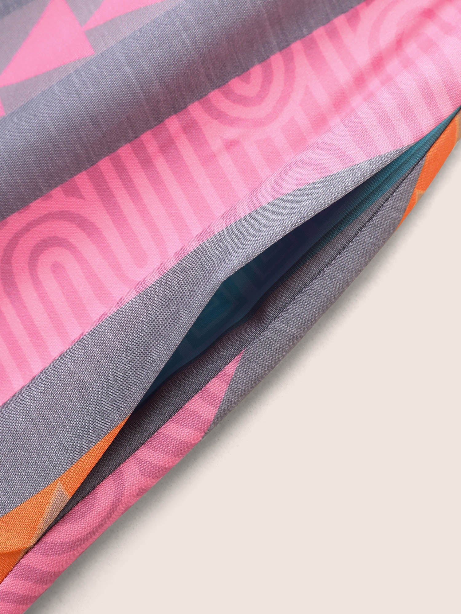 Notched Collar Geometric Striped Ruffle Sleeve Dress