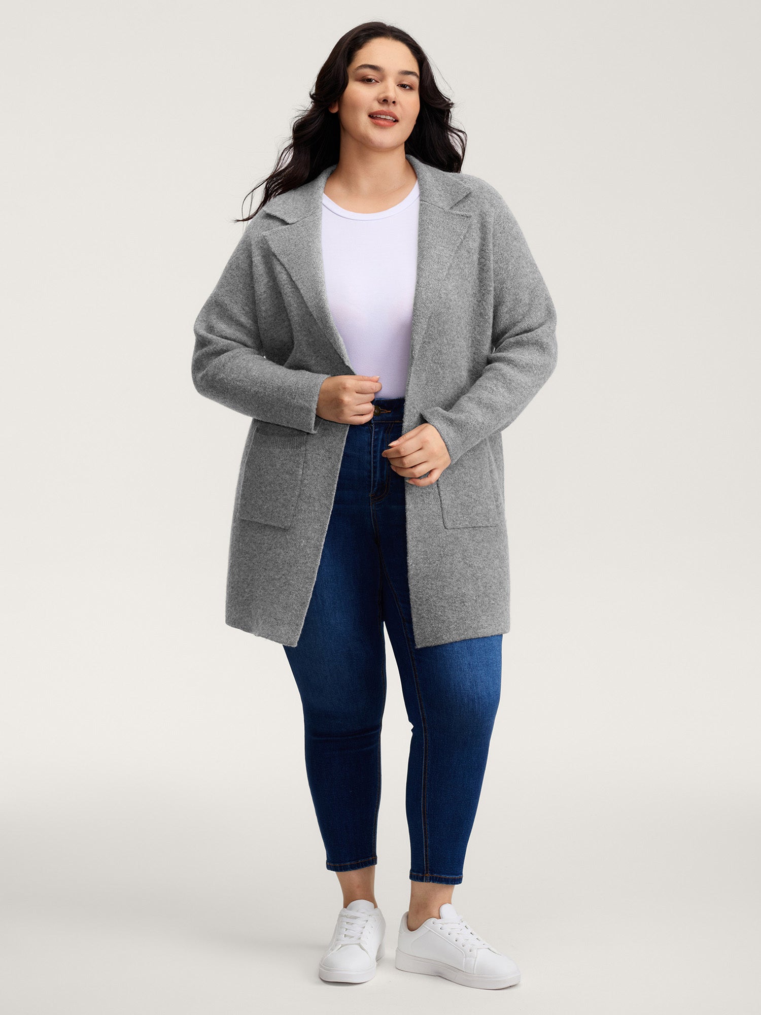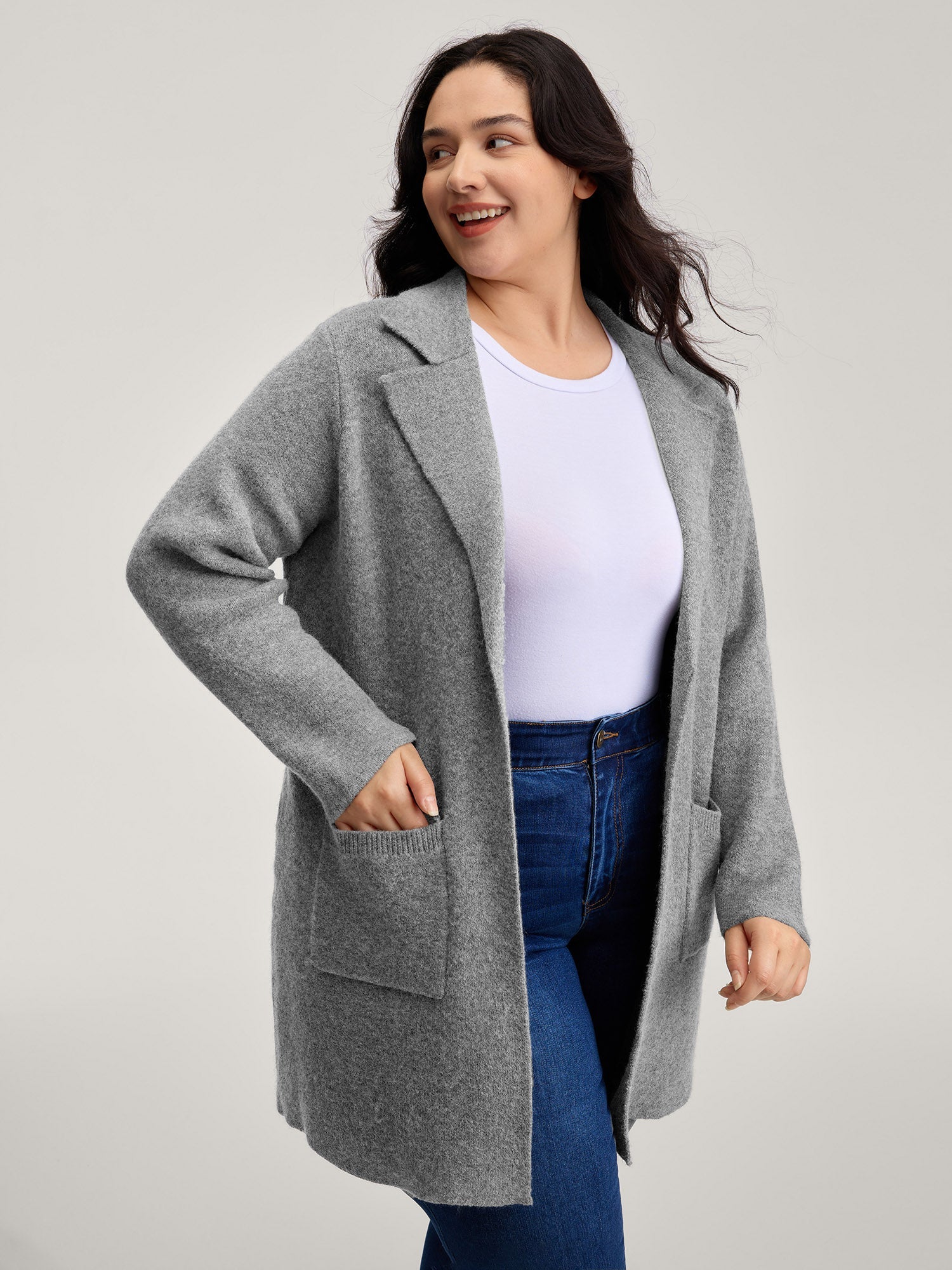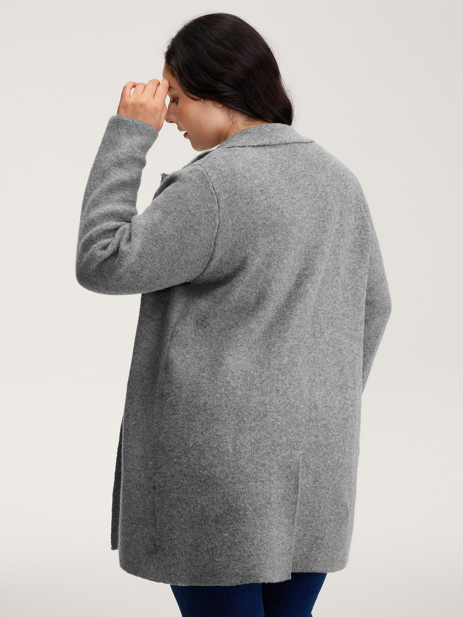 Notched Lapels Slit Back Knit Cardigan