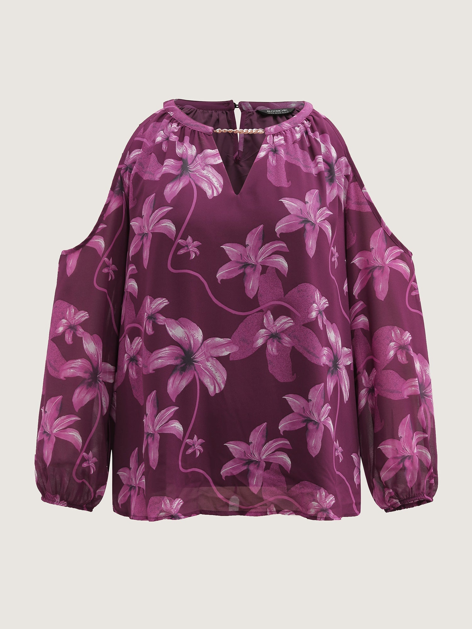 Off-Shoulder Floral Print Metal Detail Blouse