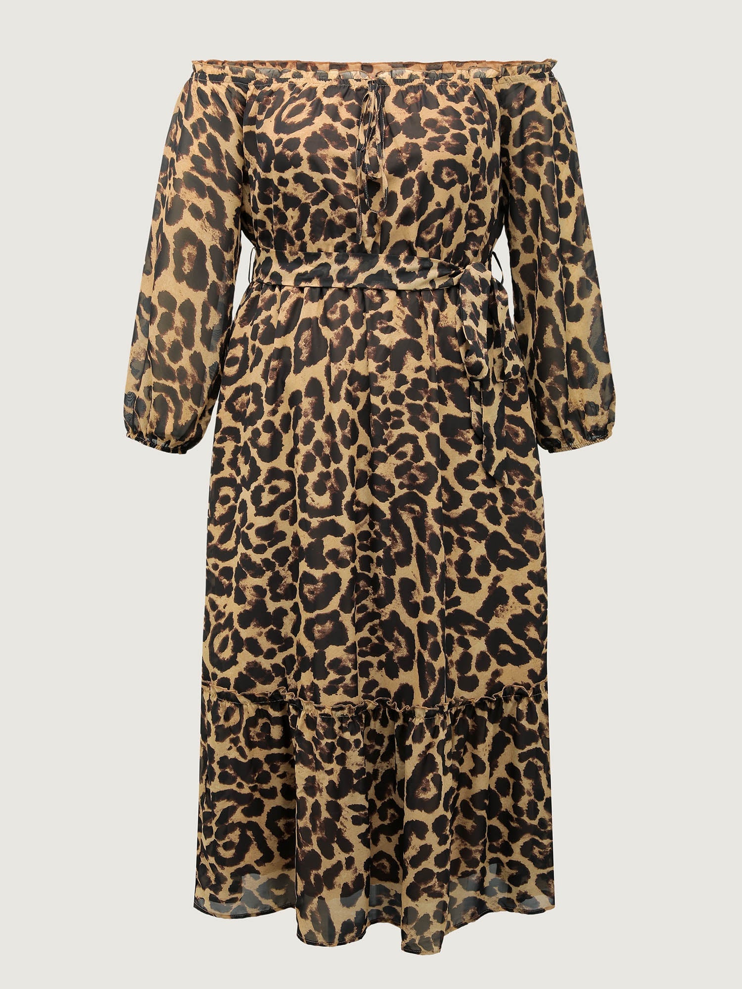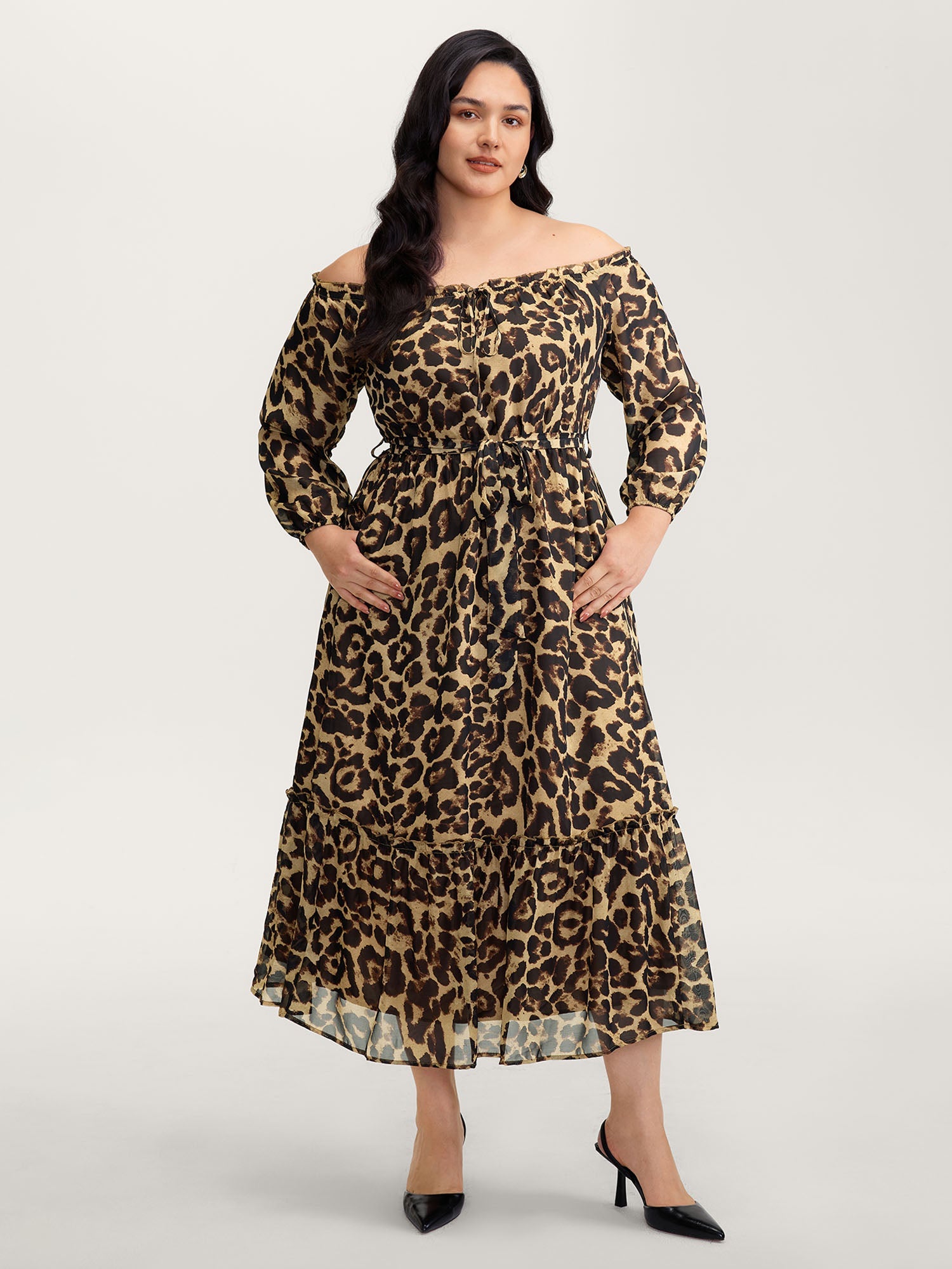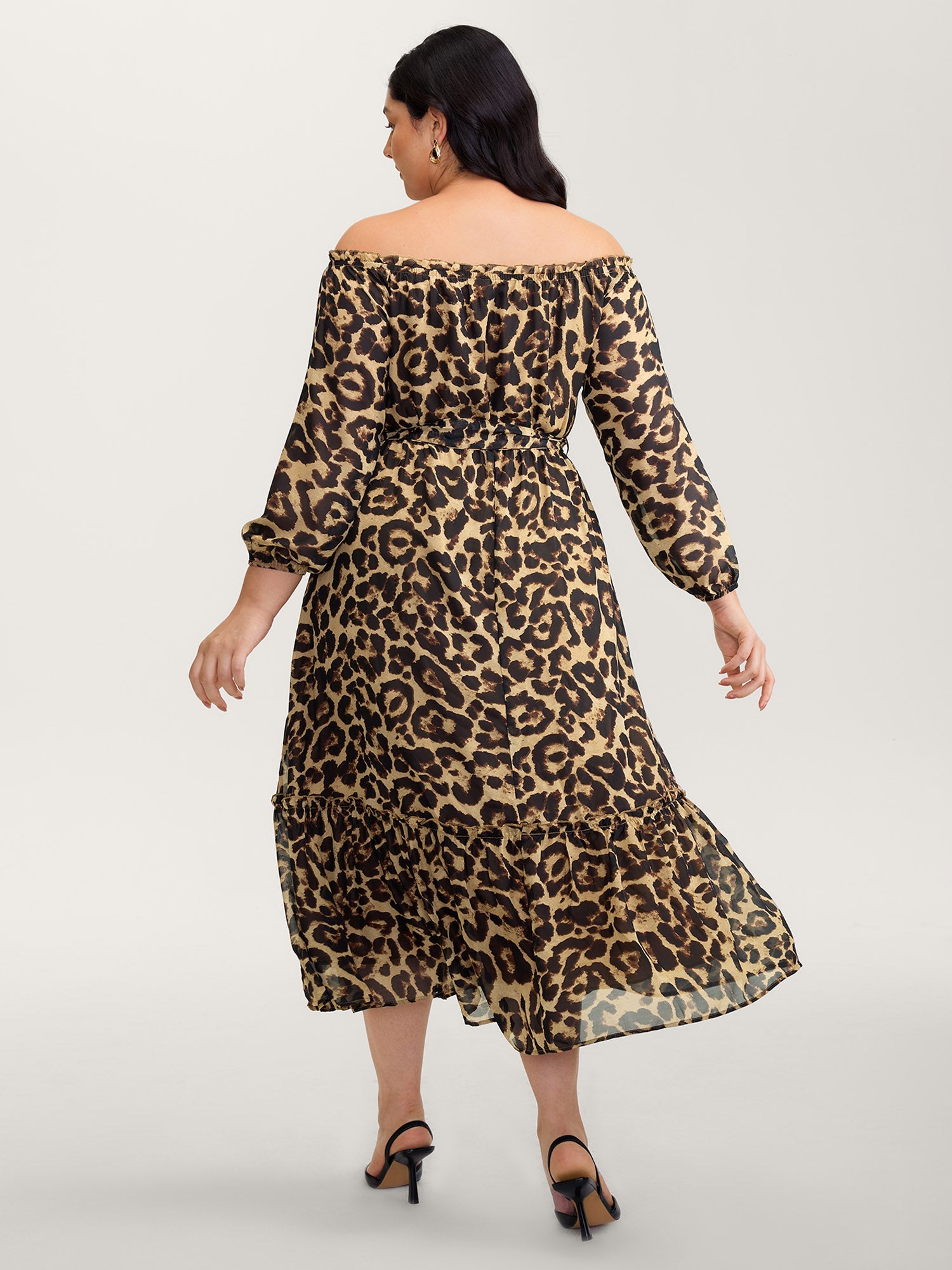Off-Shoulder Leopard Print Sheer Maxi Dress